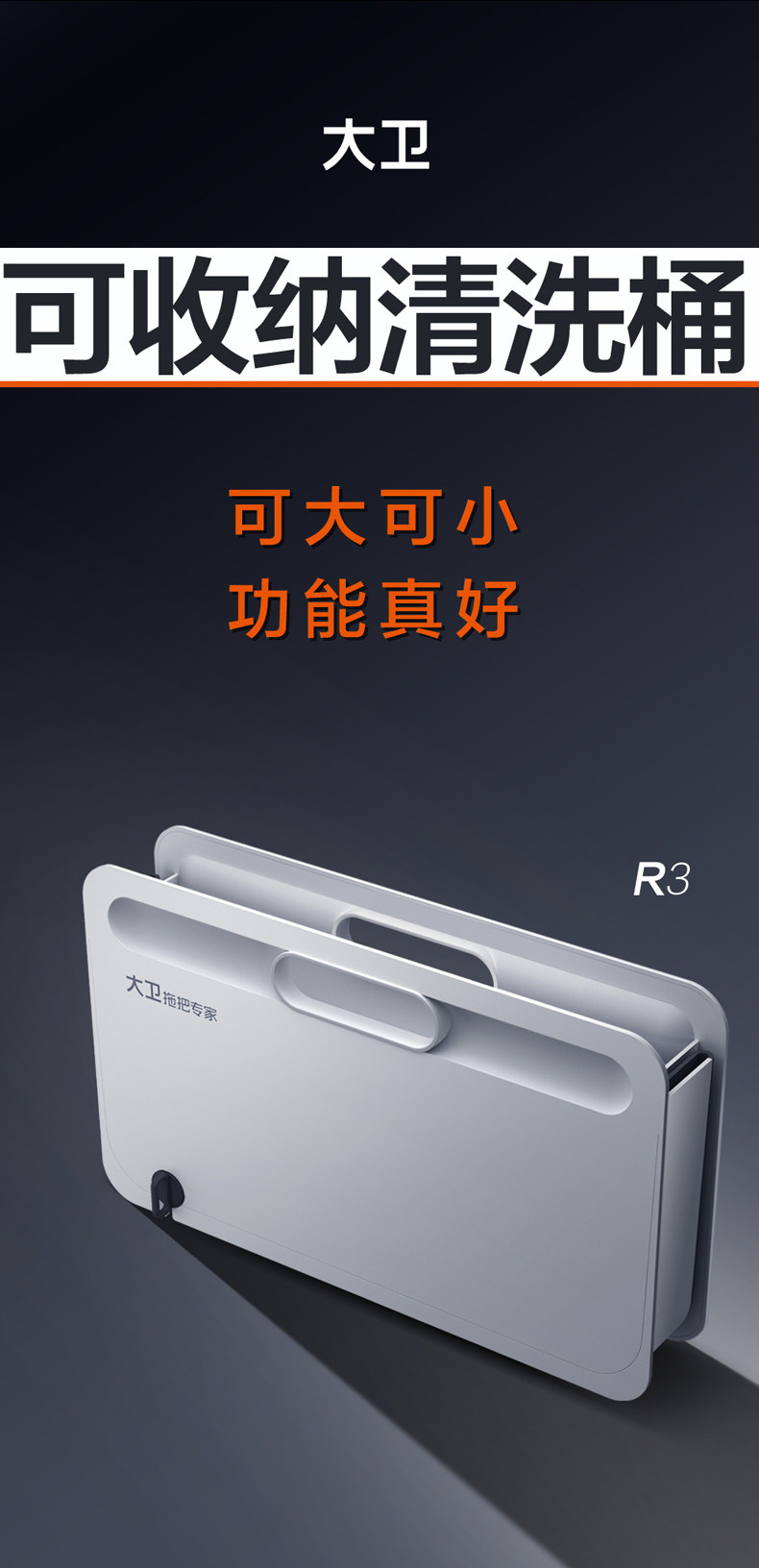 大卫可折叠水桶家用清洗拖把桶长方形储水拖地墩布大号塑料桶新