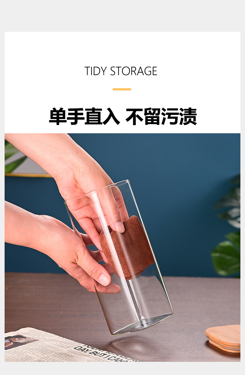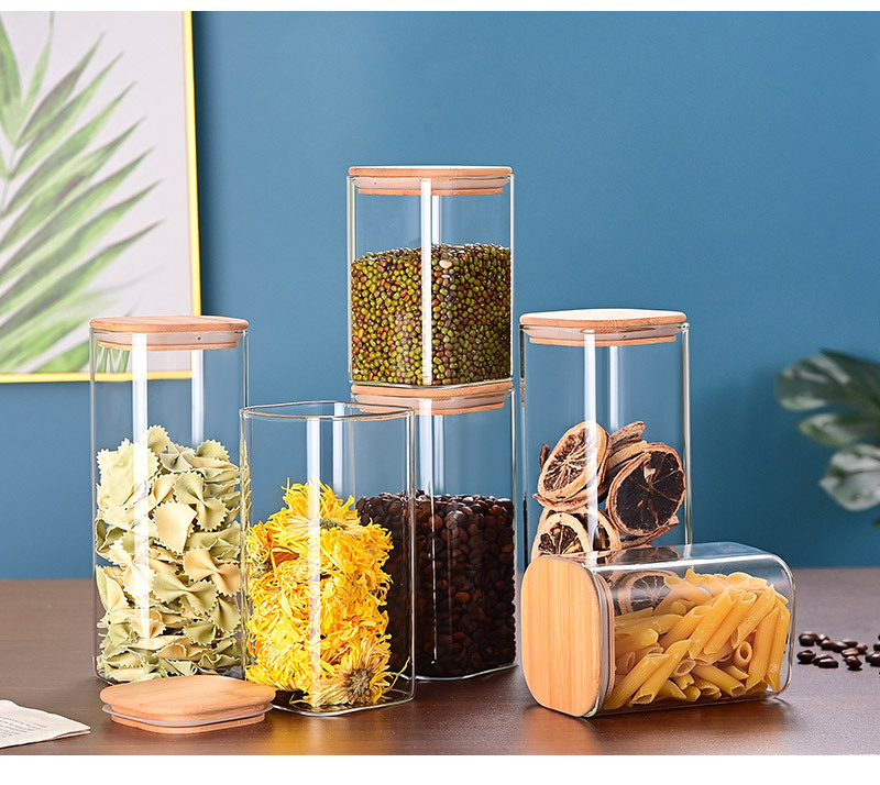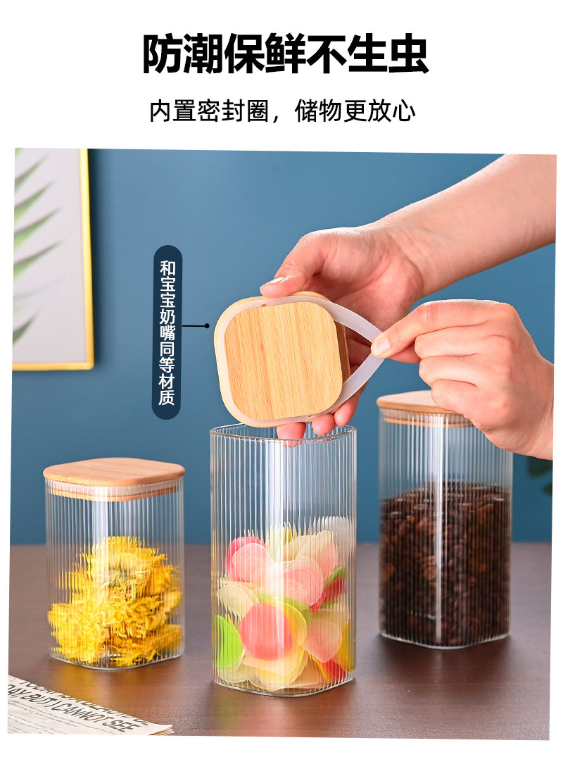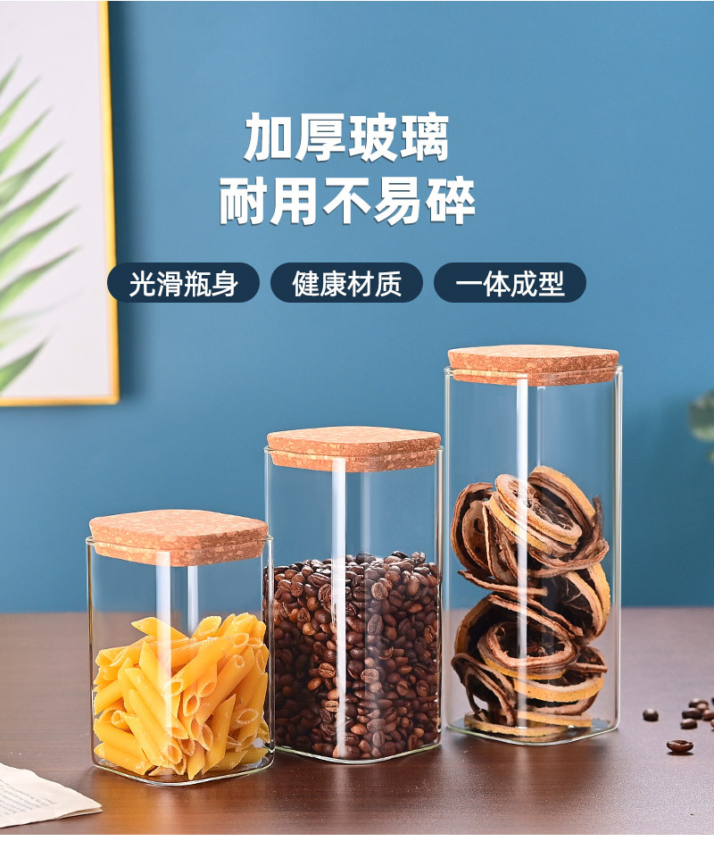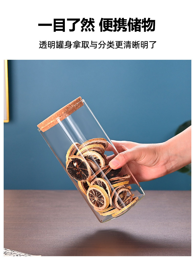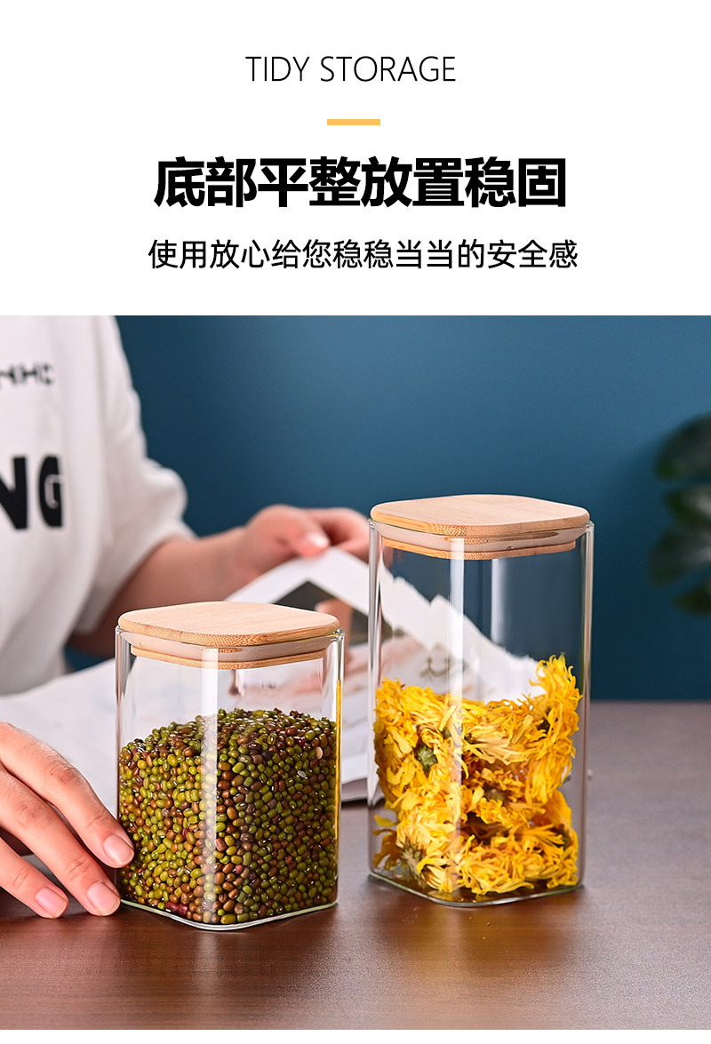 玻璃储物罐加厚家用方形木盖茶叶罐杂粮储存罐陈皮罐收纳罐密封罐