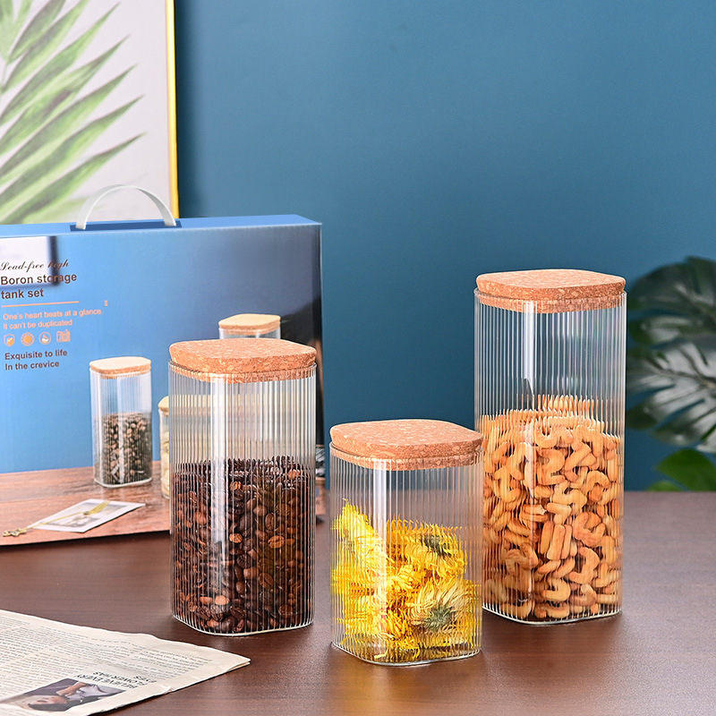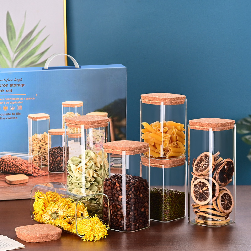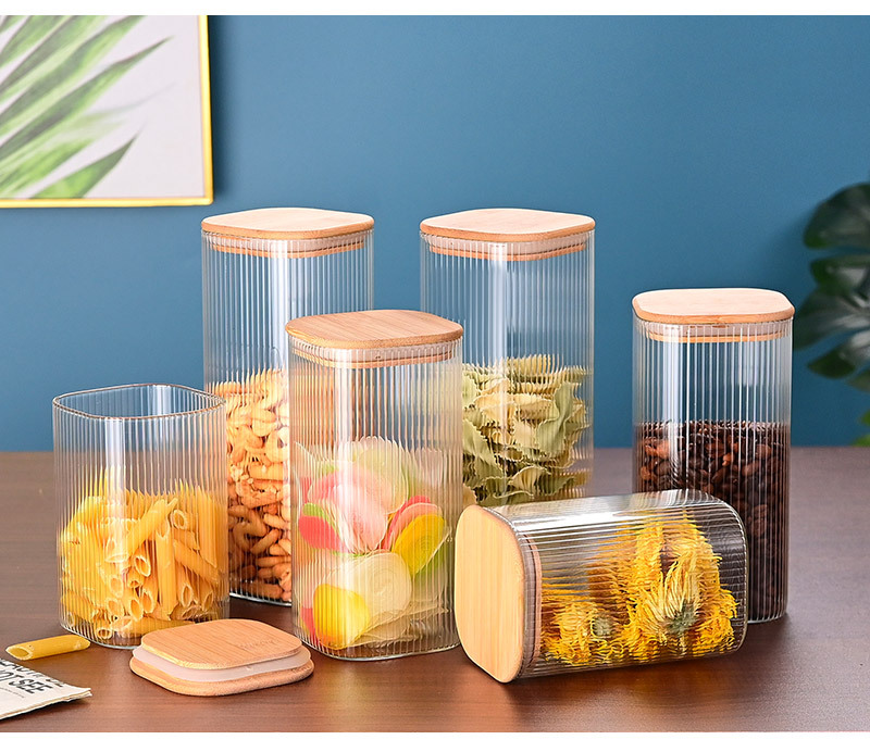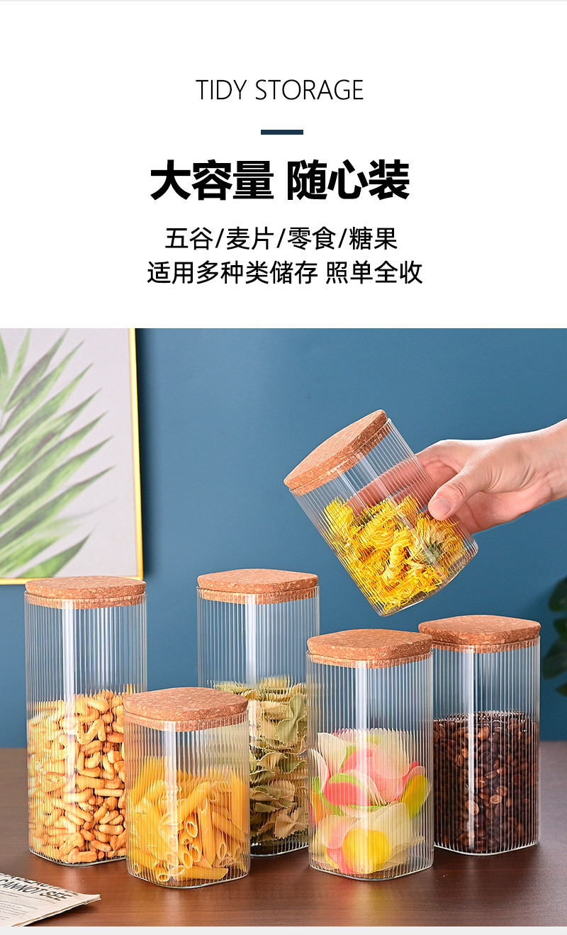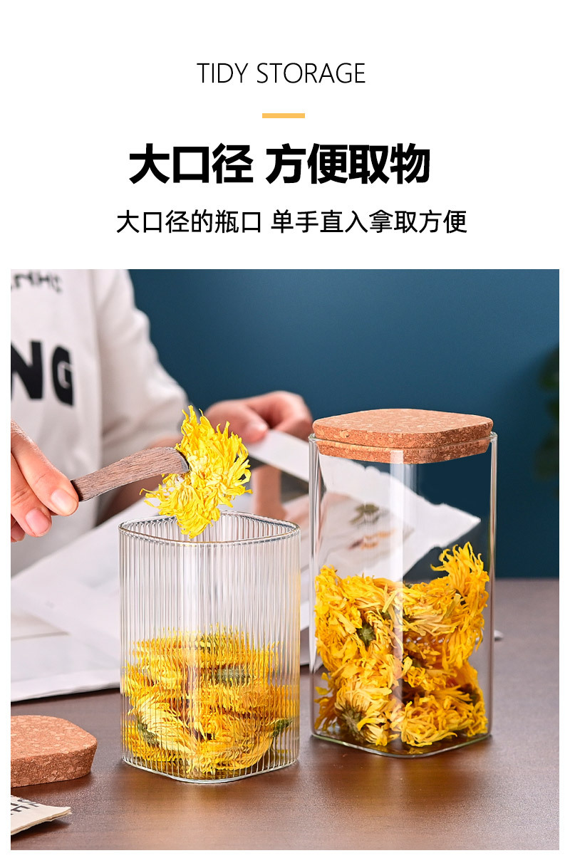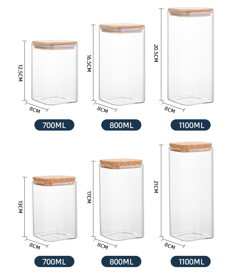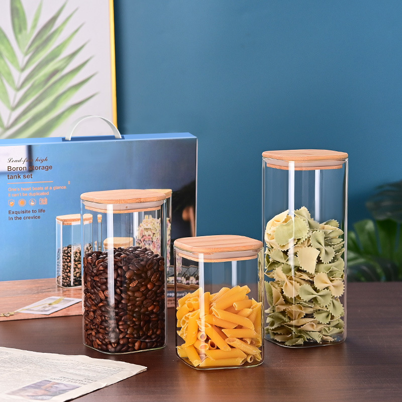 玻璃储物罐加厚家用方形木盖茶叶罐杂粮储存罐陈皮罐收纳罐密封罐