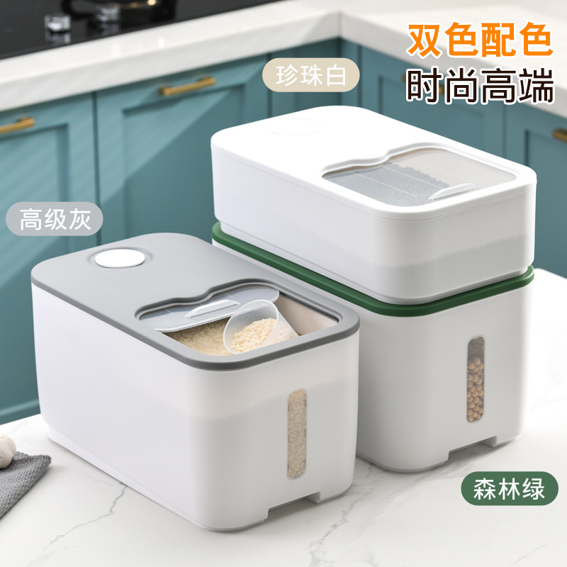 家用橱柜收纳储米箱杂粮储米桶透明滑轮米缸厨房防潮防虫日式米桶
