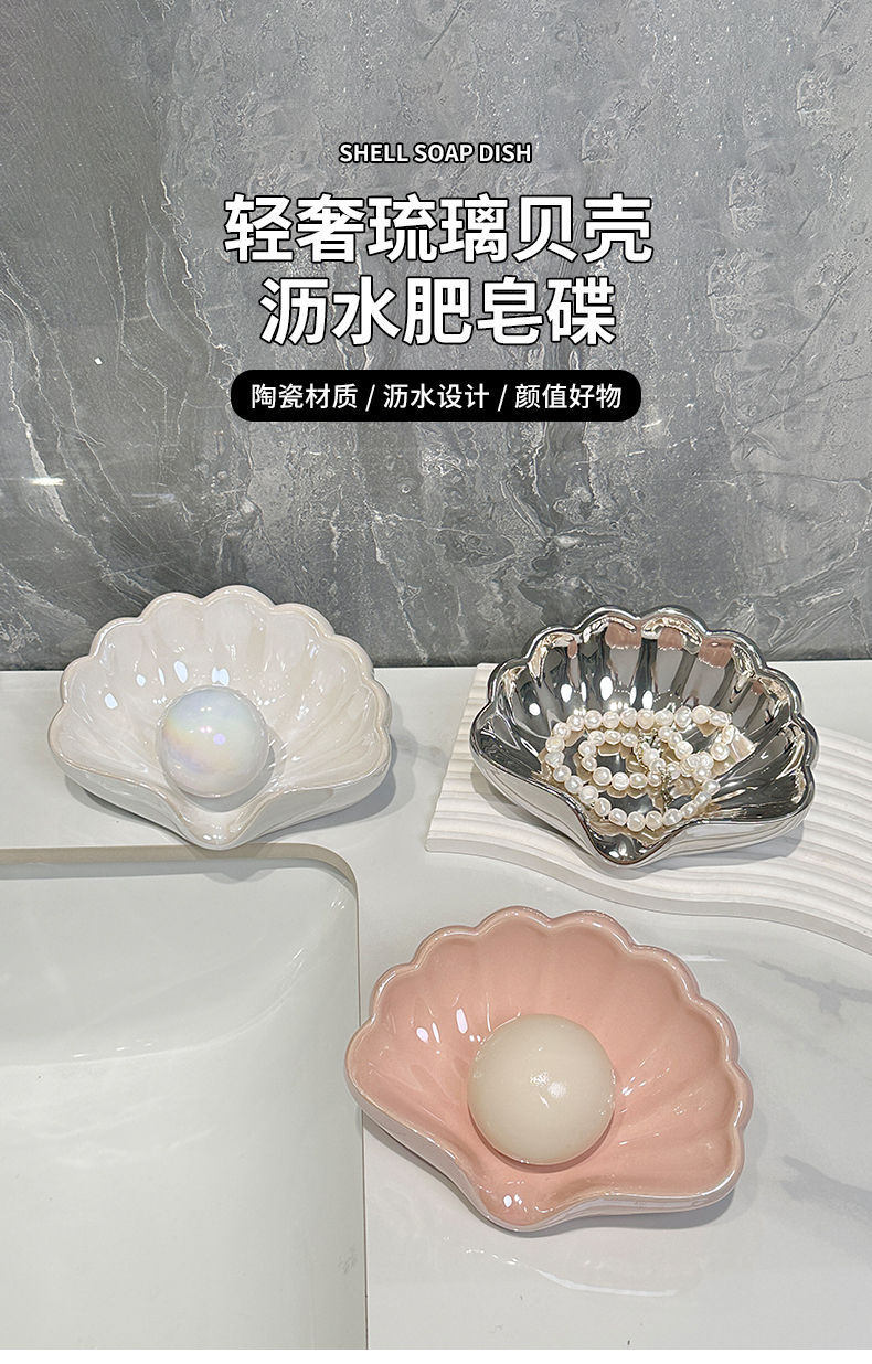 塑料贝壳香皂盒浴室创意沥水肥皂盒卫生间洗手台家用高档轻奢皂架