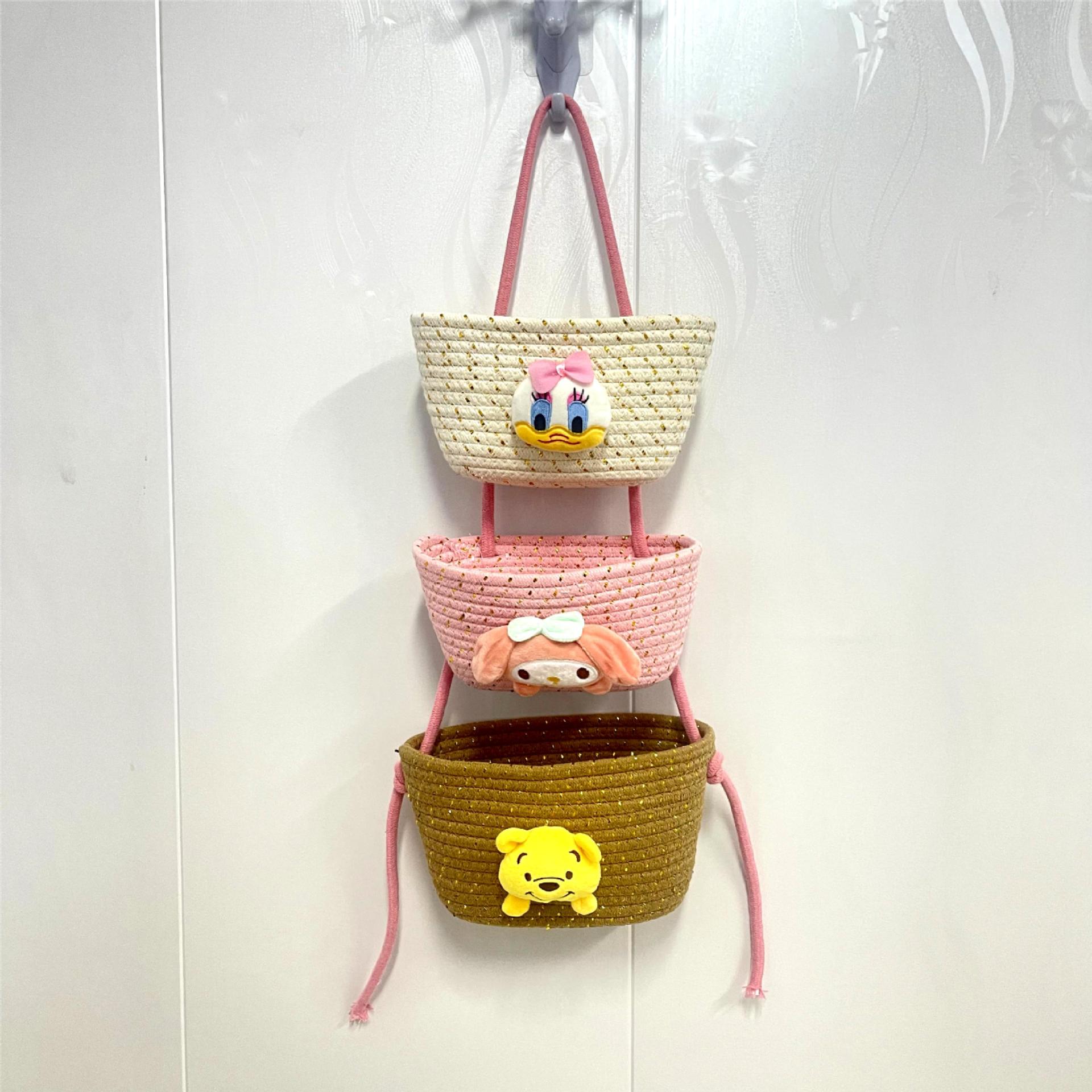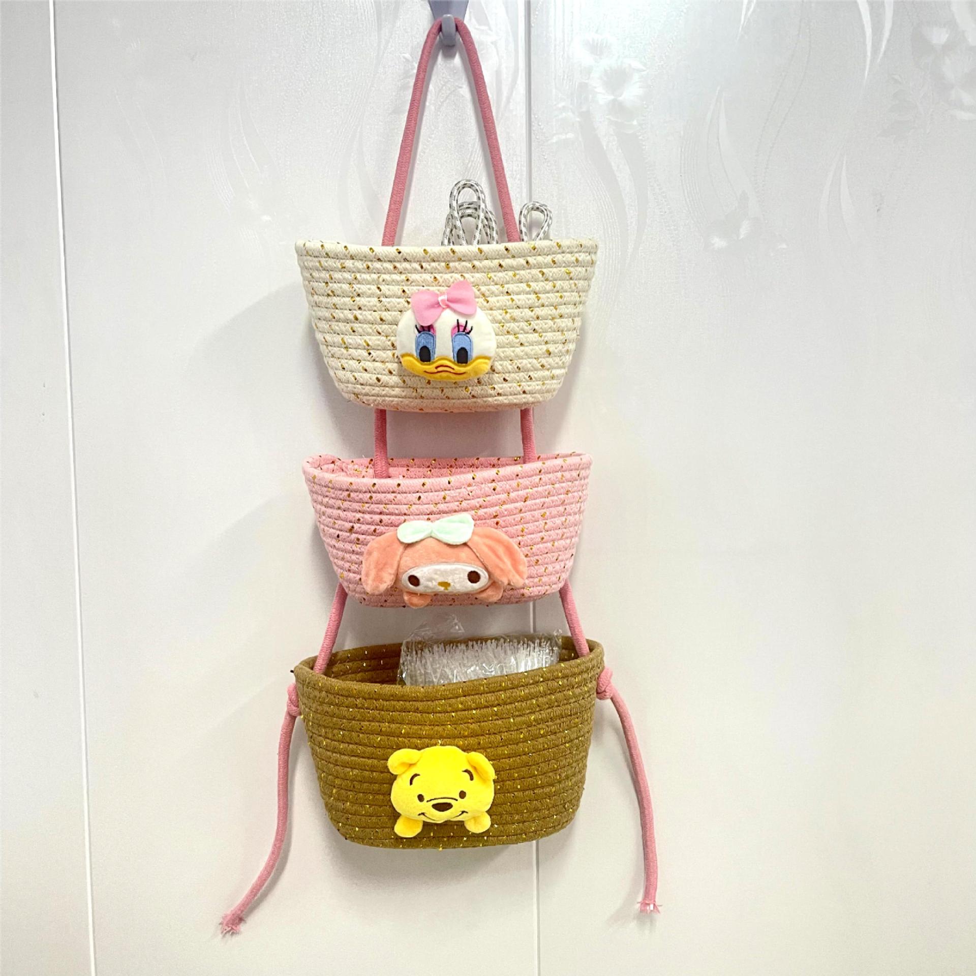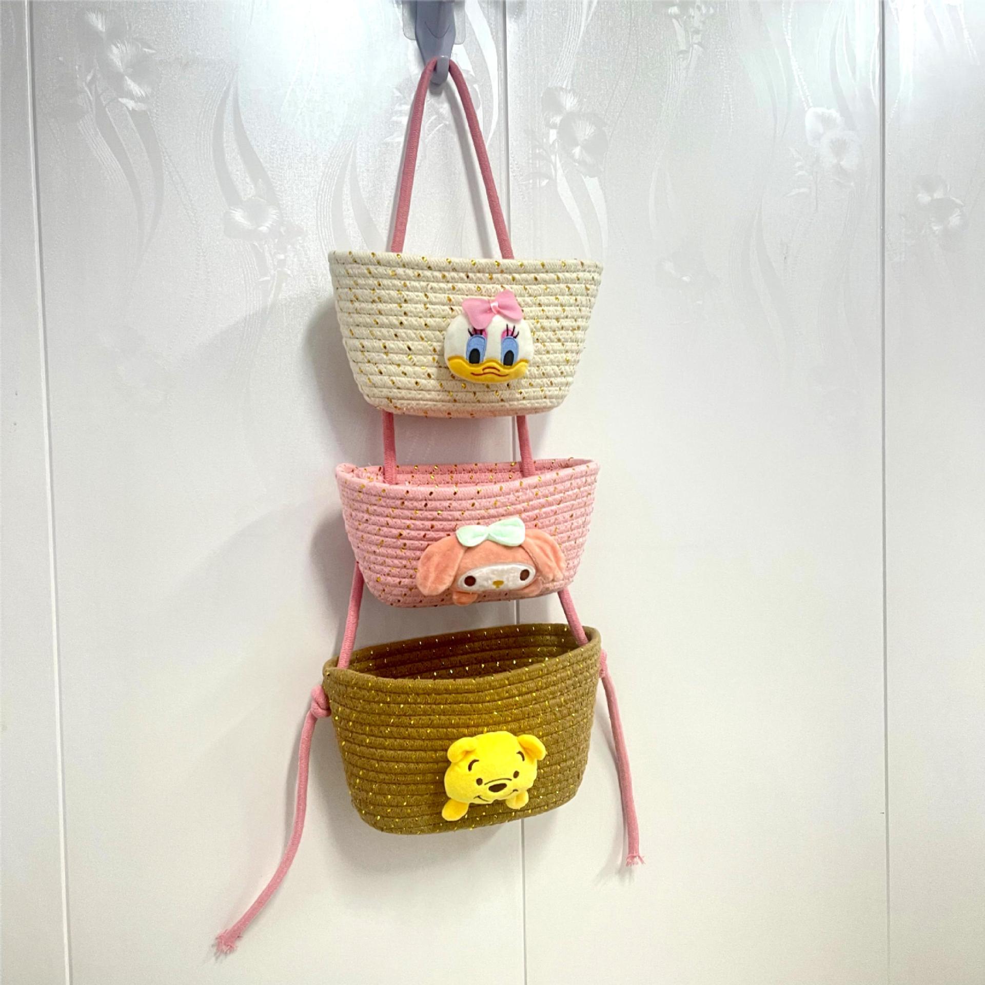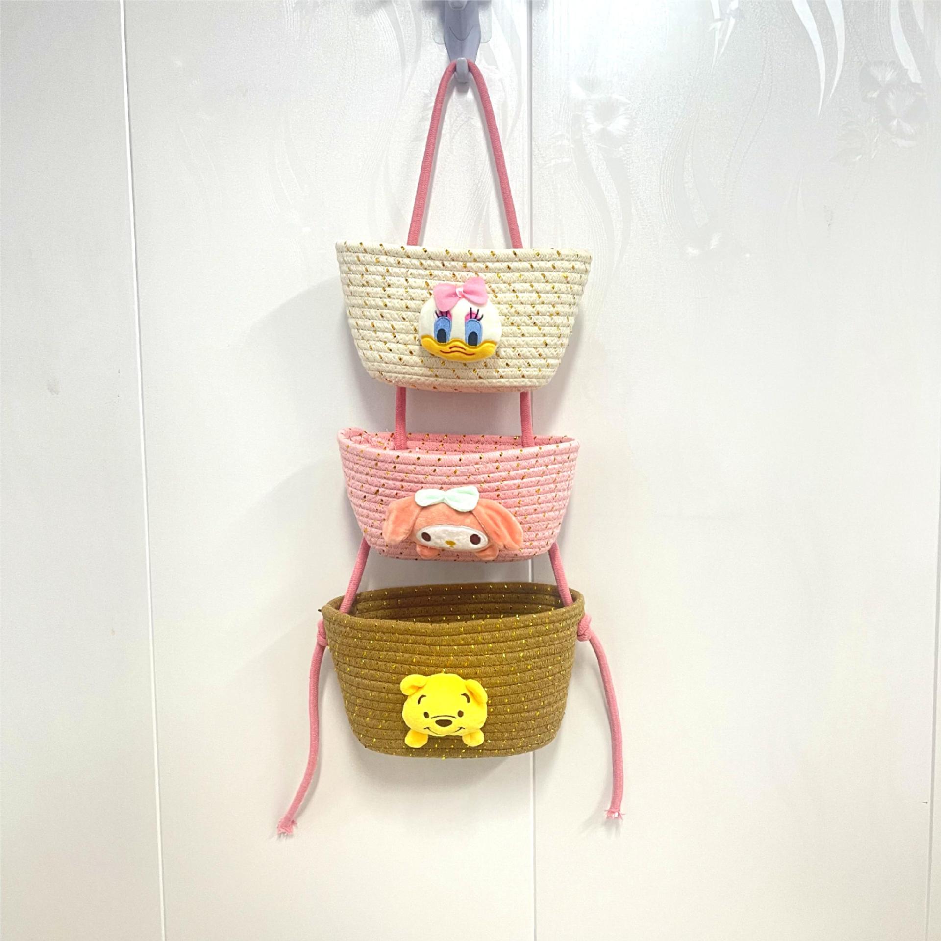 卡通三层创意棉绳收纳篮整理归纳门后客厅置物篮可挂式棉绳储物篮