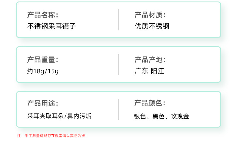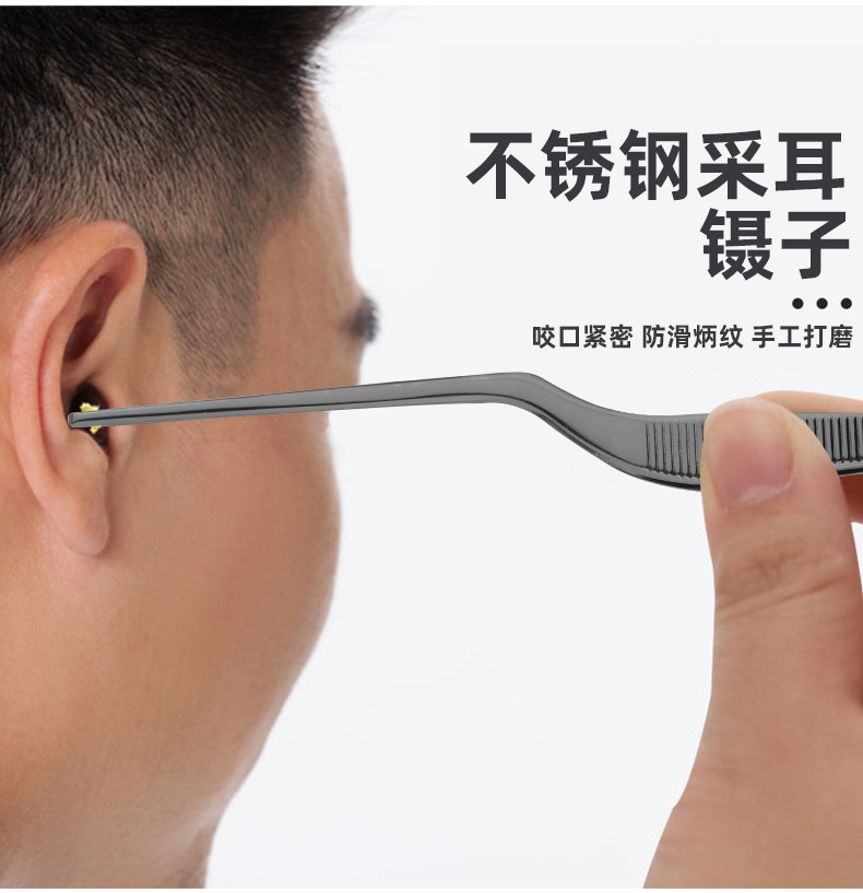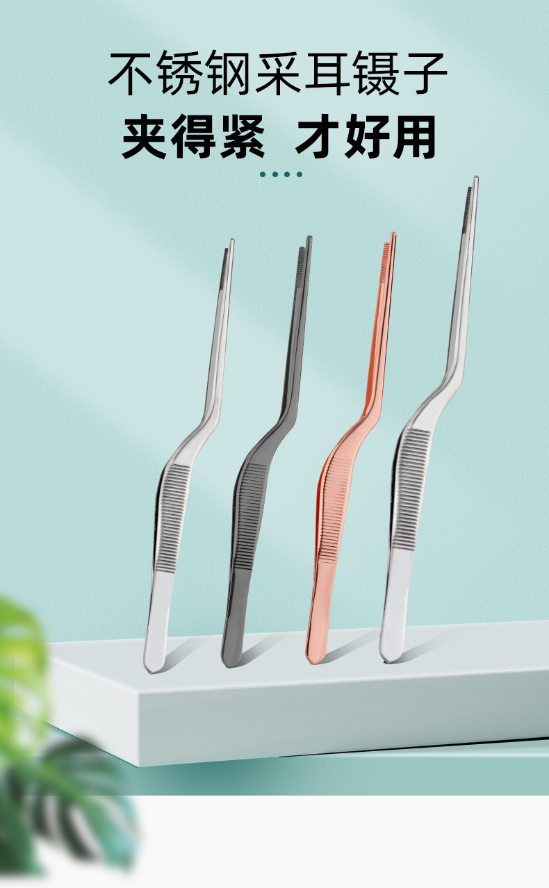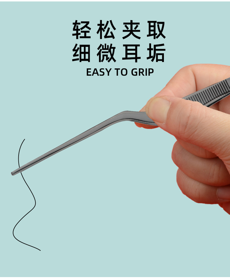 枪状掏耳朵镊子不锈钢采耳清洁用品圆头掏耳夹 弯头耳道耵聍夹子