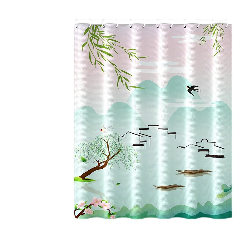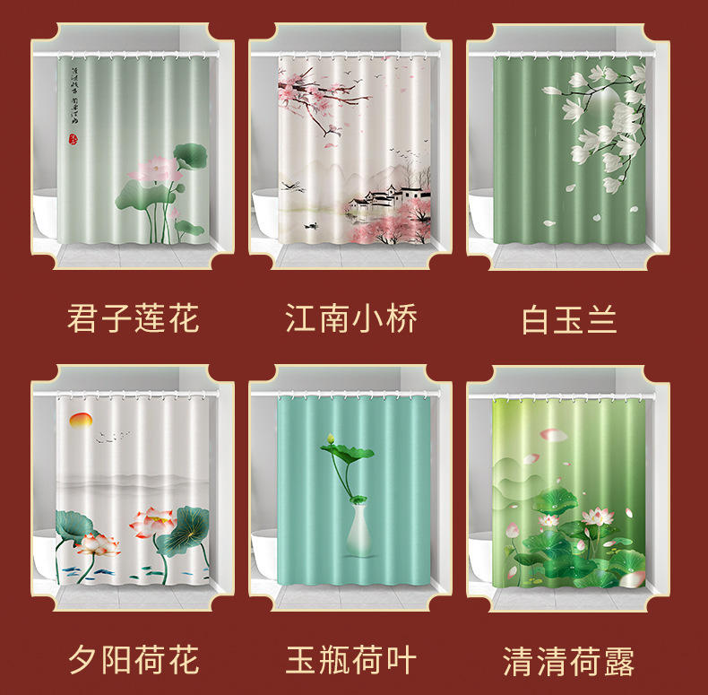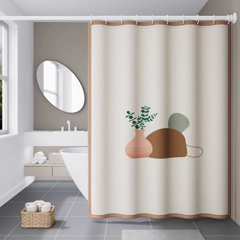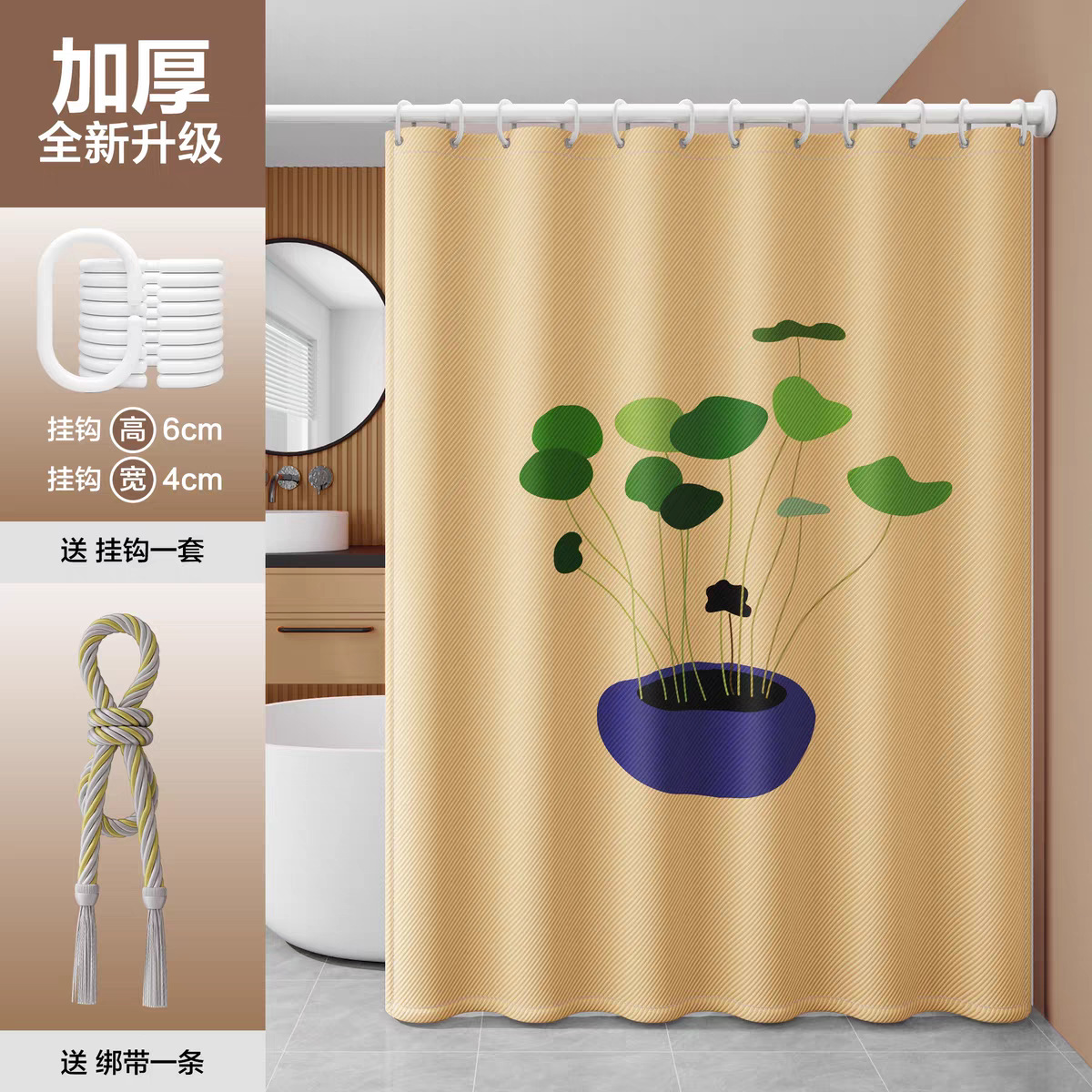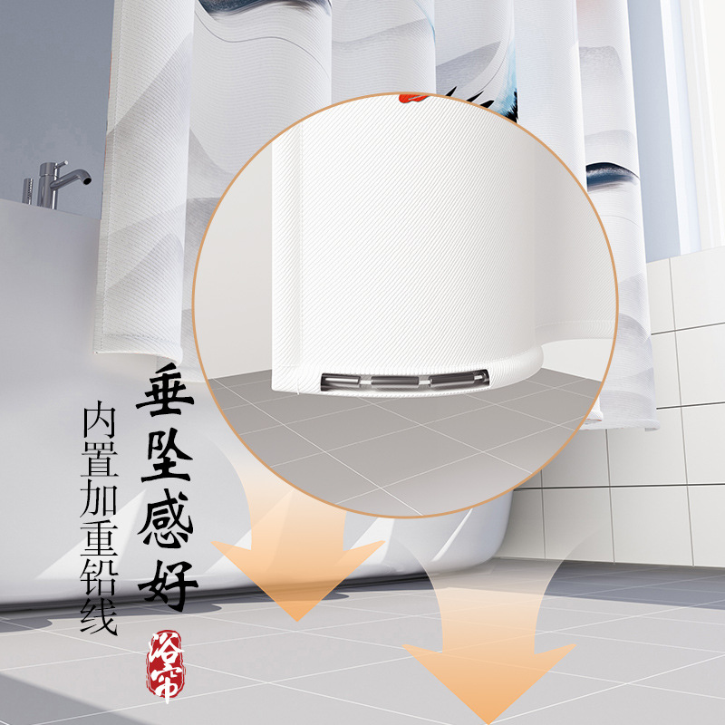 涤纶浴帘防水防霉浴帘布卫生间隔断帘套装免打孔窗帘门帘浴室帘子