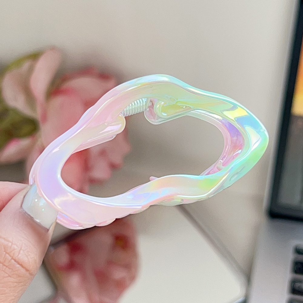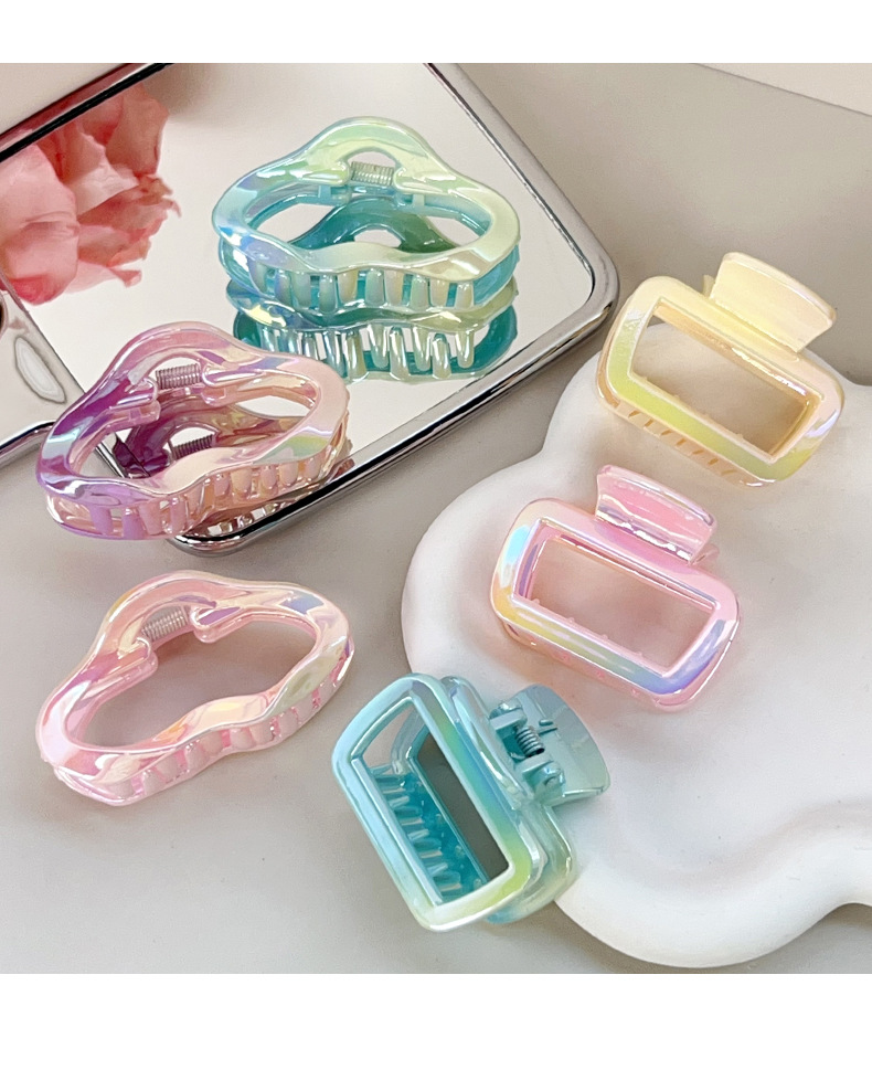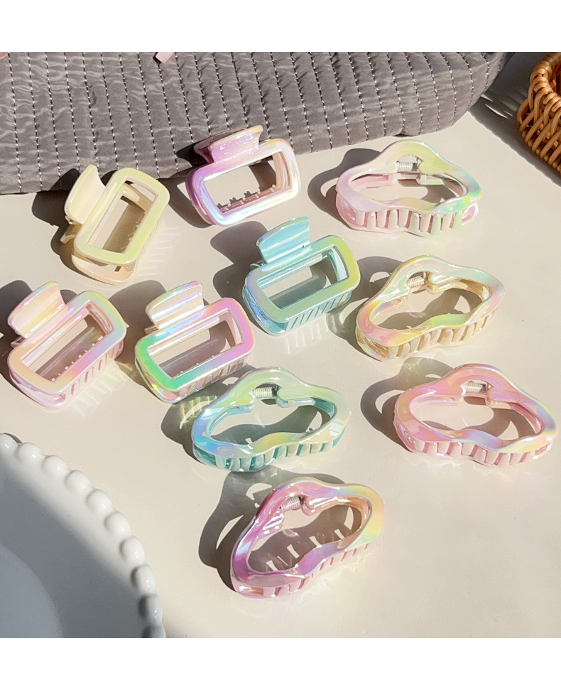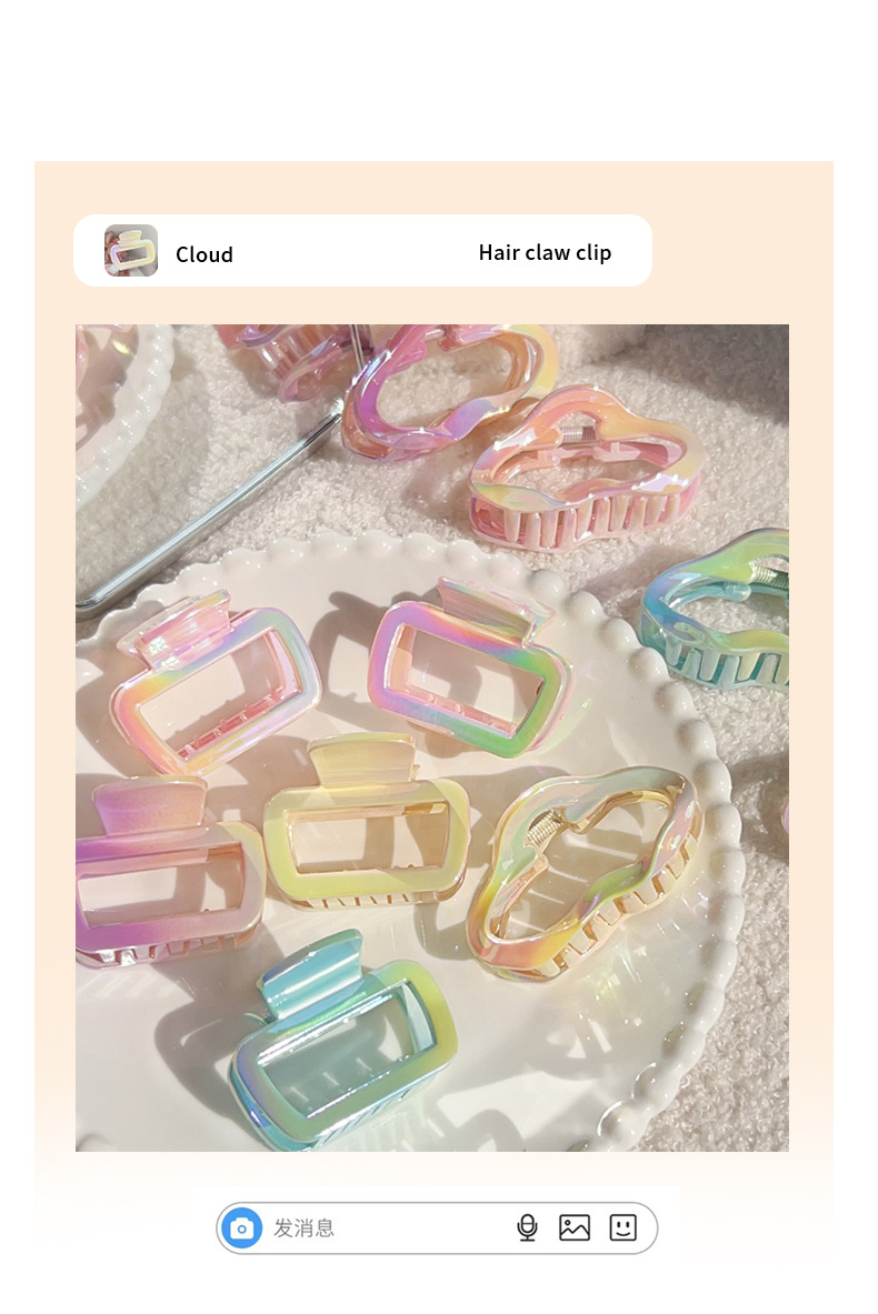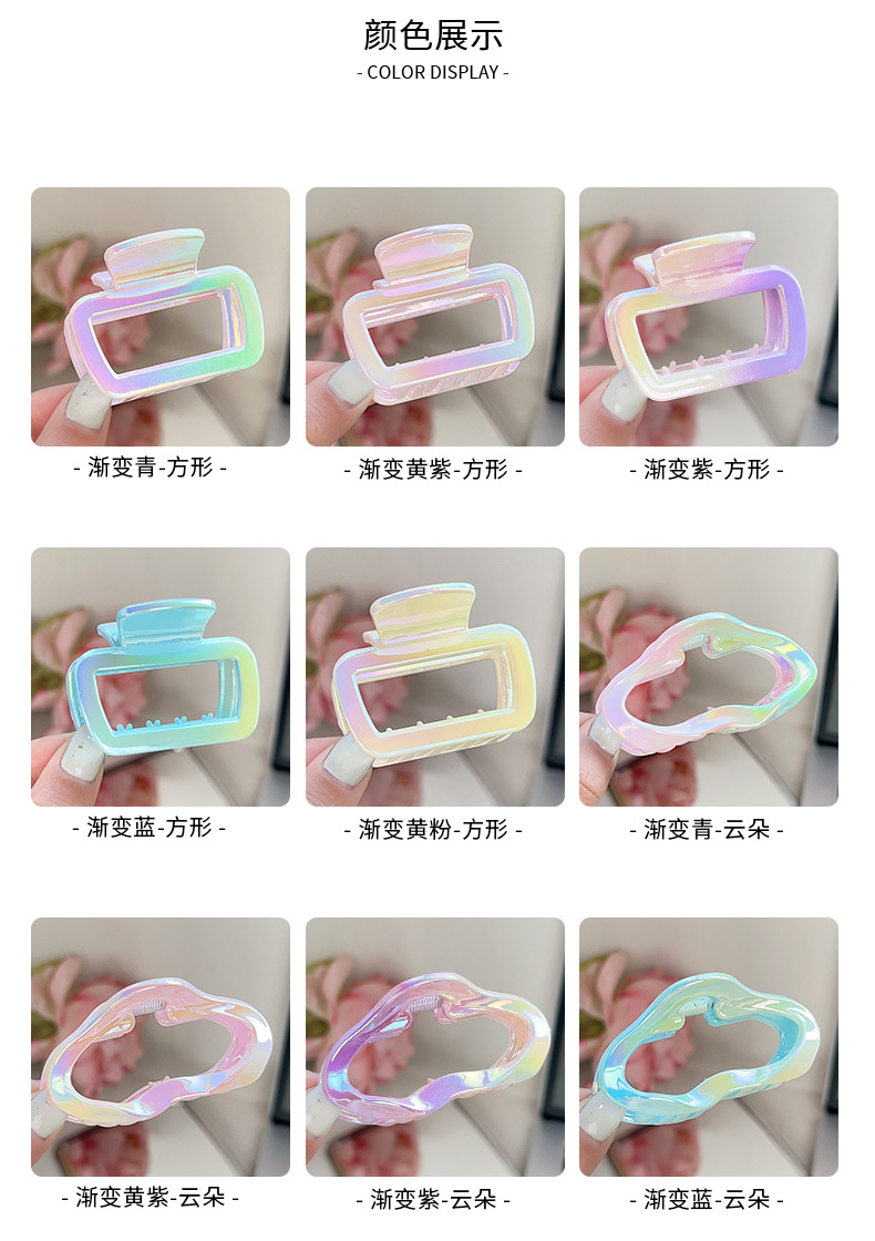 春夏渐变色方形抓夹镂空云朵半扎发夹鲨鱼夹发饰新品