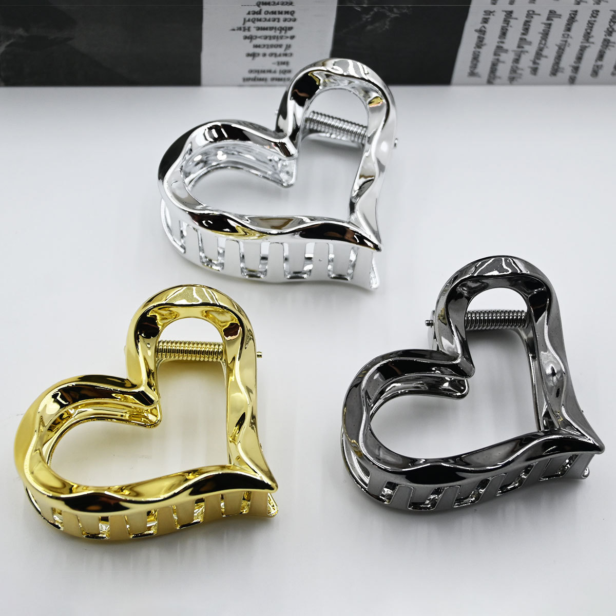 新款韩式爱心抓夹女盘发鲨鱼夹爱心发夹心形头饰