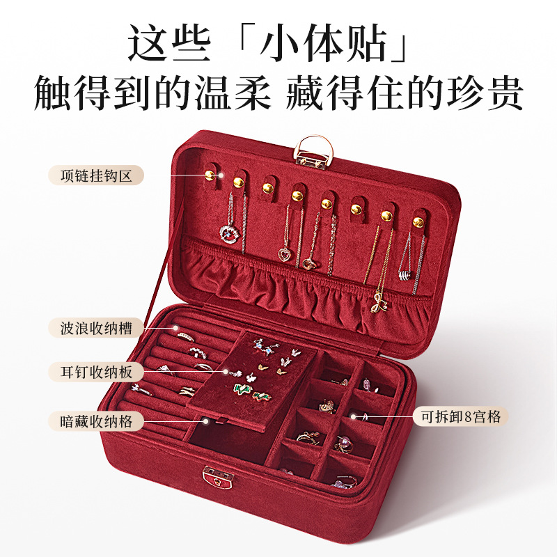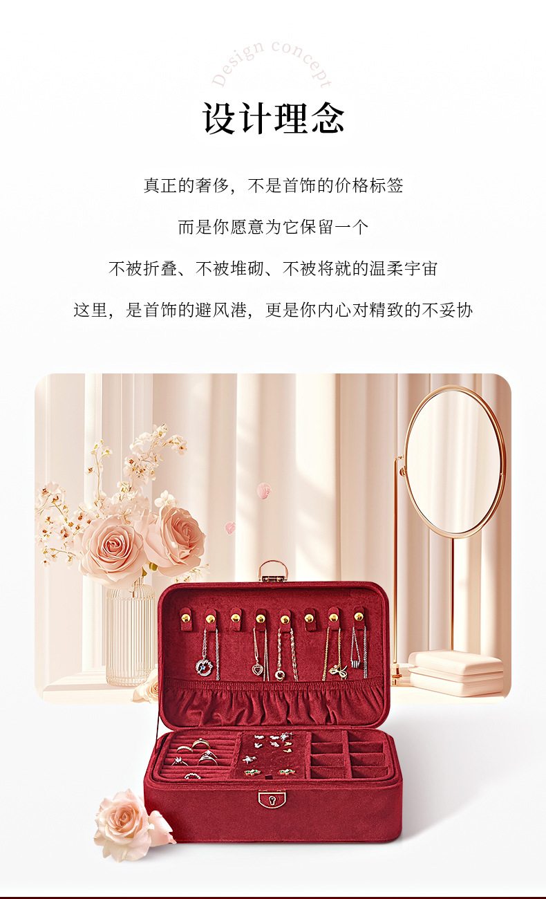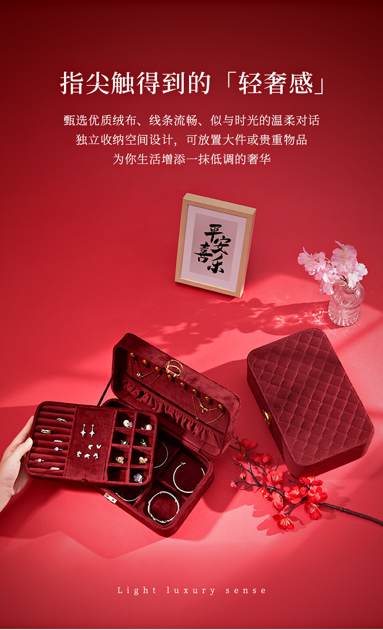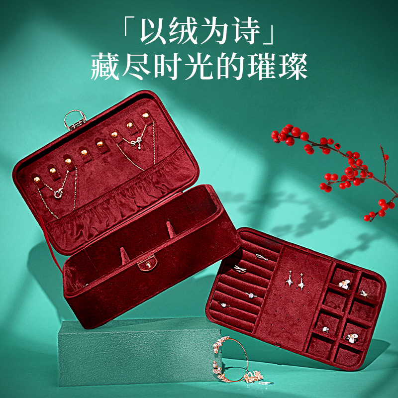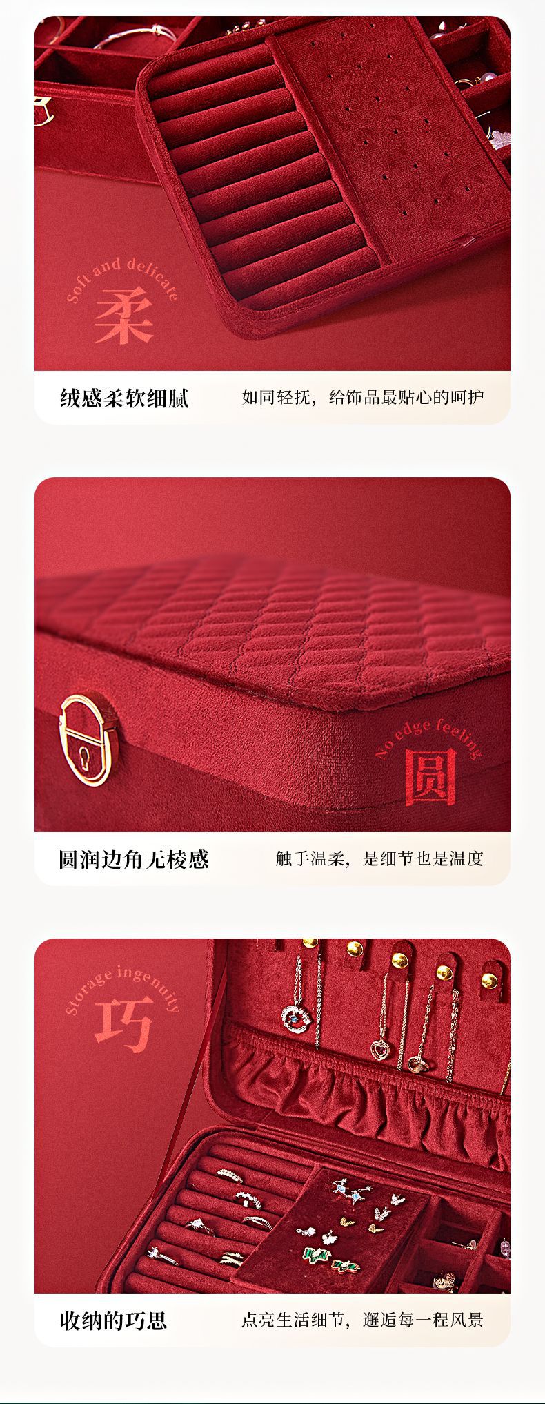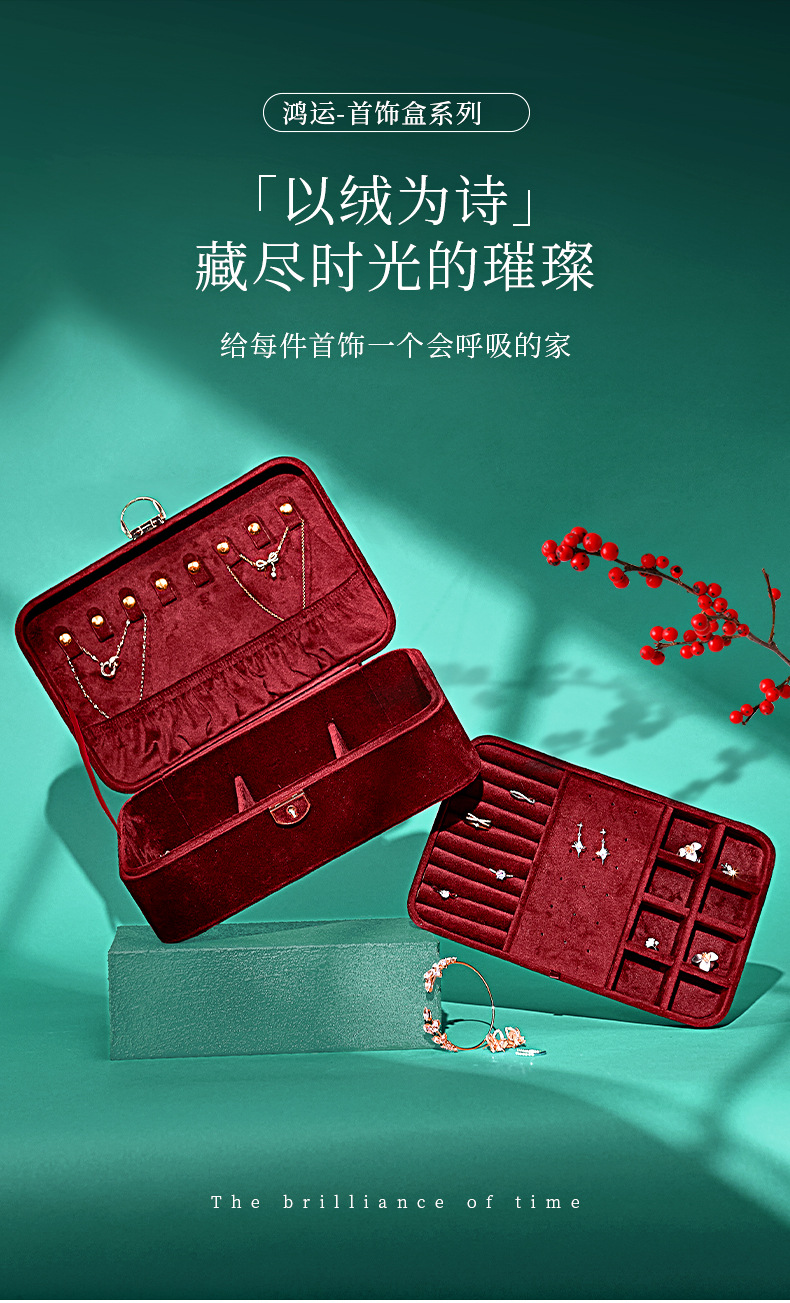 厂家直销国风绒布首饰盒跨境专供首饰盒节日平价首饰盒