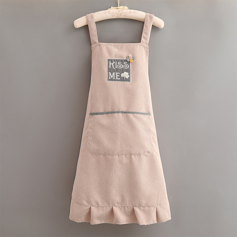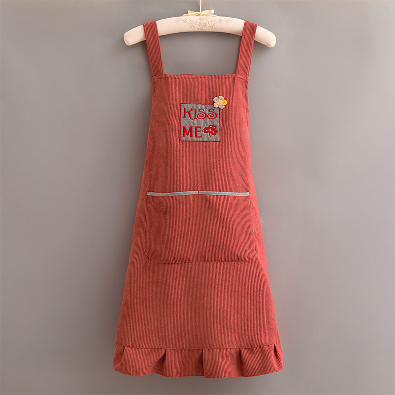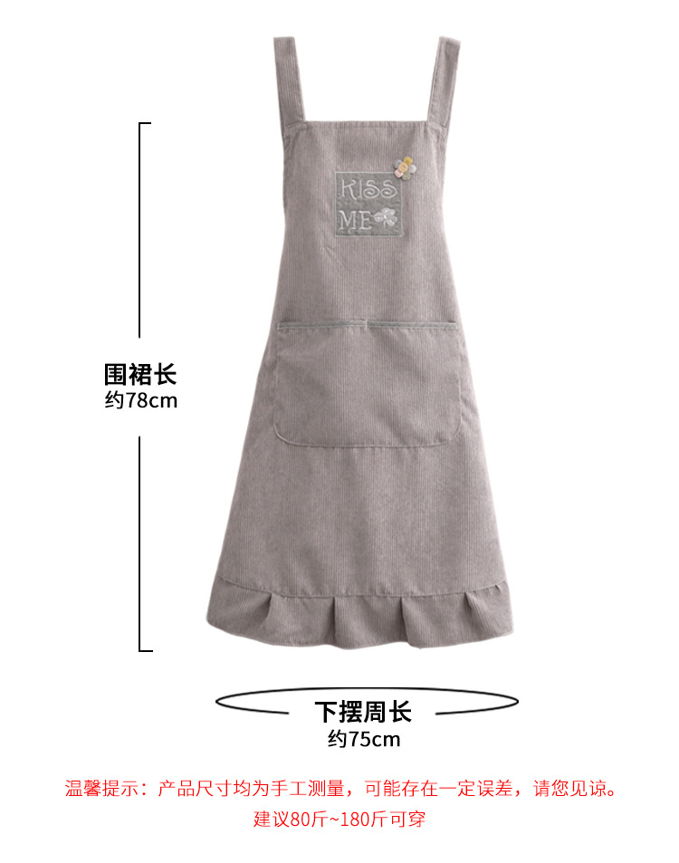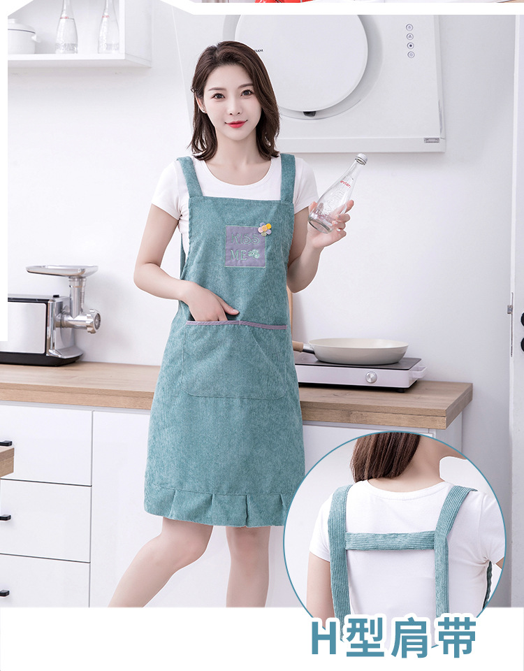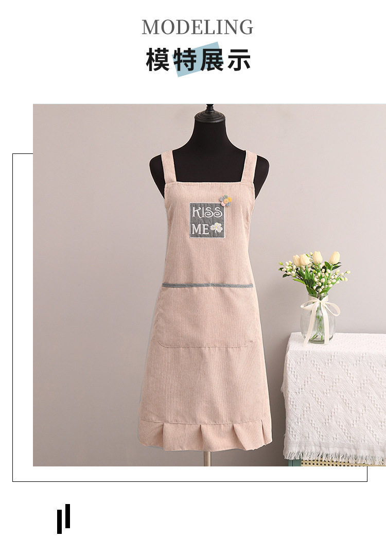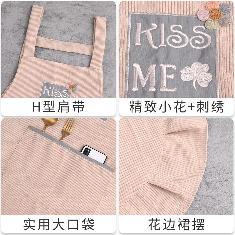 灯芯绒刺绣围裙家用厨房2022新款韩版女时尚双层防水防污透气围腰