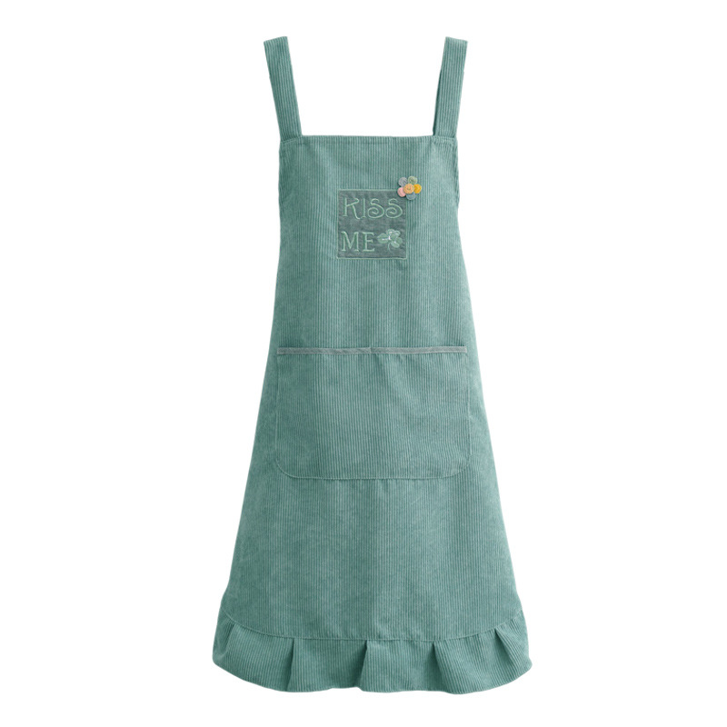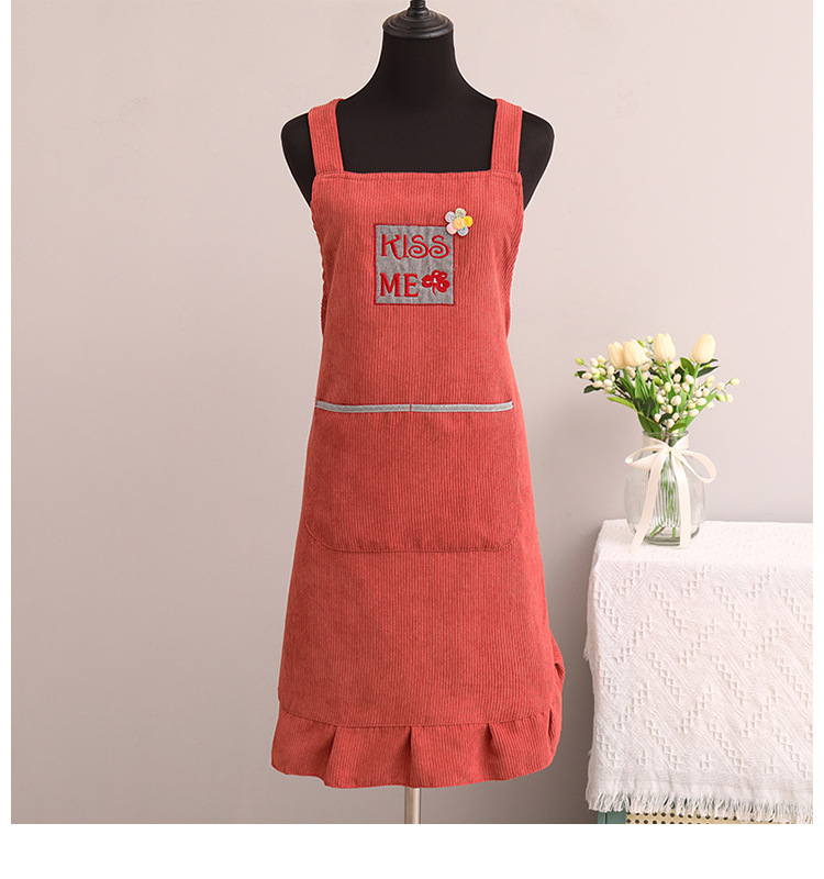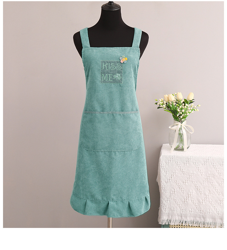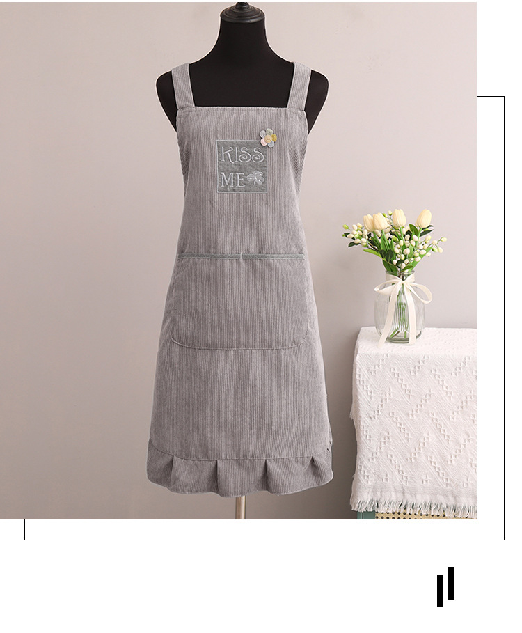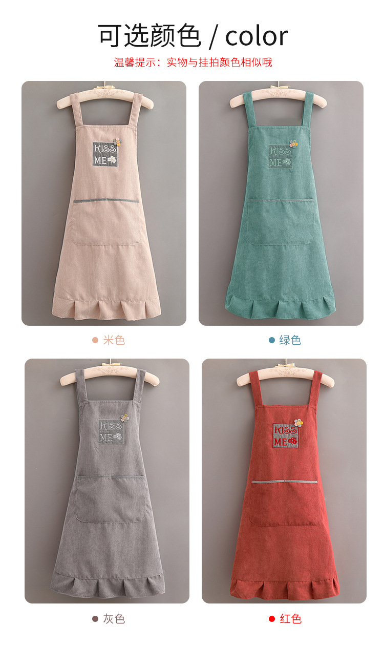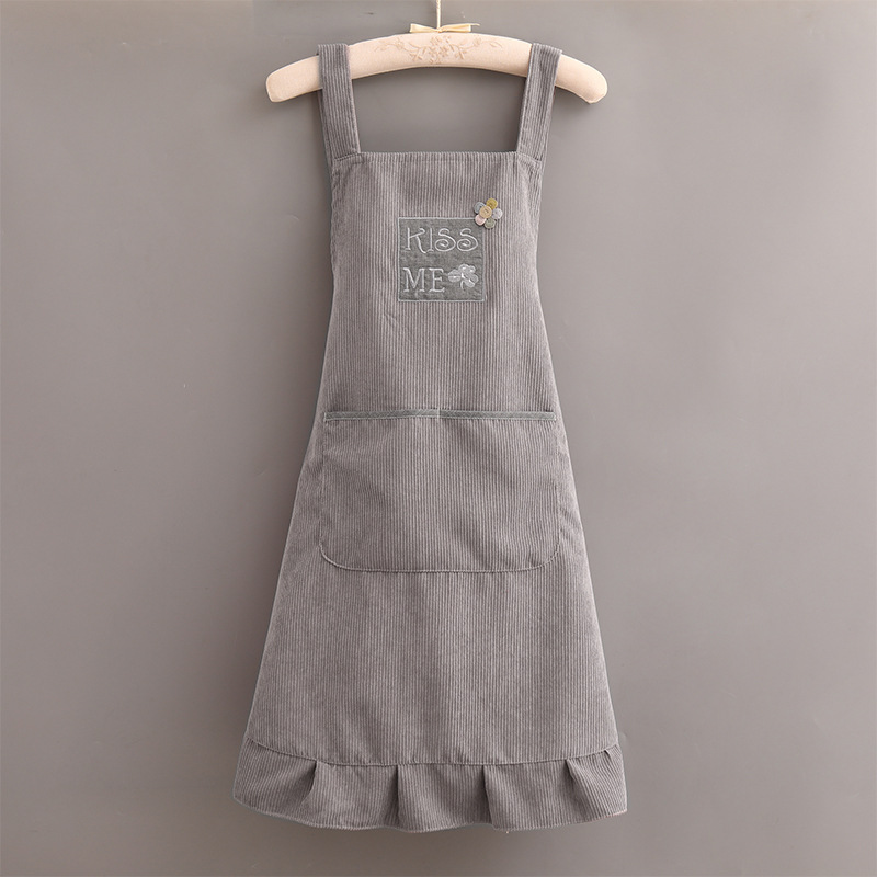 灯芯绒刺绣围裙家用厨房2022新款韩版女时尚双层防水防污透气围腰