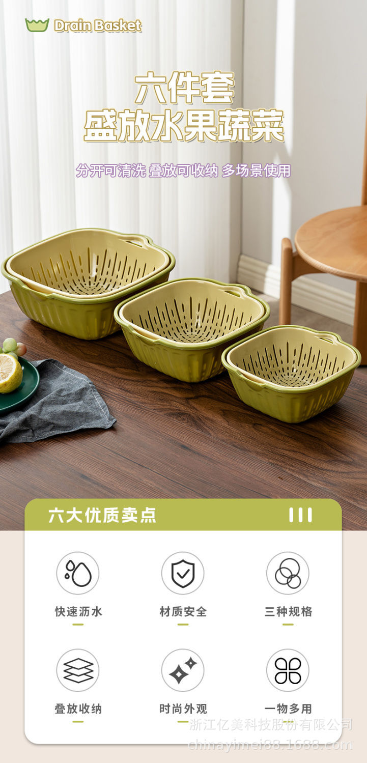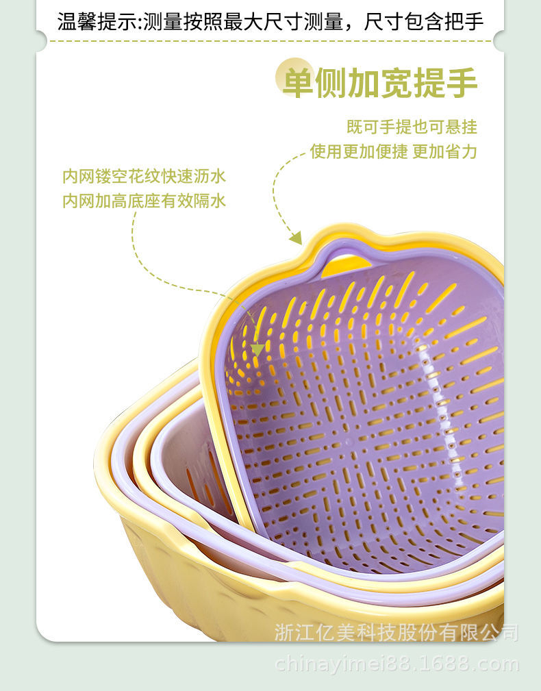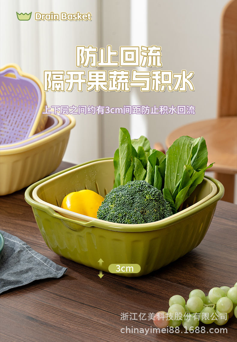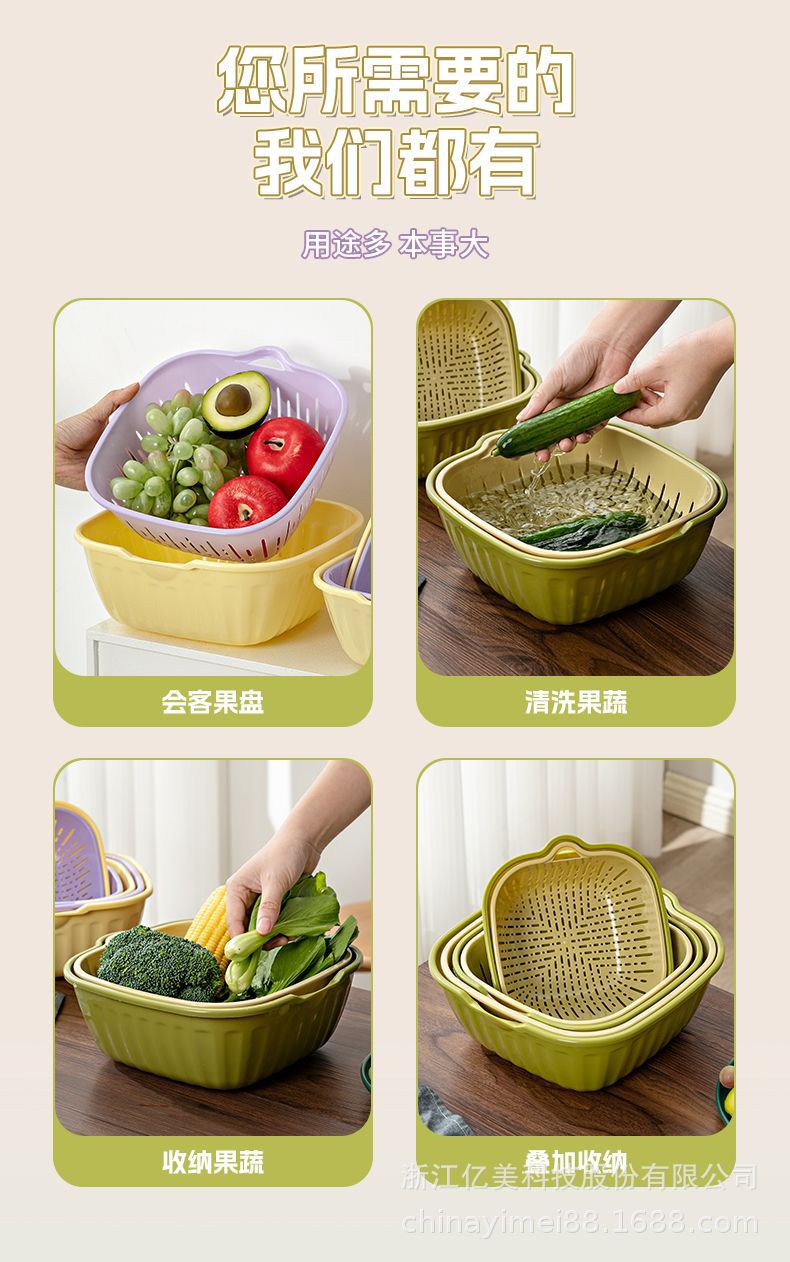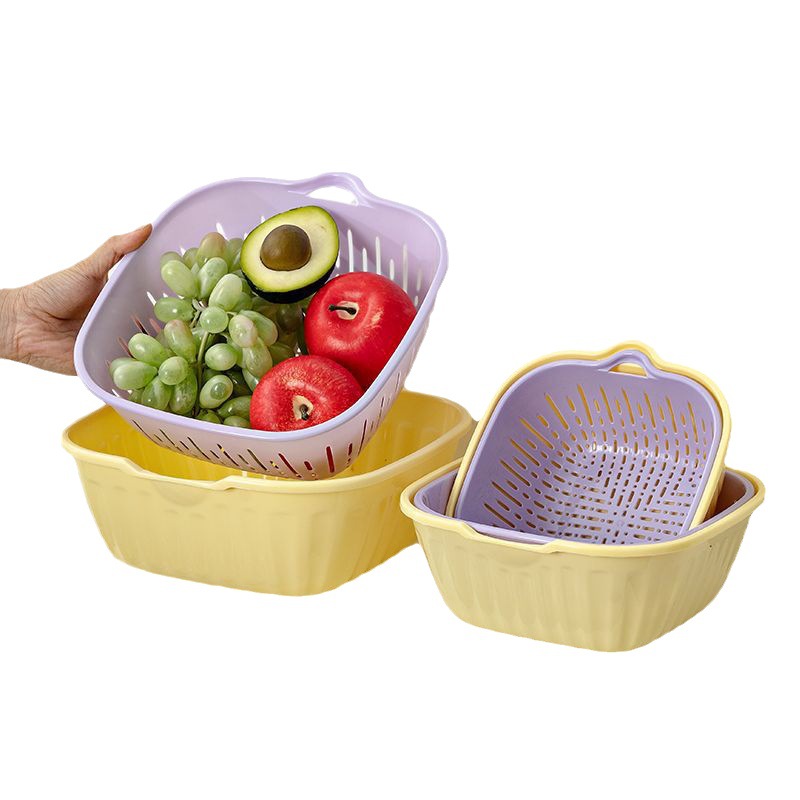 沥水篮洗菜盆厨房火锅拼盘双层洗菜篮家用塑料水果洗菜篮沥水