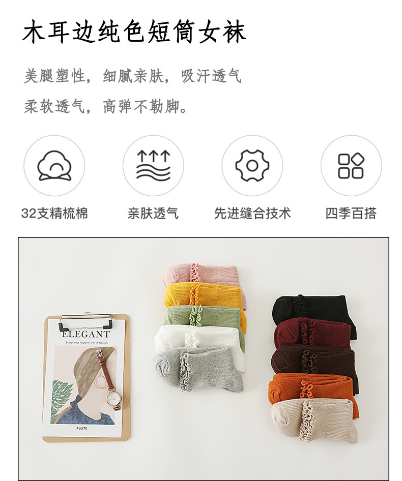 短袜花边日系洛丽塔短筒针织棉木耳翻边袜子荷叶边女式袜子批发
