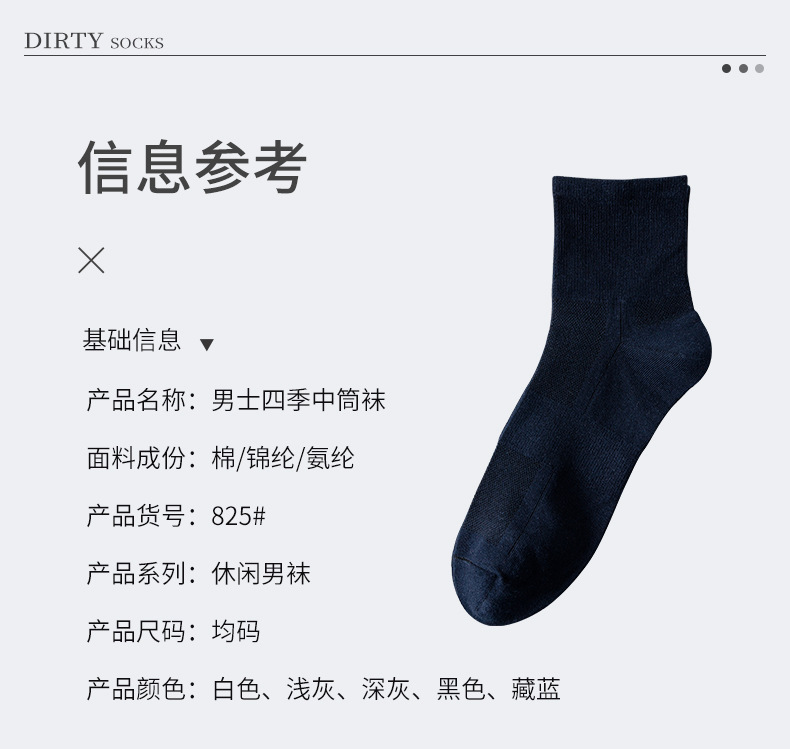 源头工厂运动袜子男款棉春夏季透气吸汗防臭纯色青少年薄款中筒袜