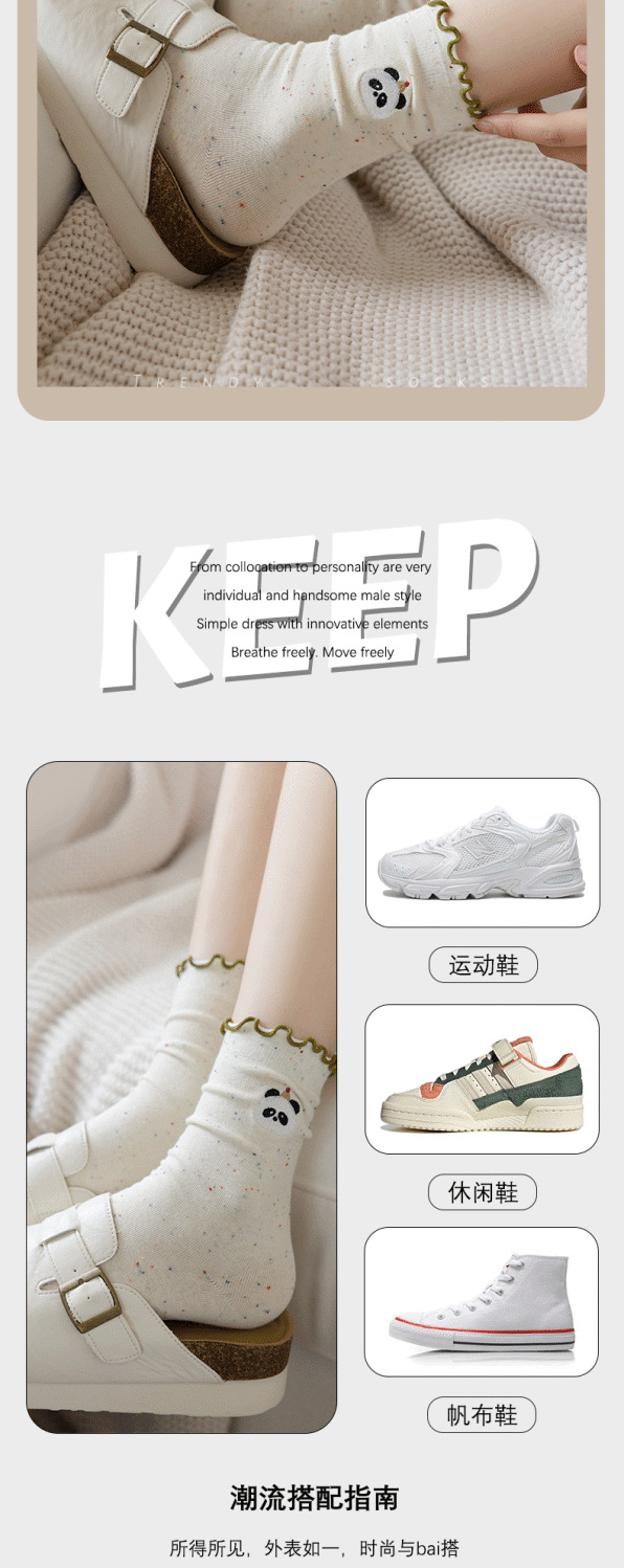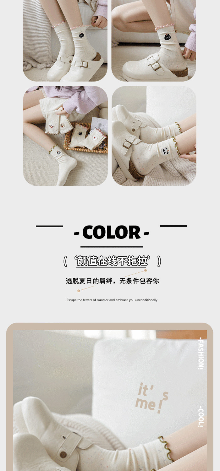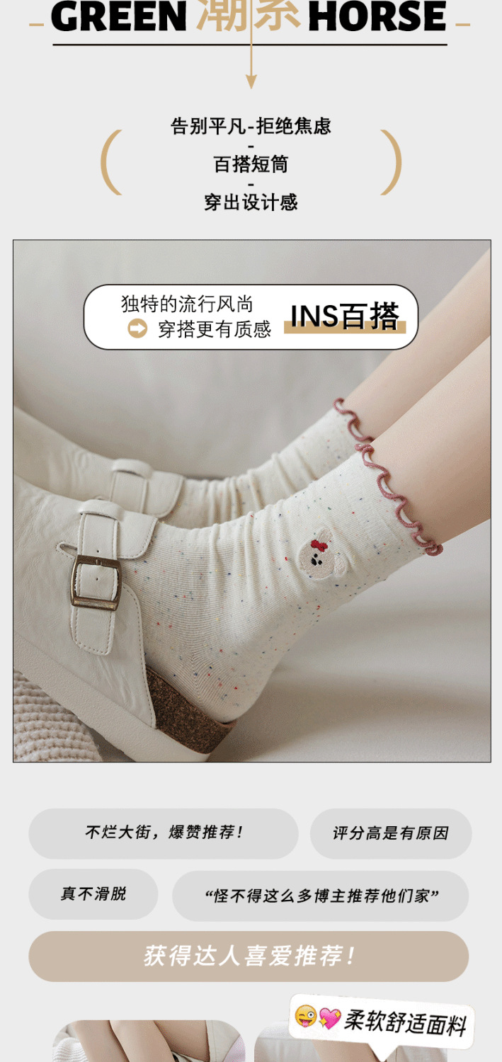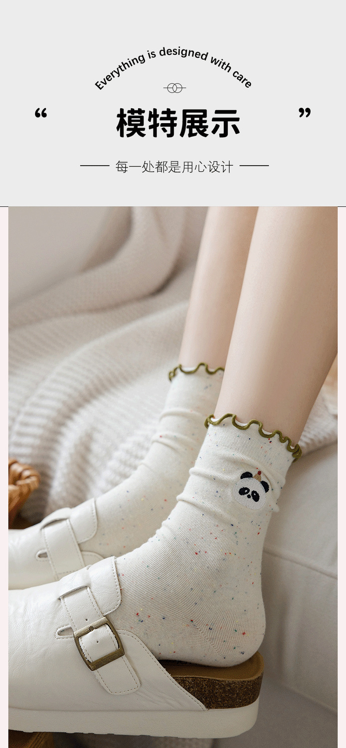袜子女ins秋冬中长筒木耳边简约点纱可爱卡通网红百搭堆堆袜透气