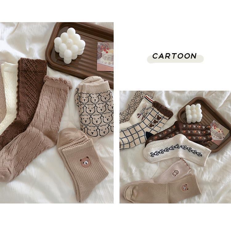 袜子女士春秋中筒袜ins潮棉春秋日系卡通堆堆袜秋冬复古长筒袜女