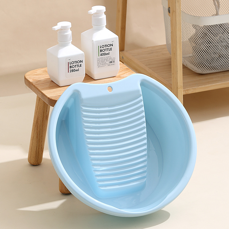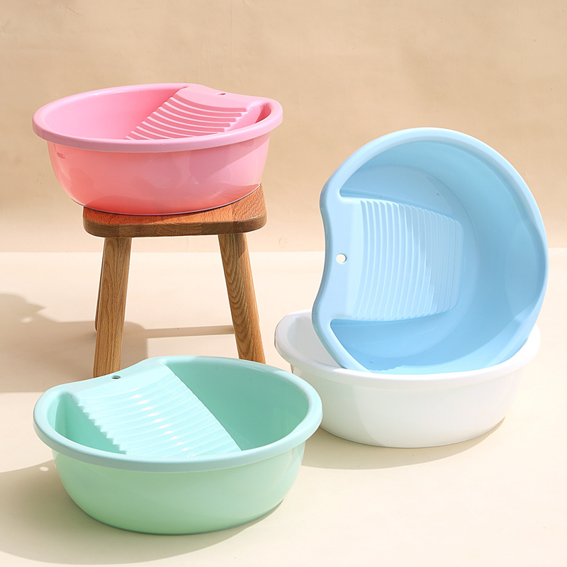 素色加厚洗衣盆家用学生宿舍塑料带搓板盆子婴儿洗衣服盆搓衣板