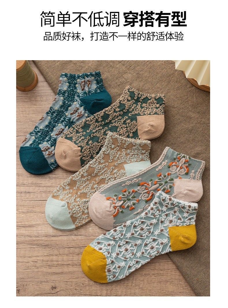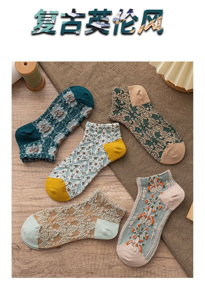 袜子女短袜宫廷立体浮雕复古森系透气棉短筒女浅口女士船袜ins
