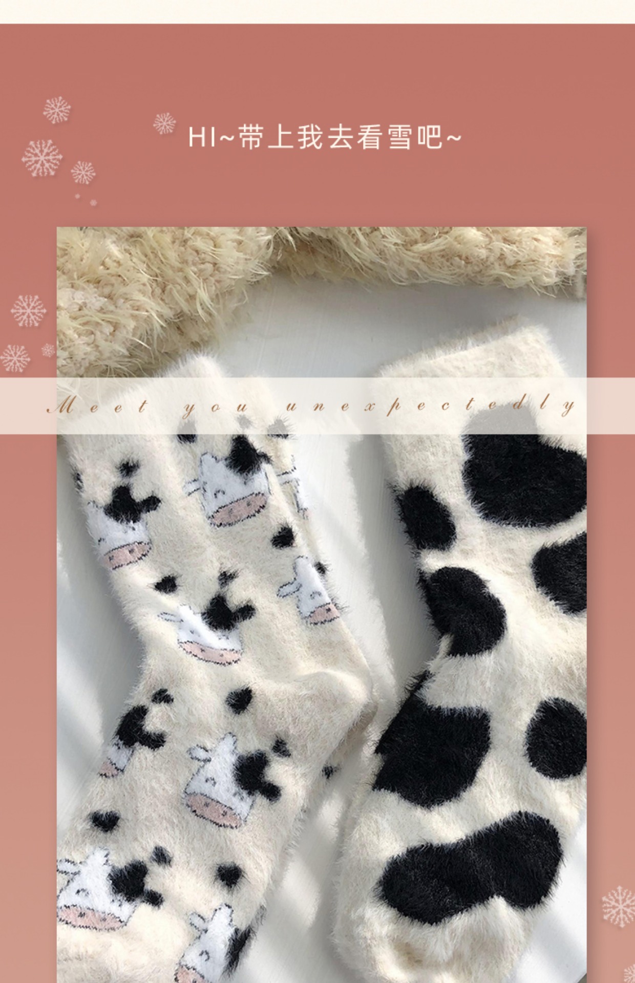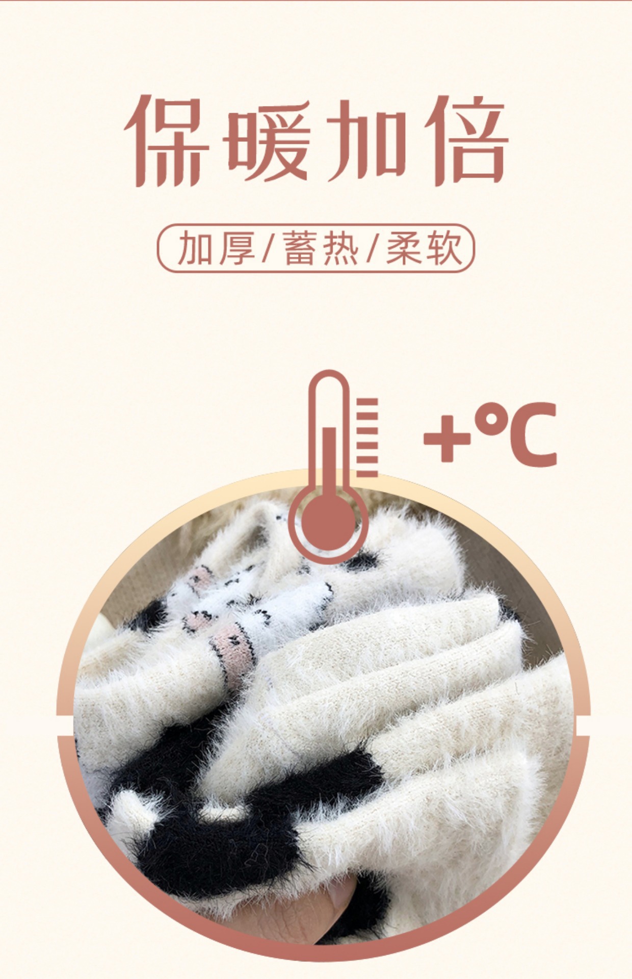 秋冬水貂绒袜子女袜保暖加绒加厚居家睡眠袜地板袜中筒袜加厚保暖