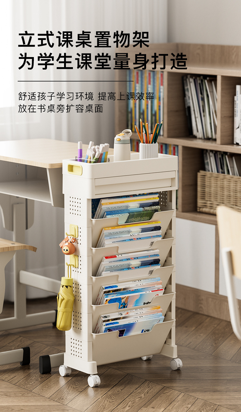 可移动教室课桌边书本收纳架小推车多层文具整理置物架书籍书架