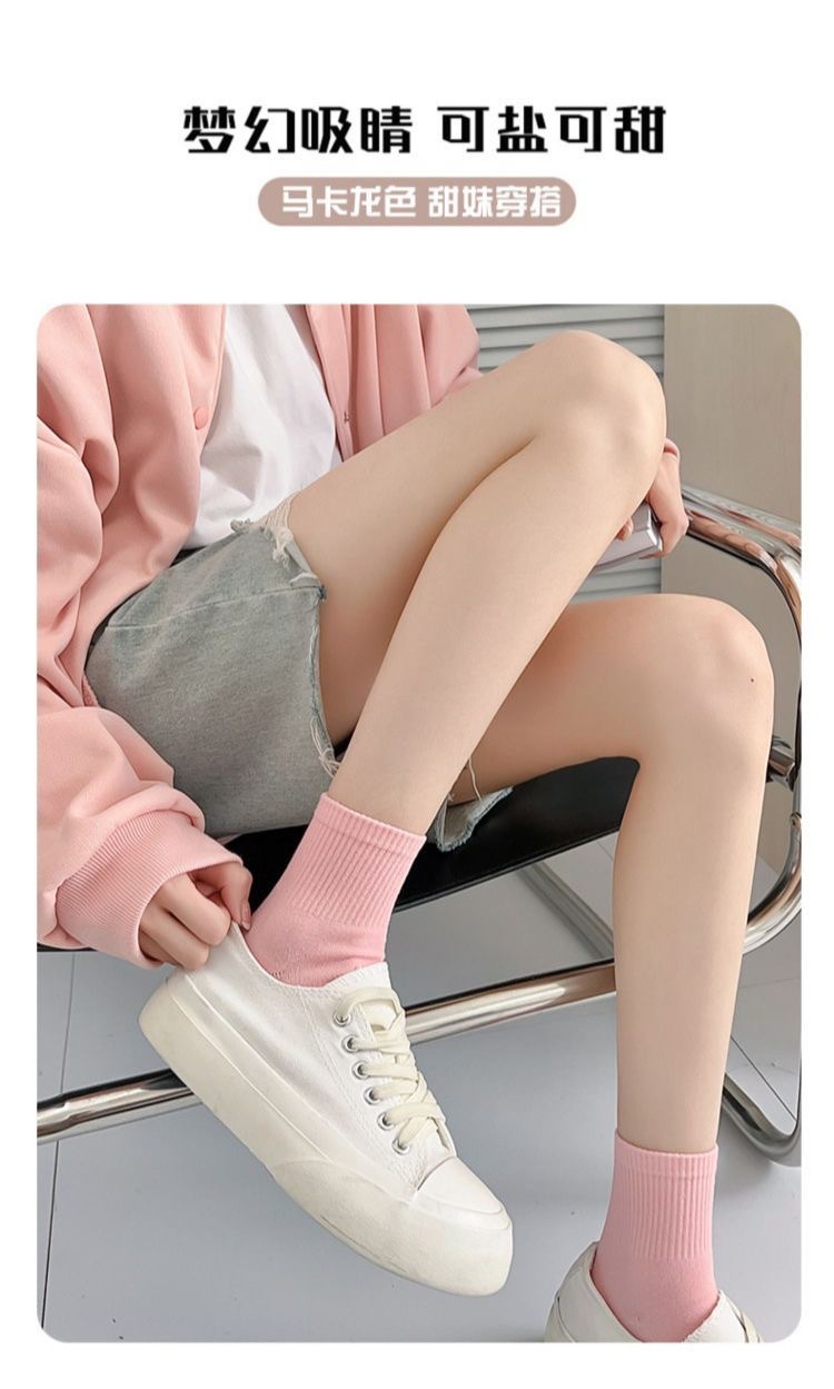 纯色袜子女夏季薄款日系学生运动彩色短袜春秋低帮透气中筒袜ins