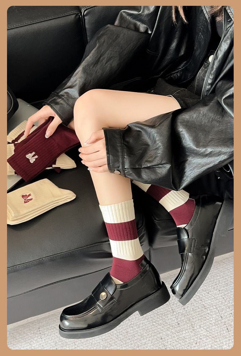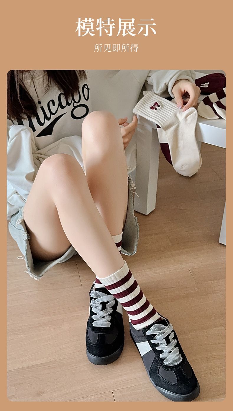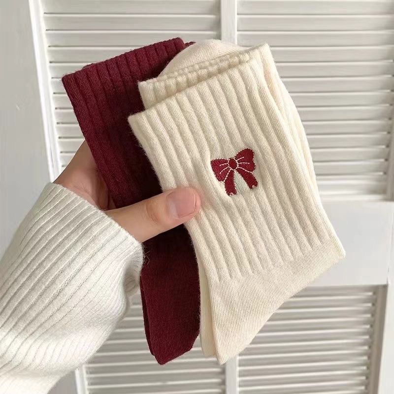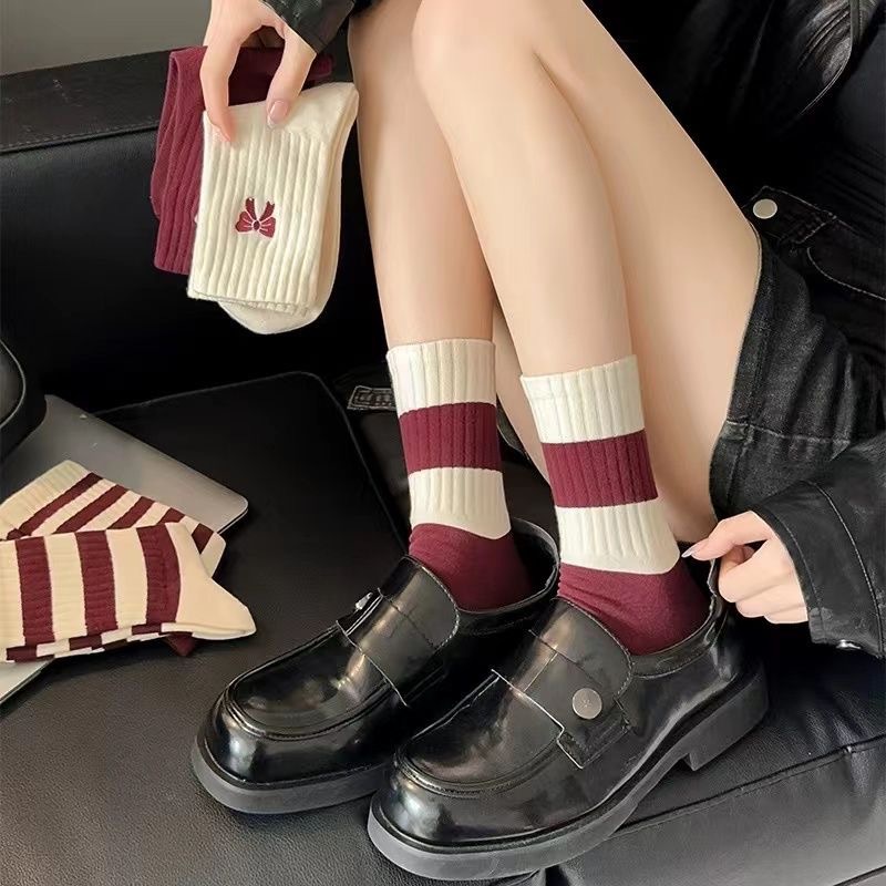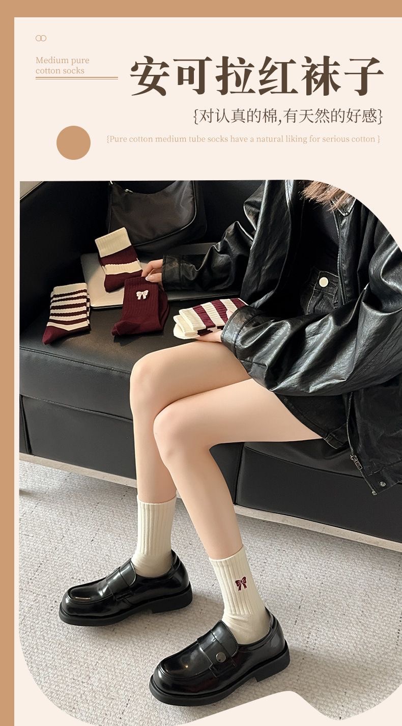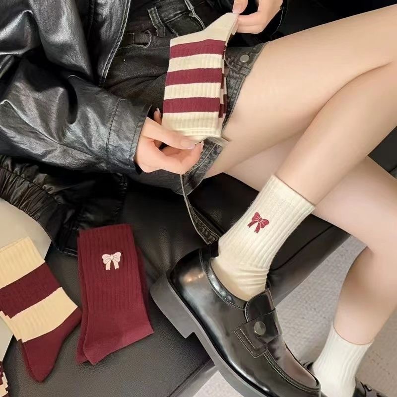 秋冬季安可拉红条纹短袜子女高橡筋韩版百搭蝴蝶结秋冬款学院风