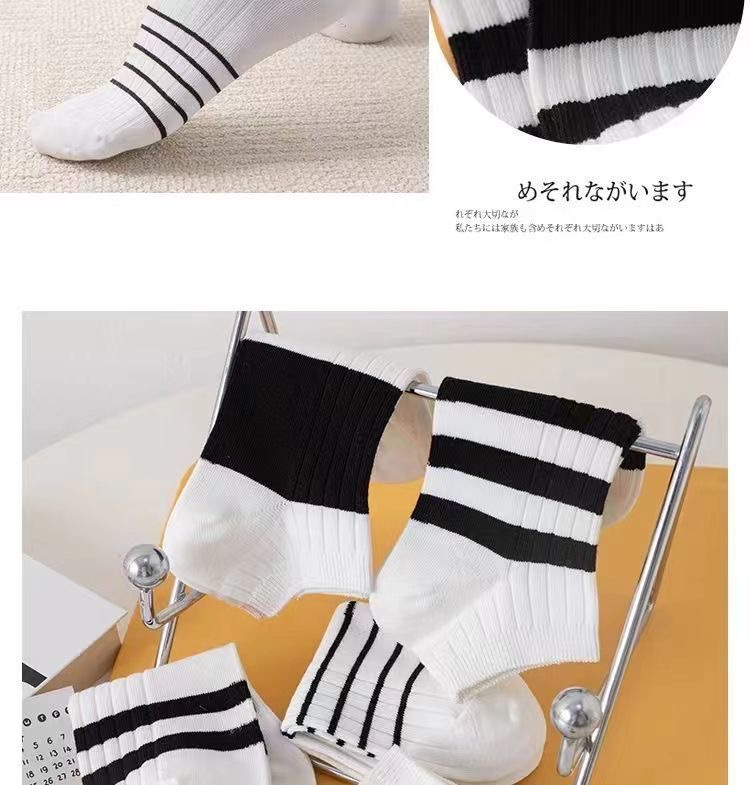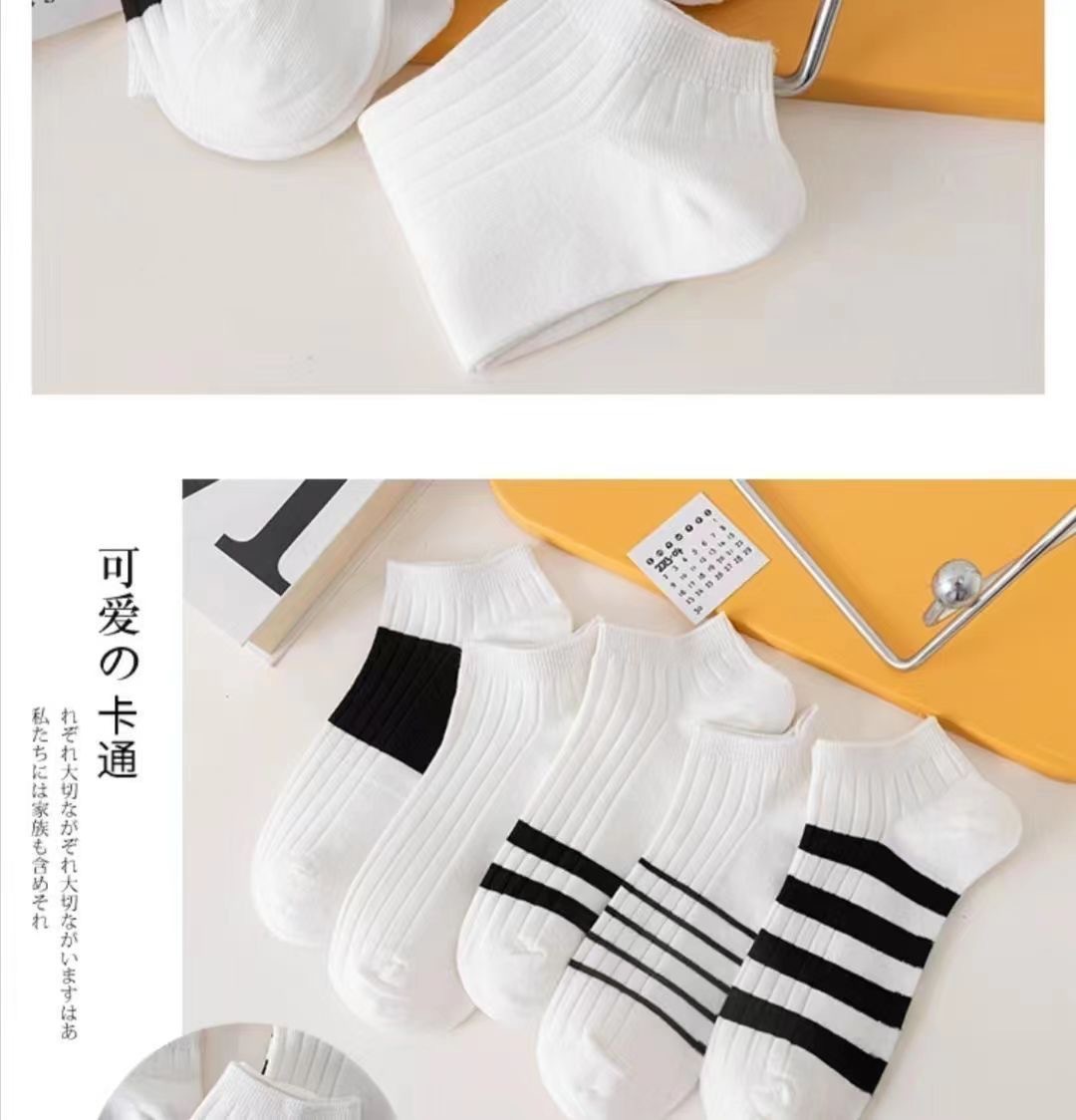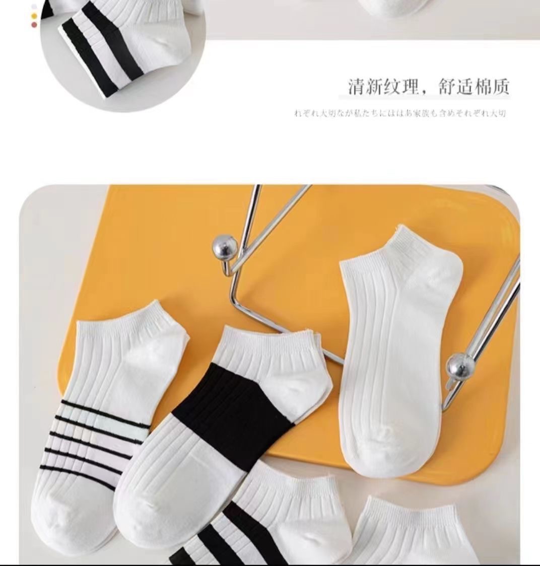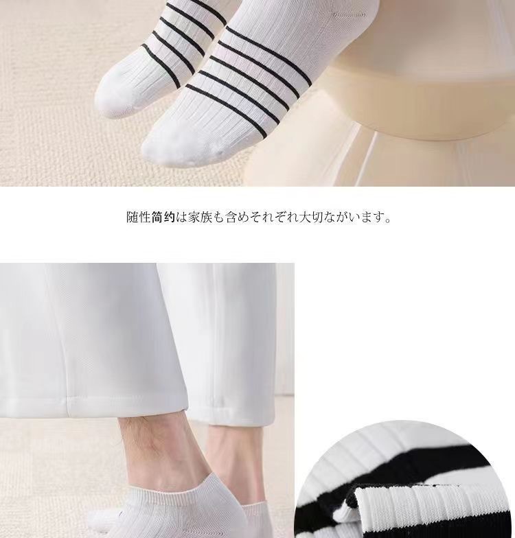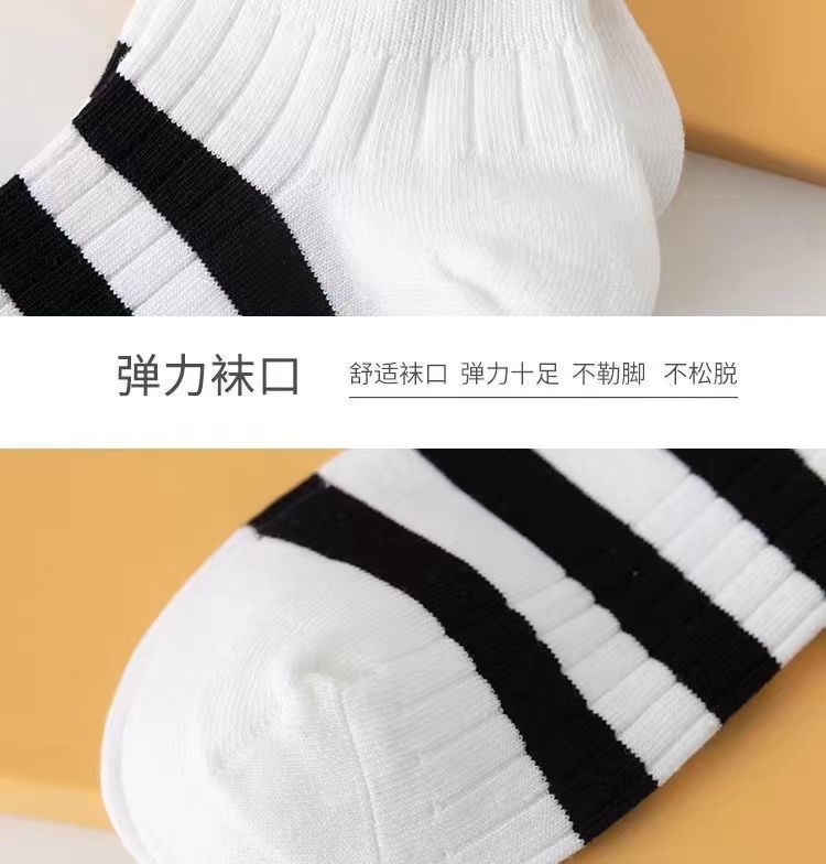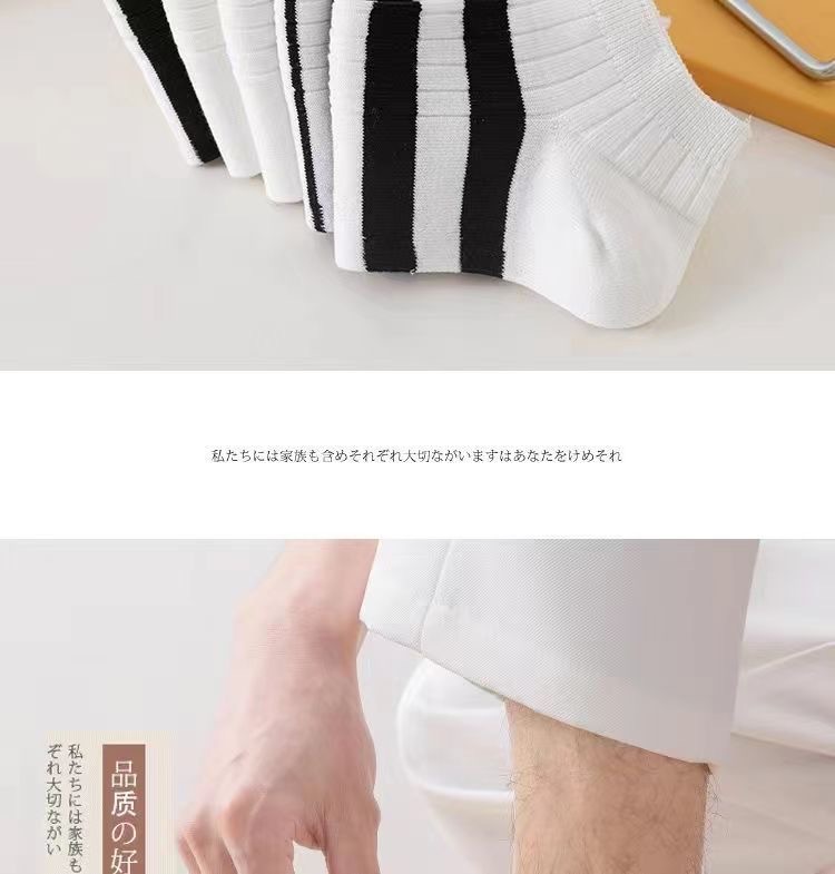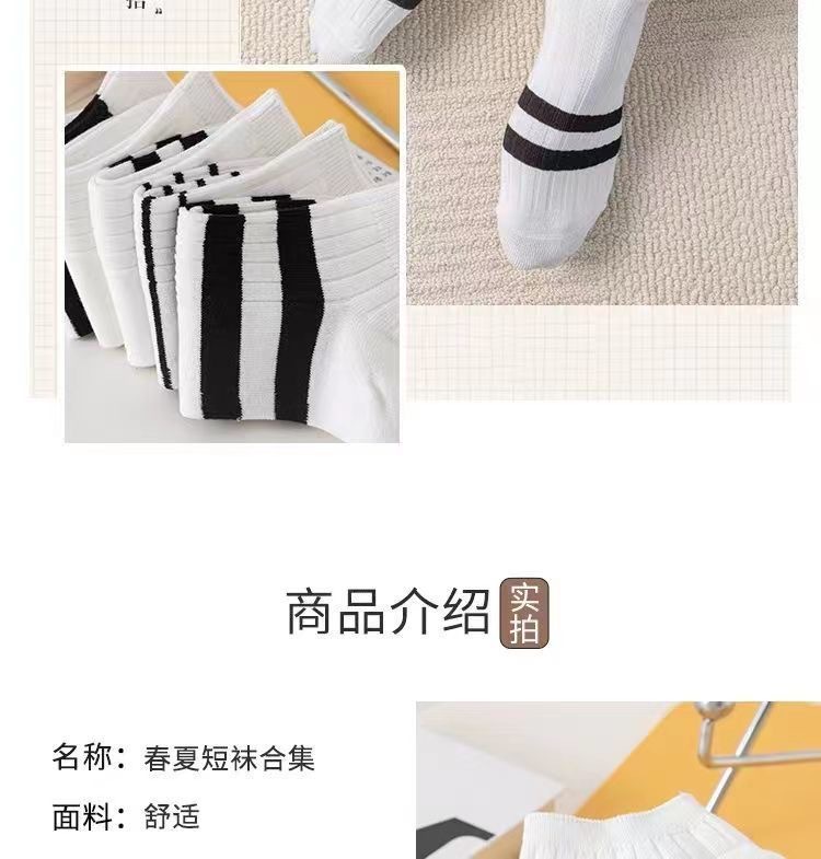 新款袜子男简约白色条纹薄款船袜百搭浅口春夏季透气吸汗诸暨袜子