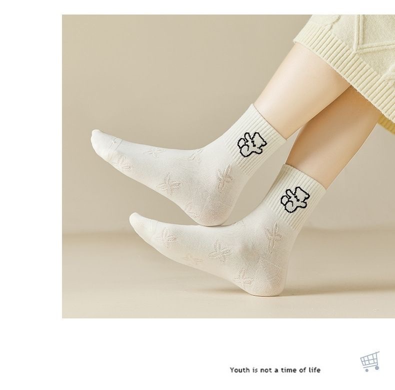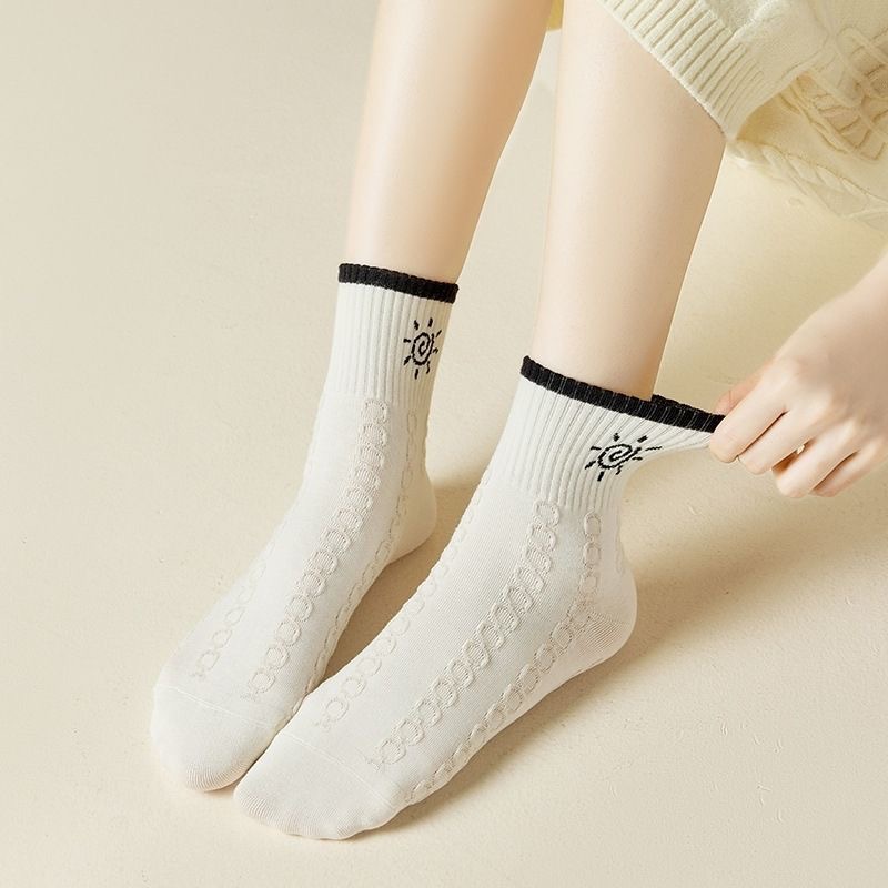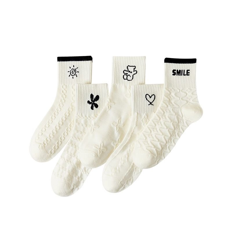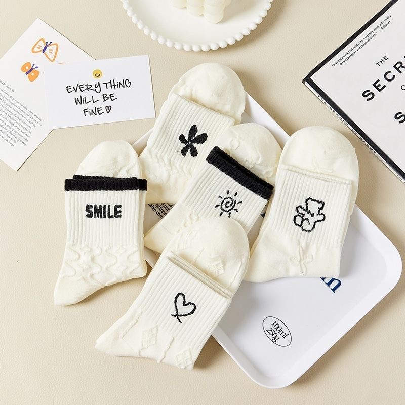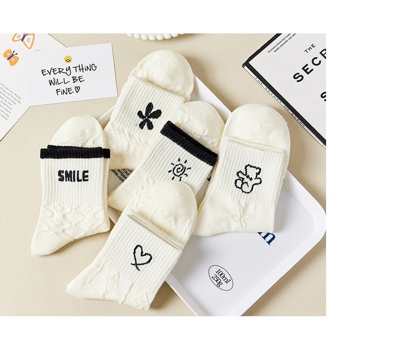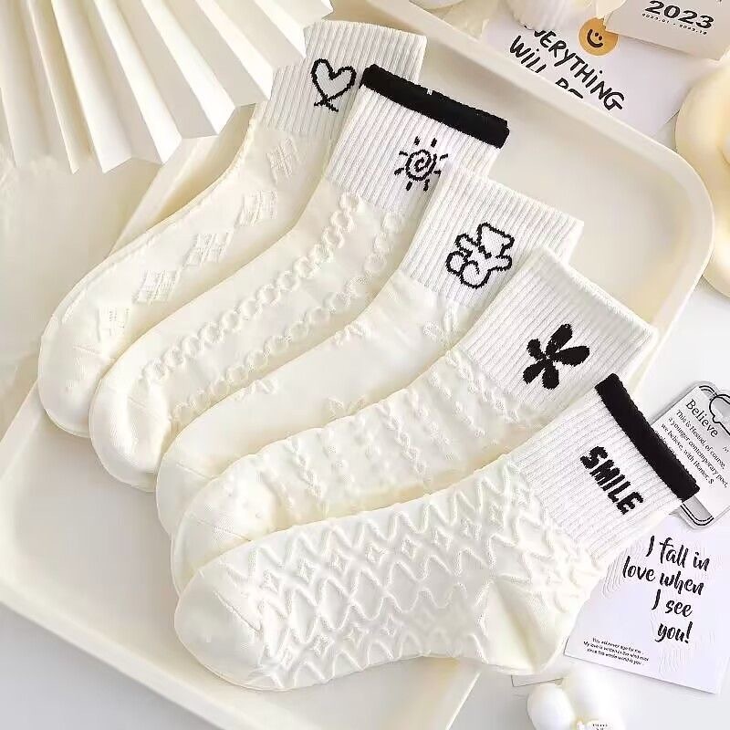 白色袜子女中筒秋冬季ins潮百搭立体浮雕提花百搭学生运动袜