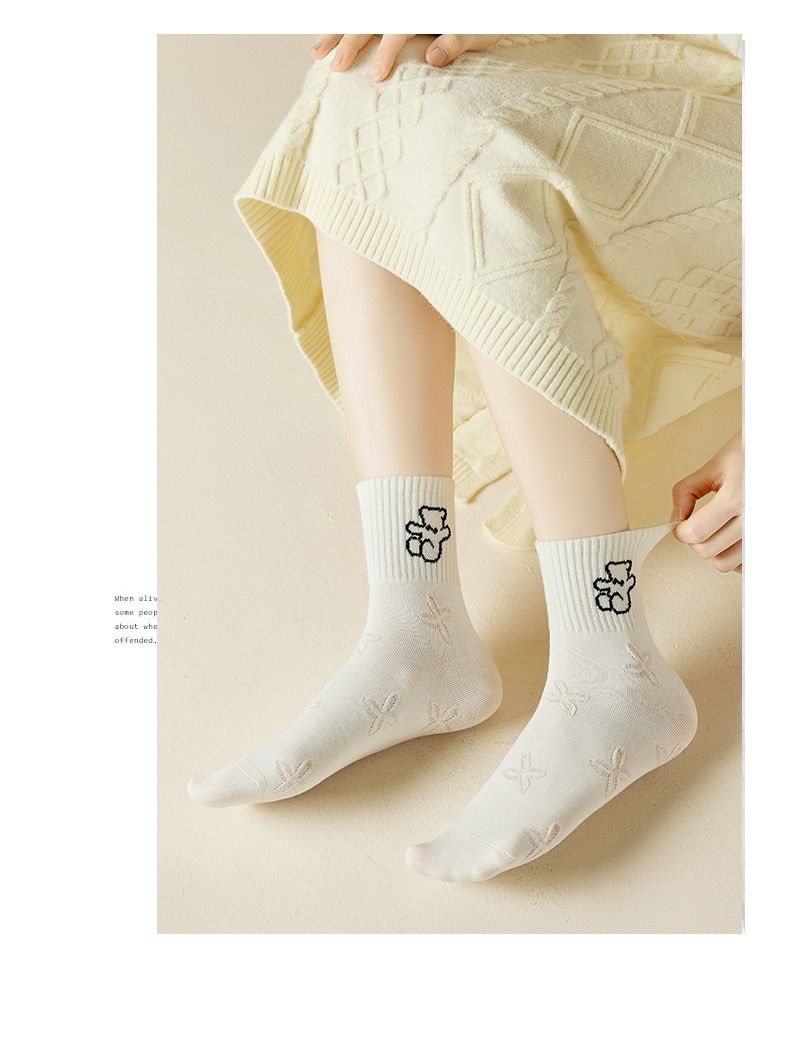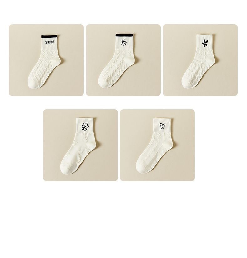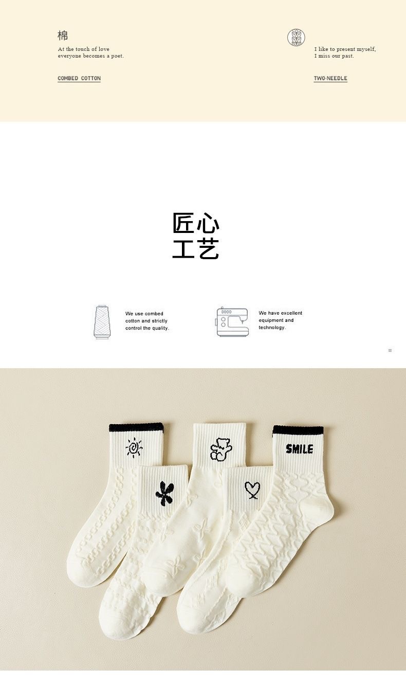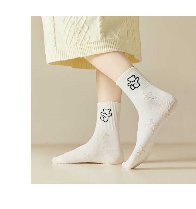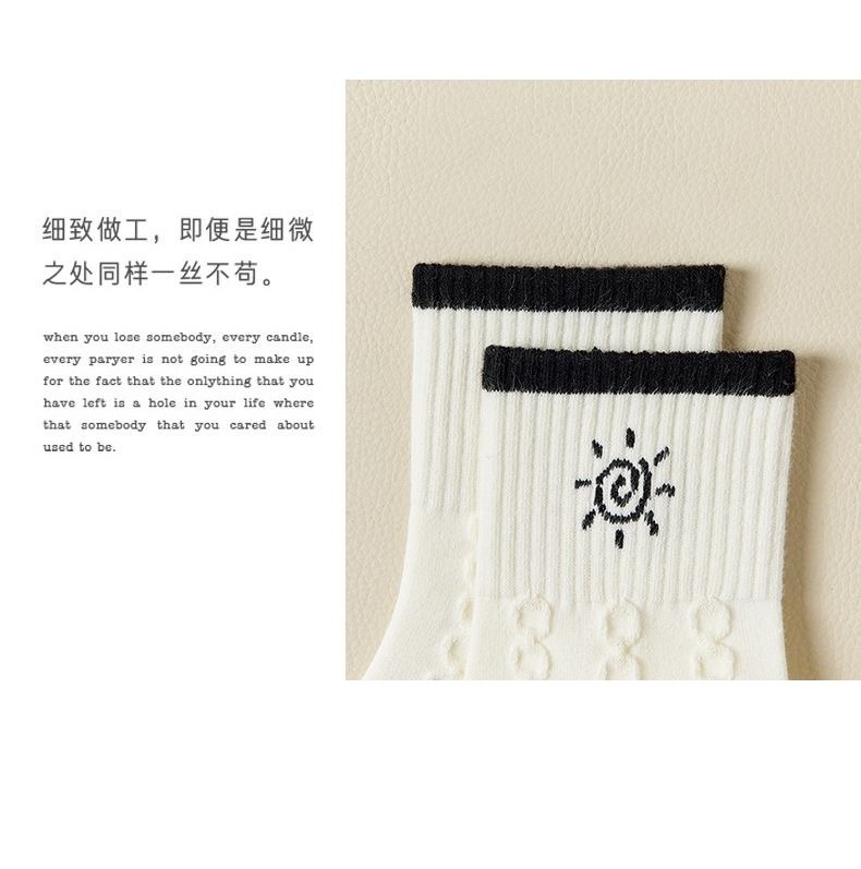白色袜子女中筒秋冬季ins潮百搭立体浮雕提花百搭学生运动袜