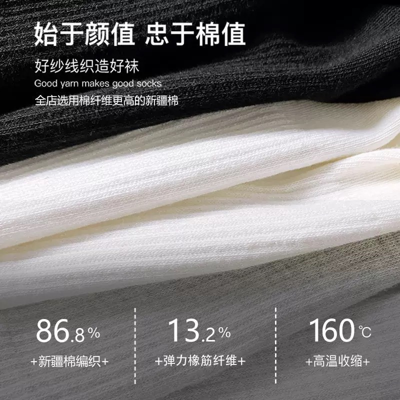 中筒袜秋季白色运动短袜吸汗防臭长筒男袜纯色棉袜秋季男袜诸暨
