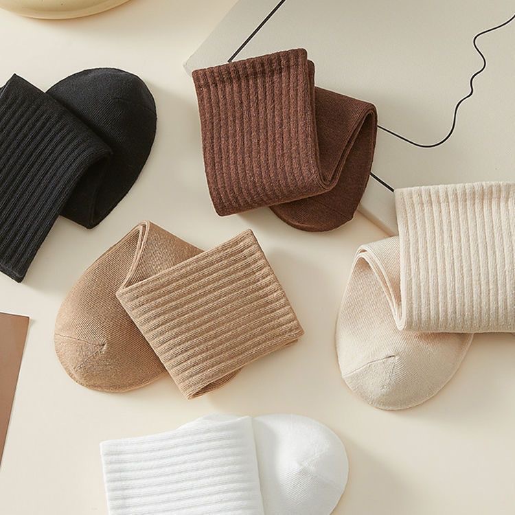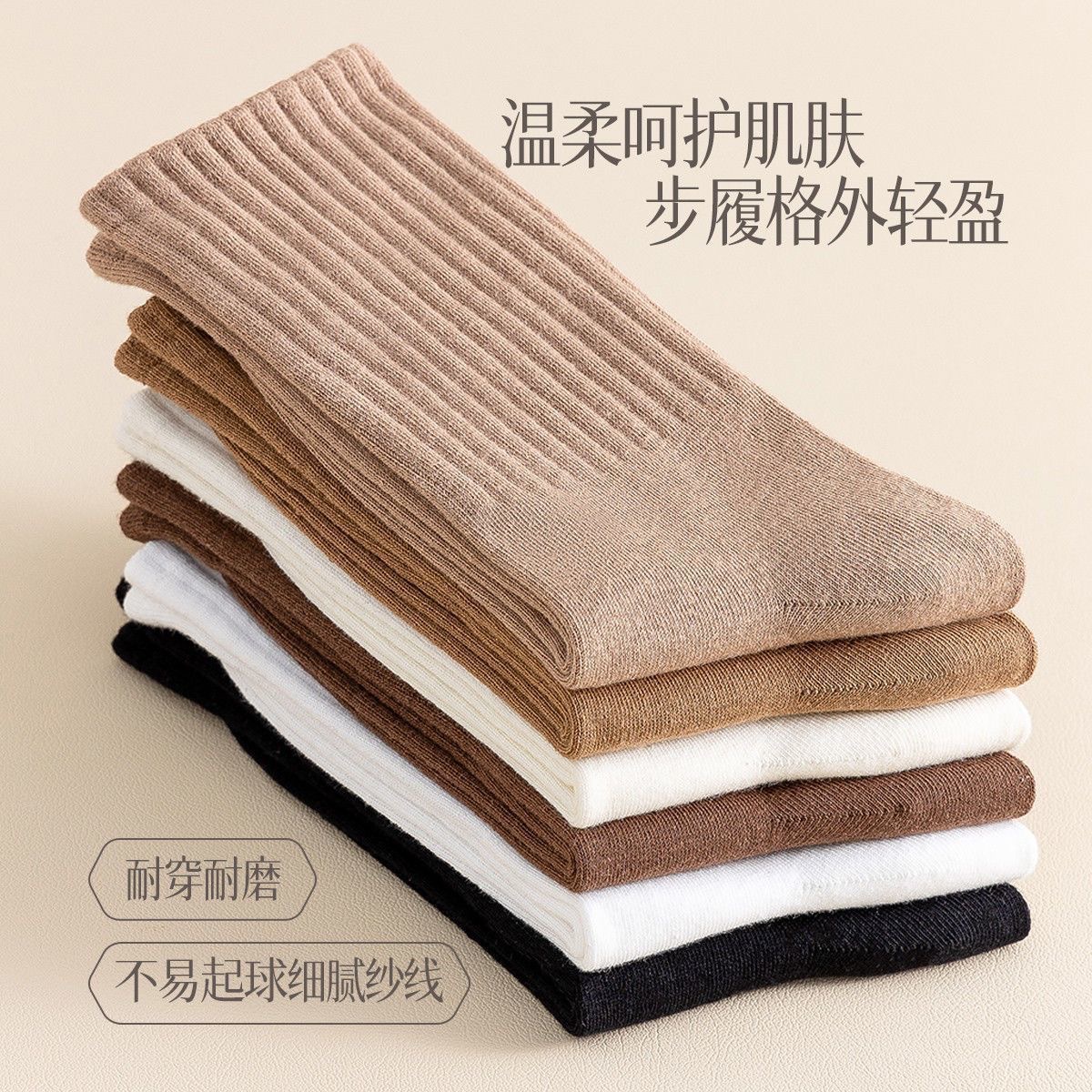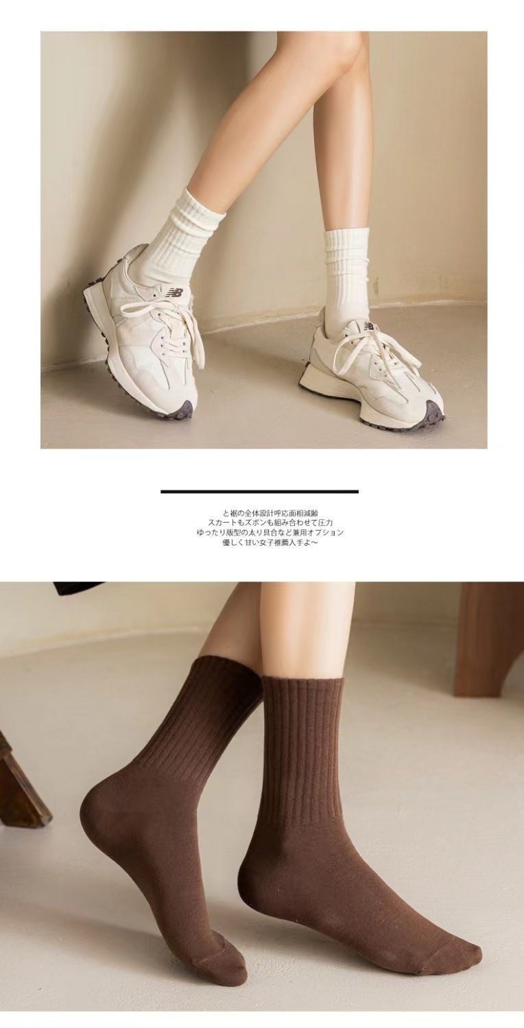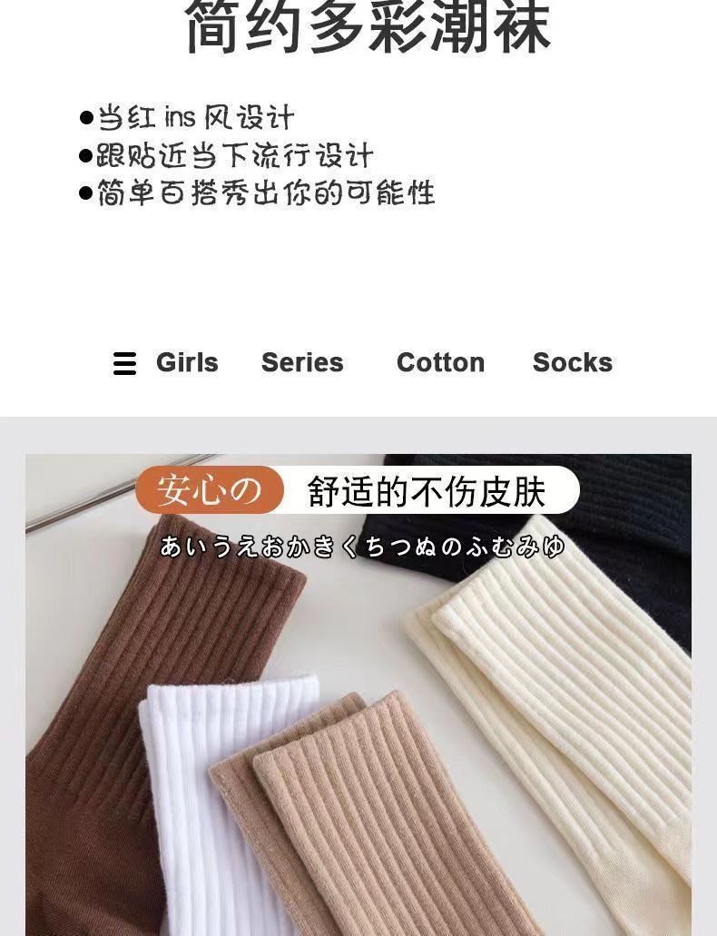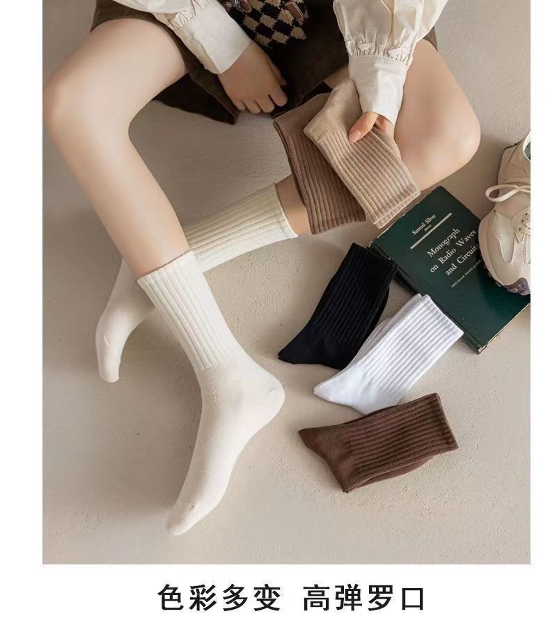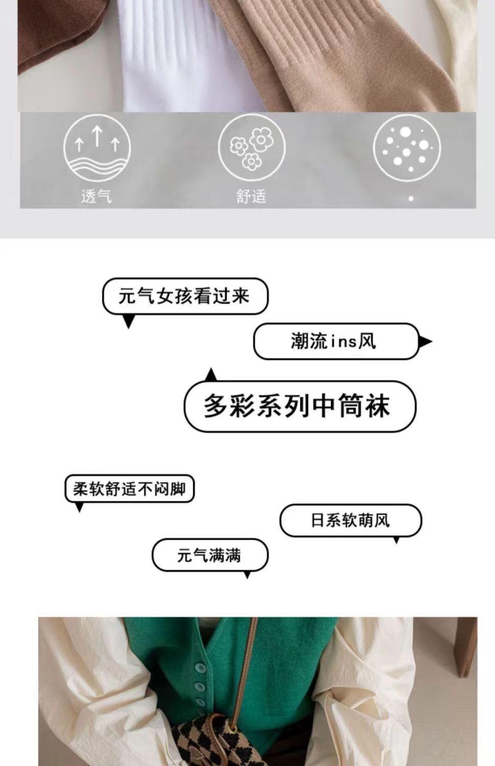 诸暨袜子女款秋冬季日系ins百搭中长筒透气运动纯色多彩元气少女