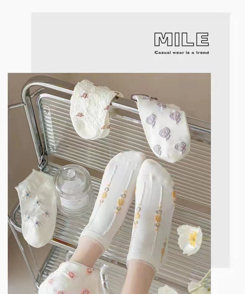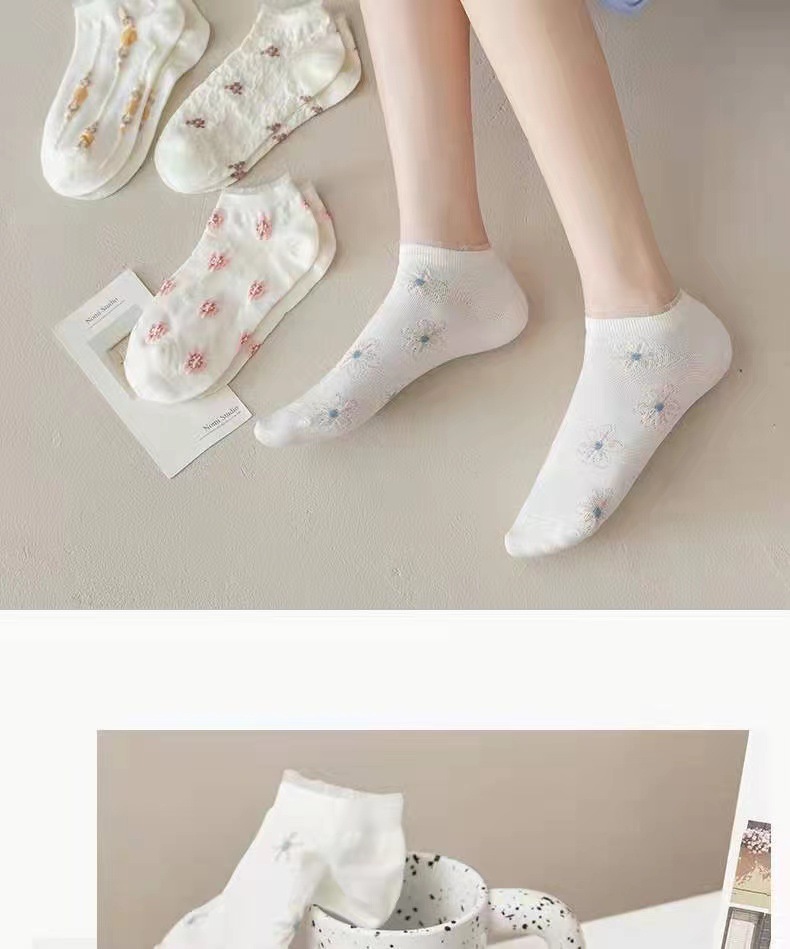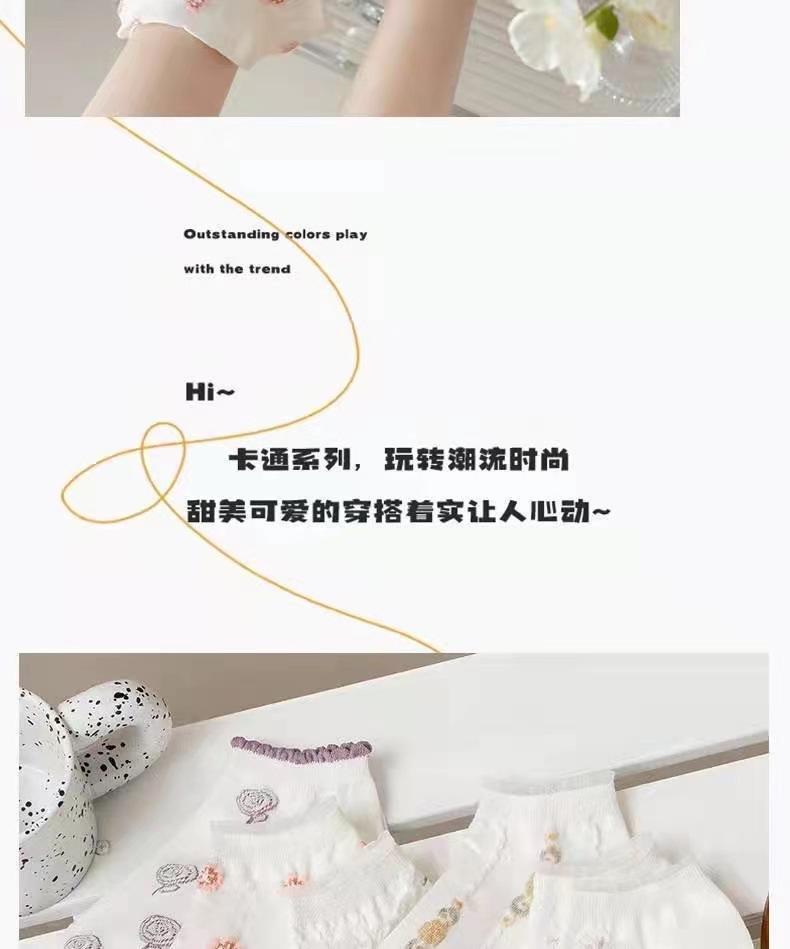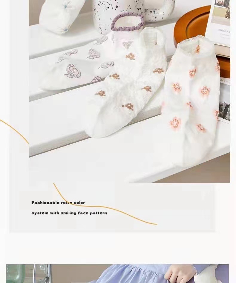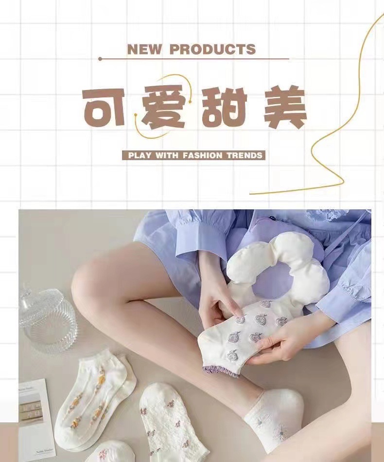 袜子女ins潮百搭春夏季花边短袜可爱日系风学生船袜白色袜子批发