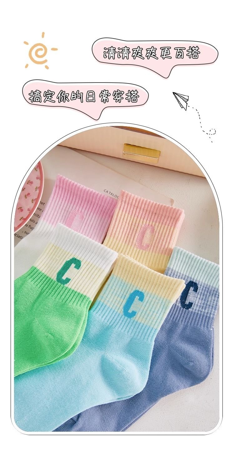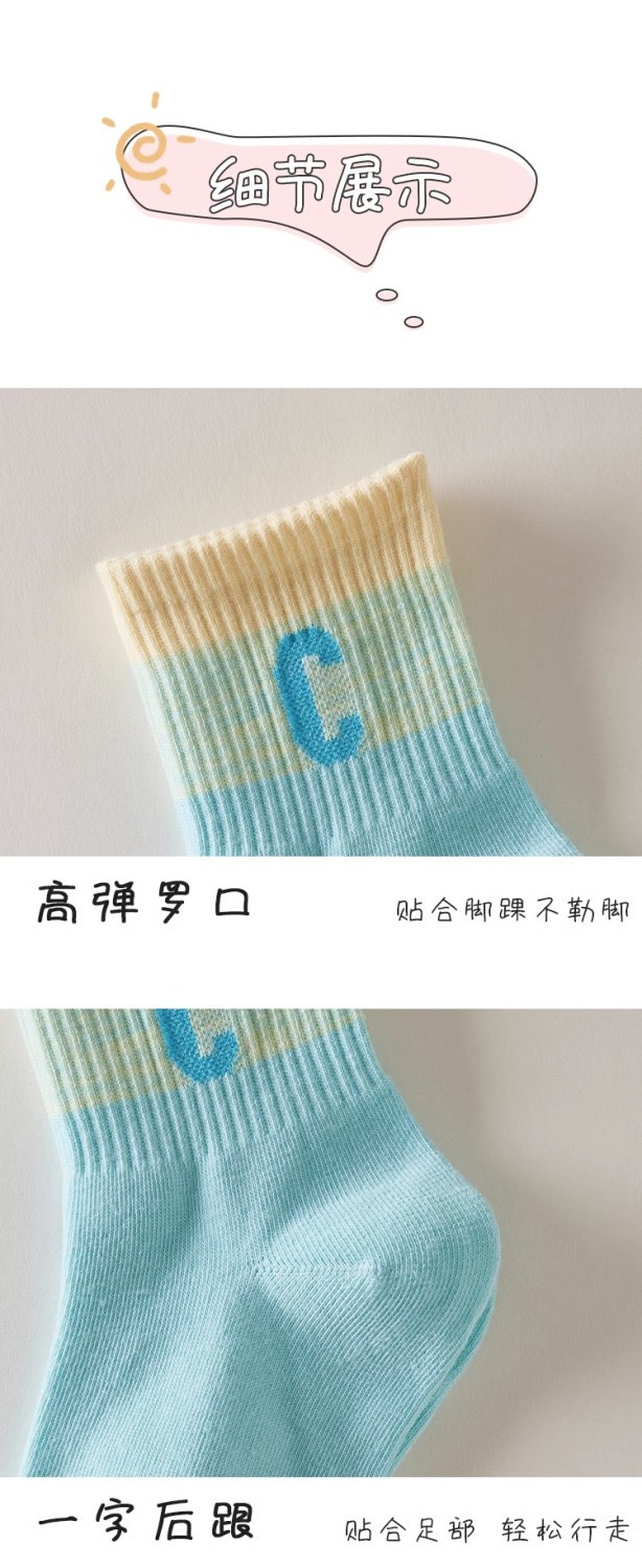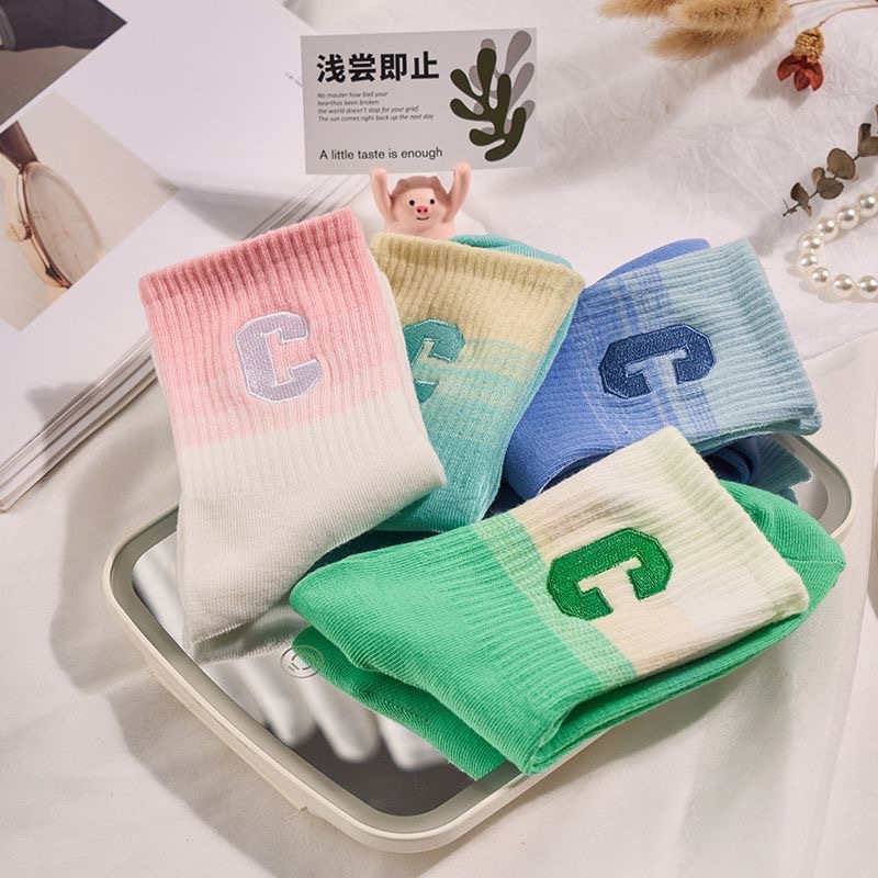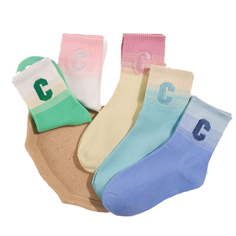 袜子女中筒袜ins潮日系春秋运动袜渐变色吸汗透气长筒袜韩版简约