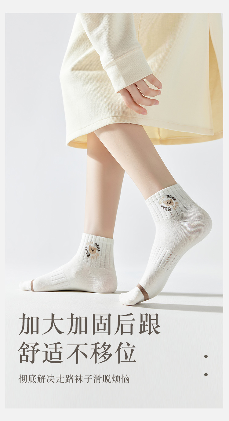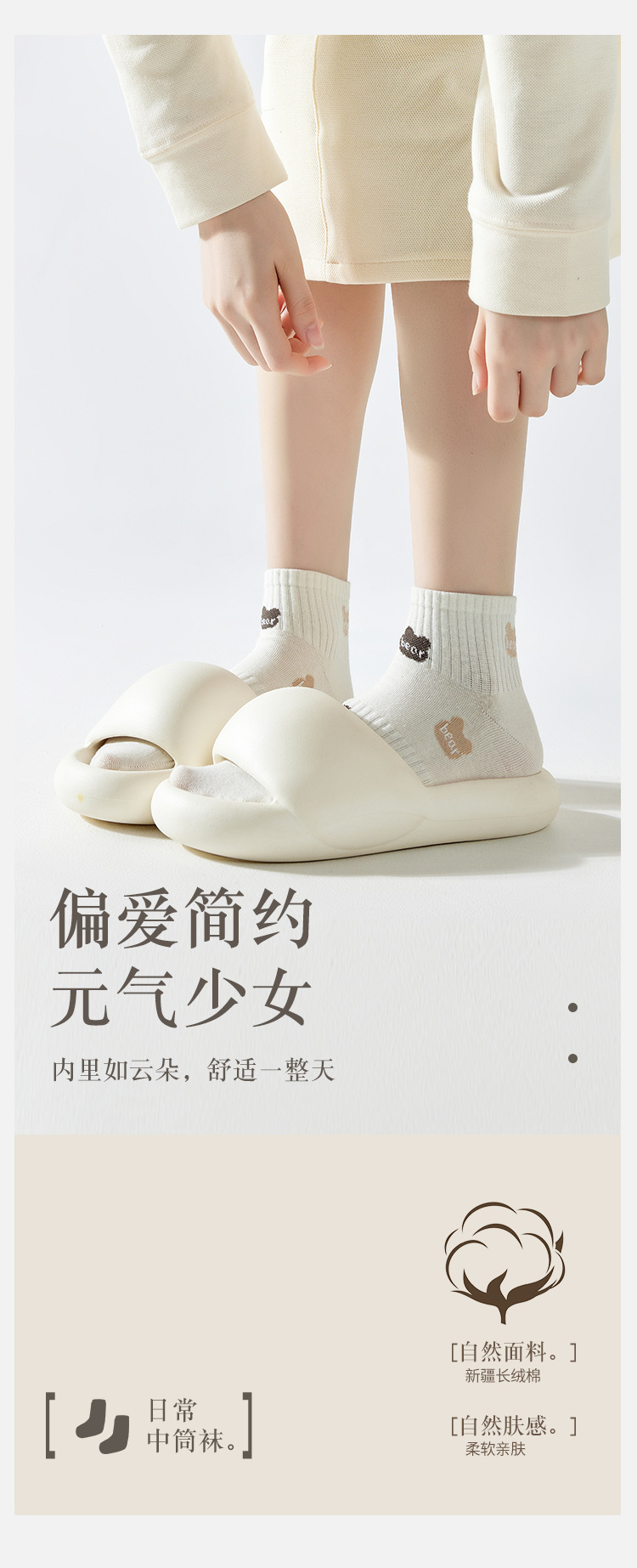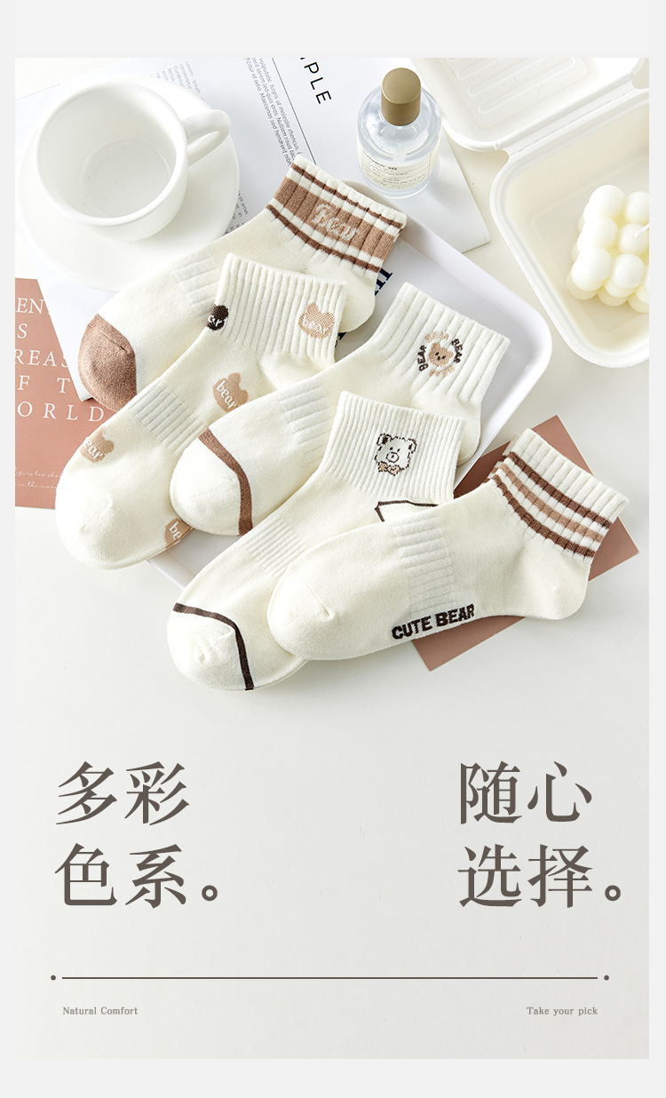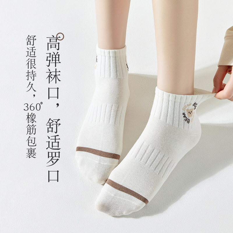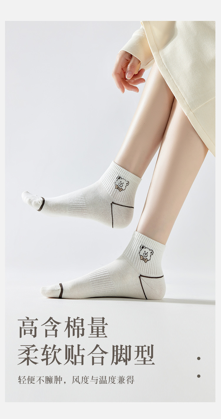 女士夏季薄款短袜日系小清新学生袜子舒适透气短筒袜可爱小熊袜子