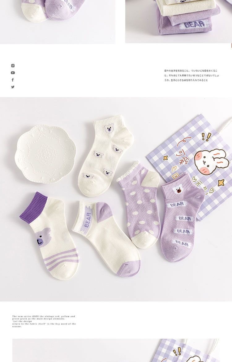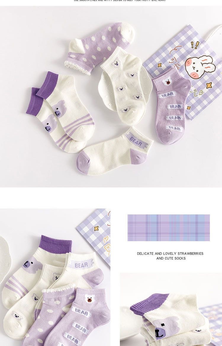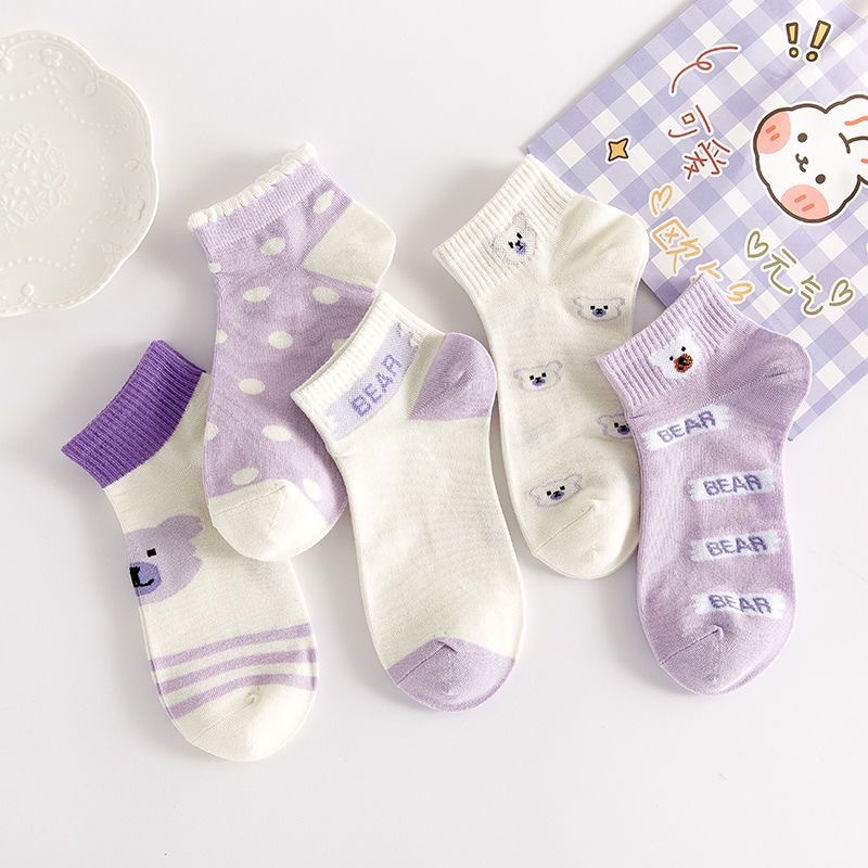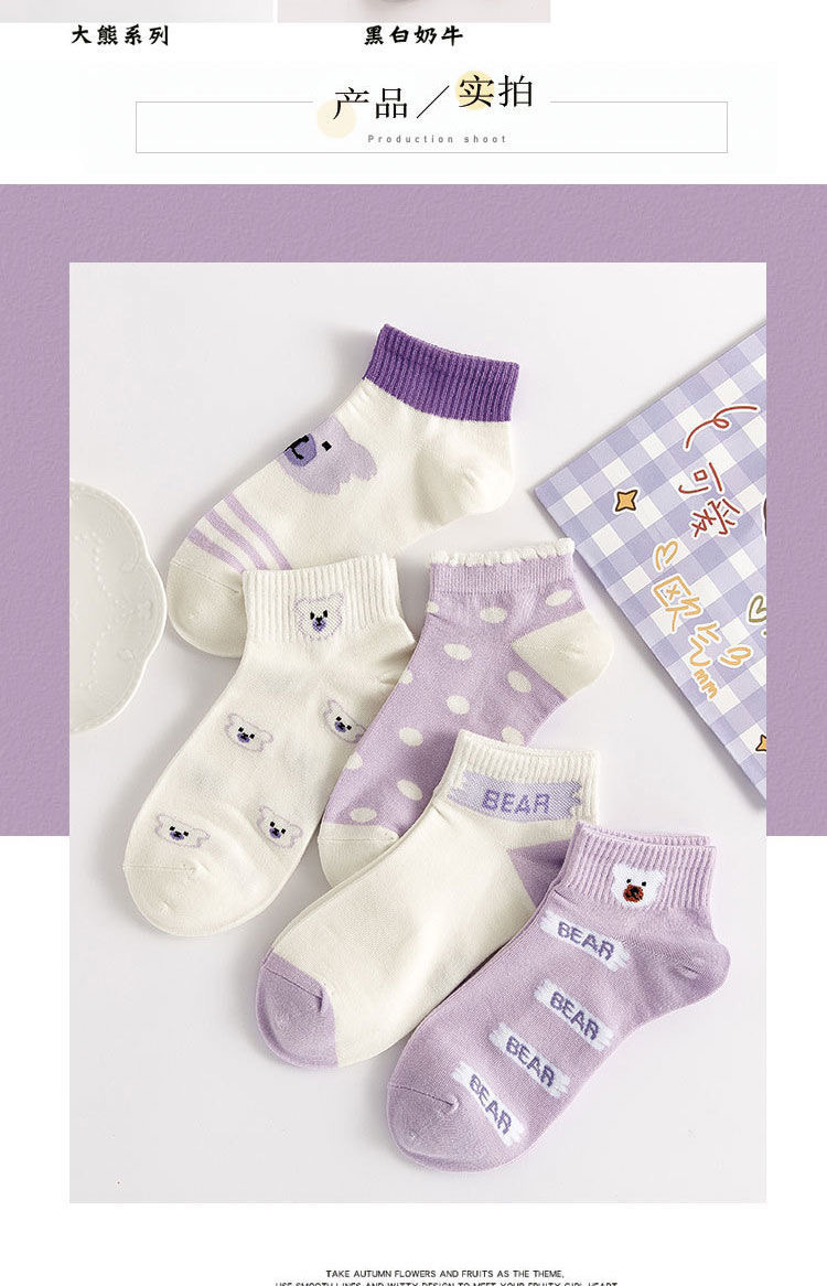 袜子女可爱百搭夏季紫色透气棉短袜学院风女生运动船袜ins潮