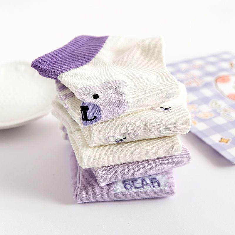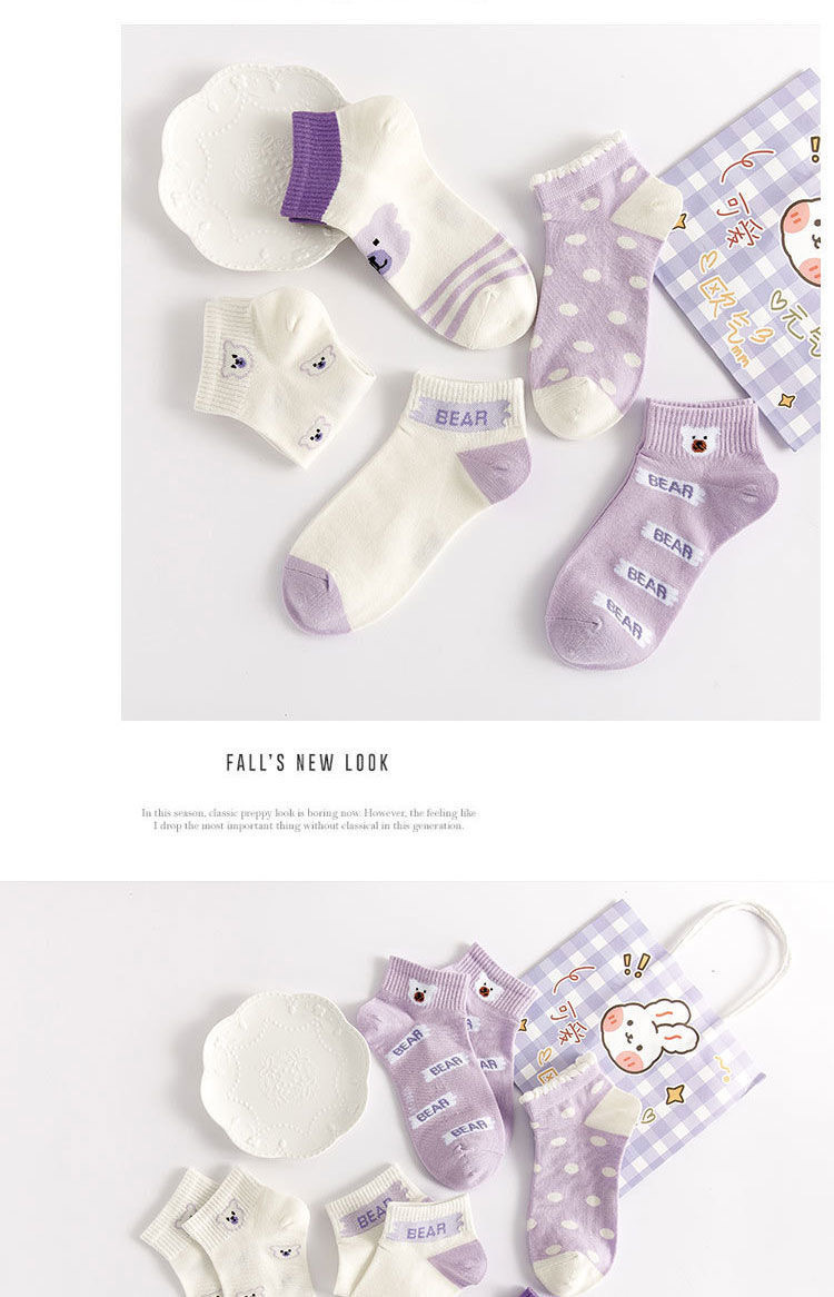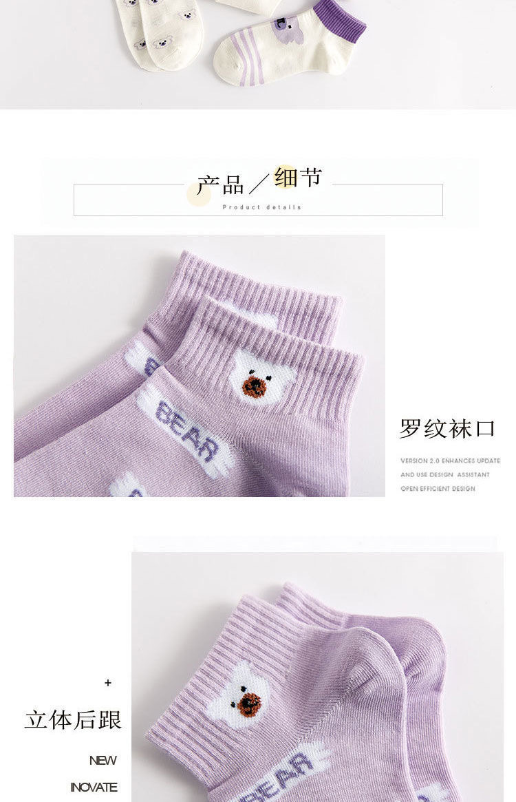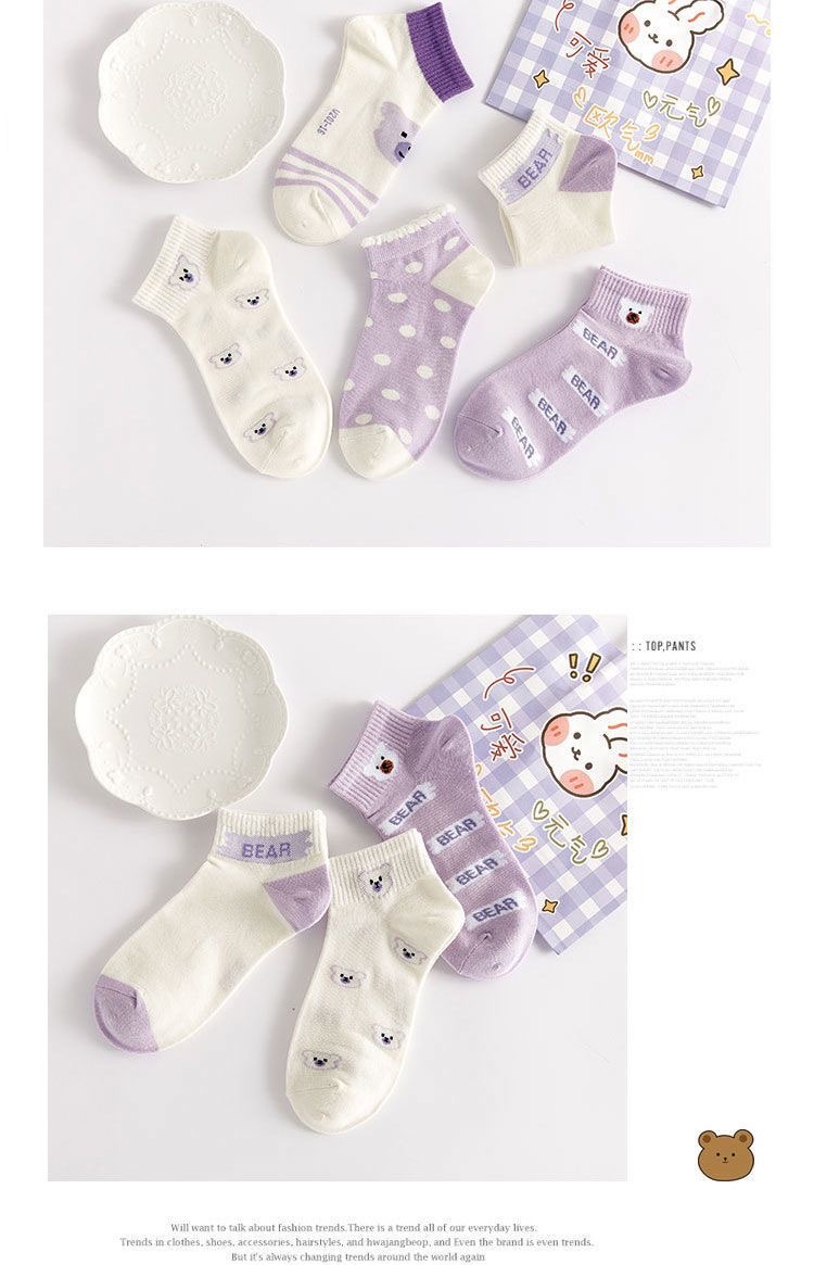 袜子女可爱百搭夏季紫色透气棉短袜学院风女生运动船袜ins潮
