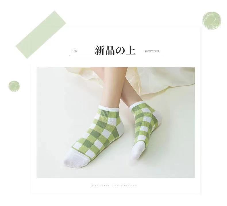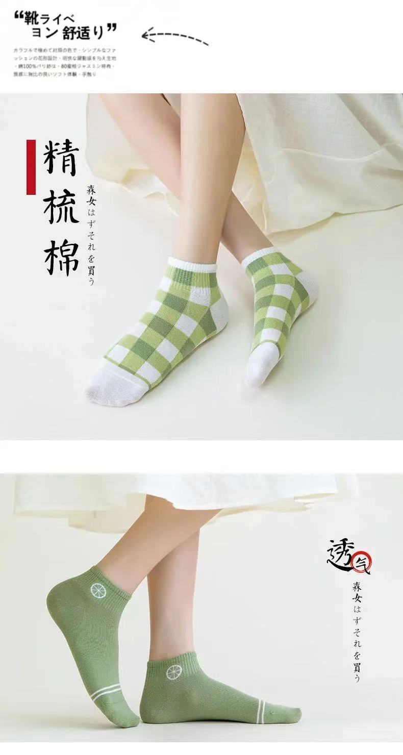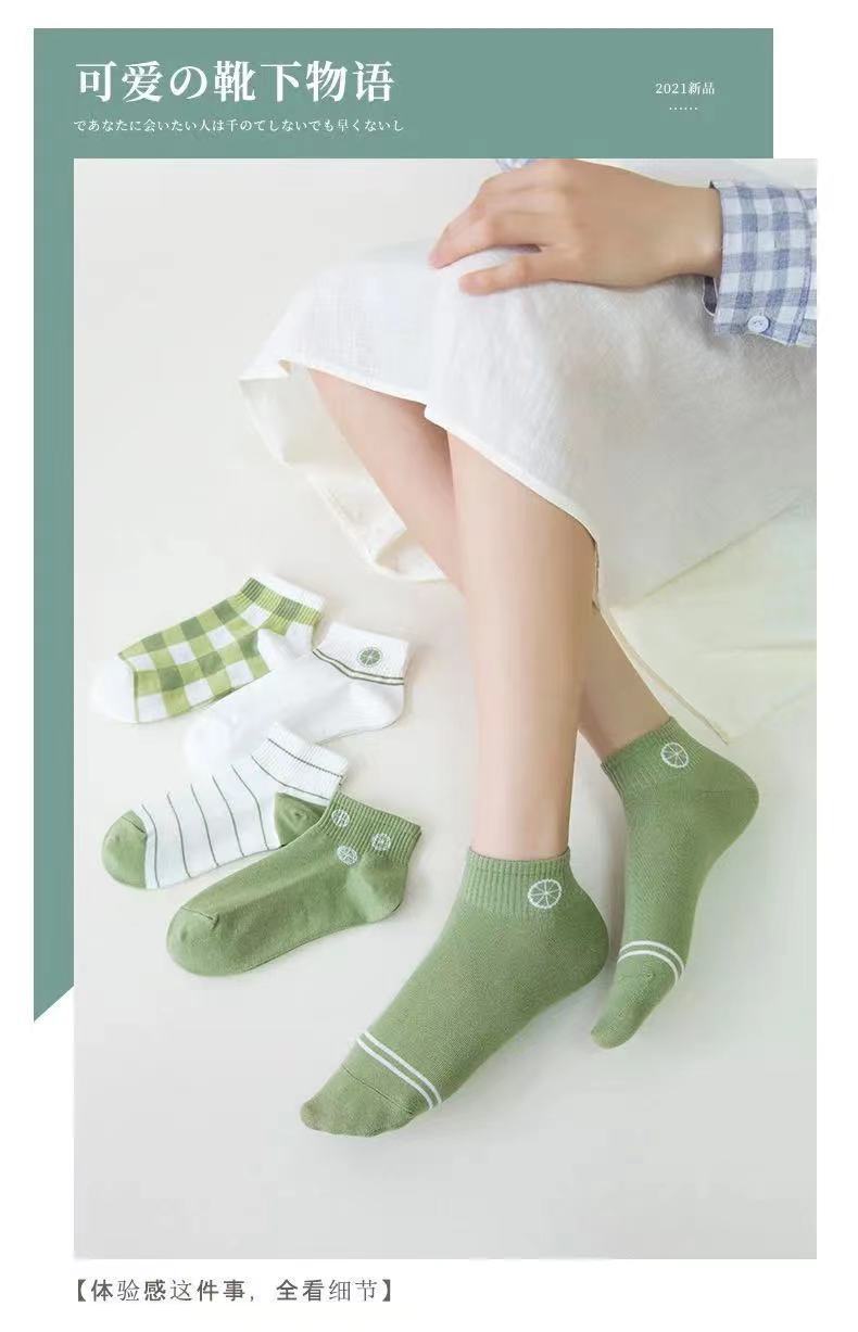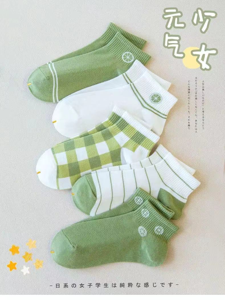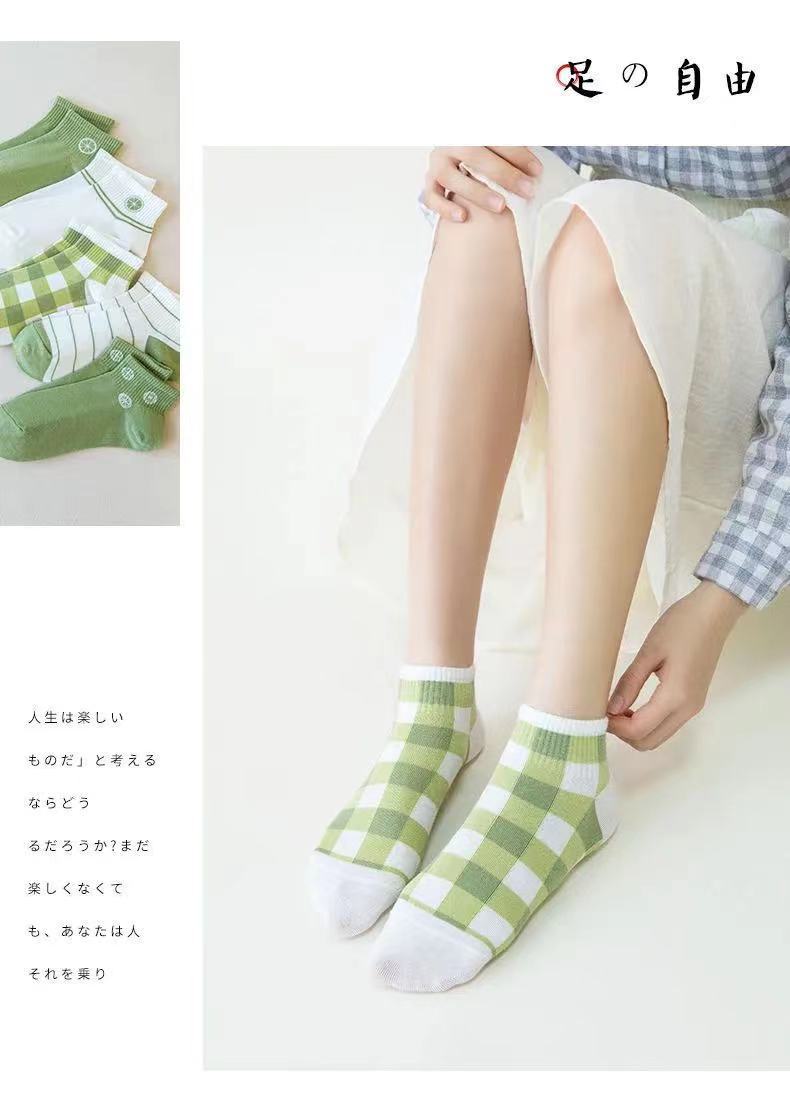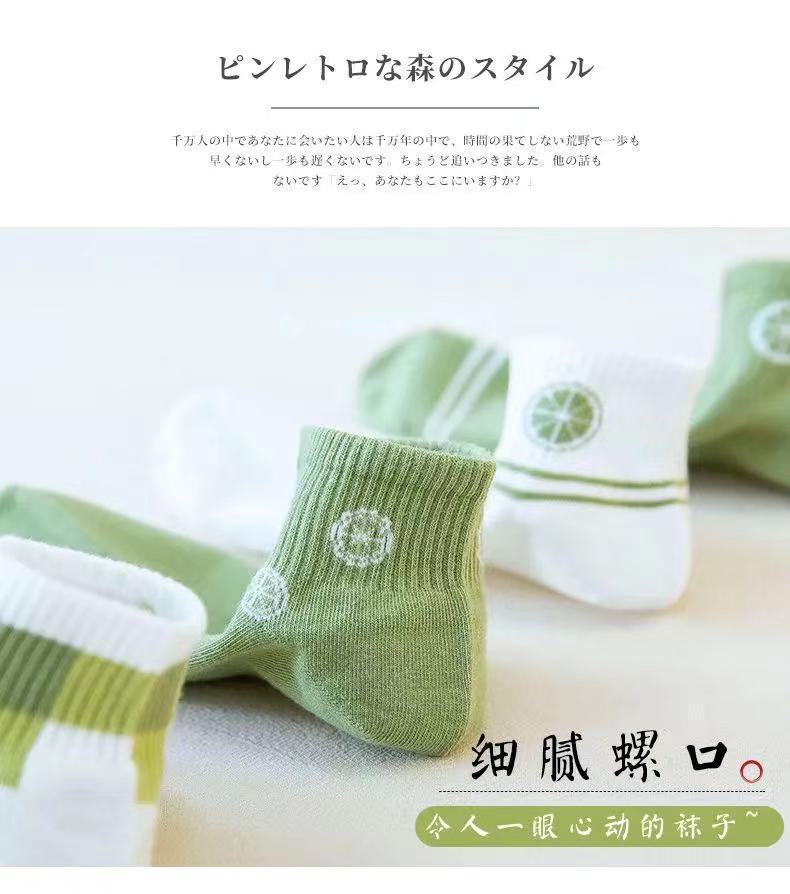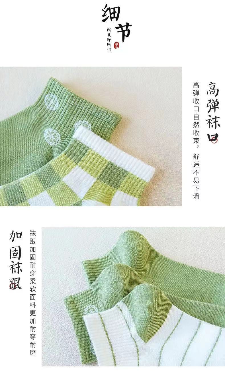 袜子女夏季绿色系短袜薄款ins潮袜可爱日系条纹百搭短袜休闲森系