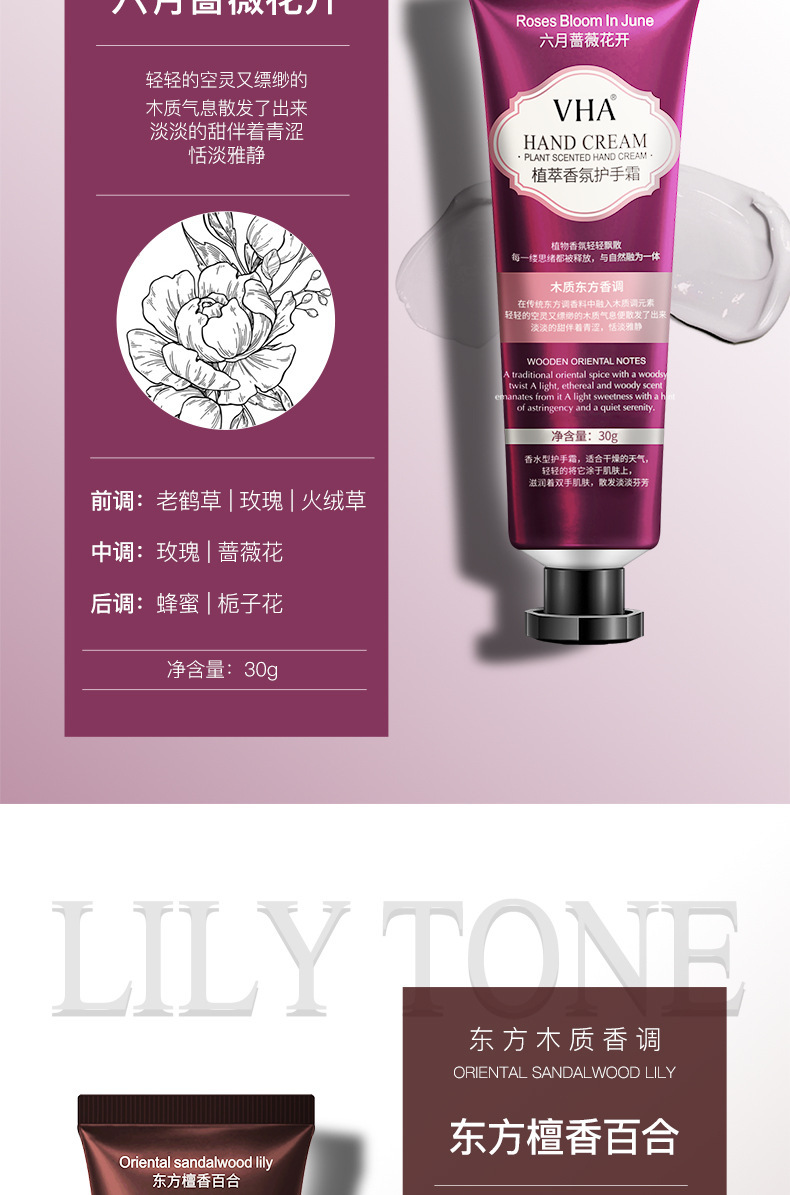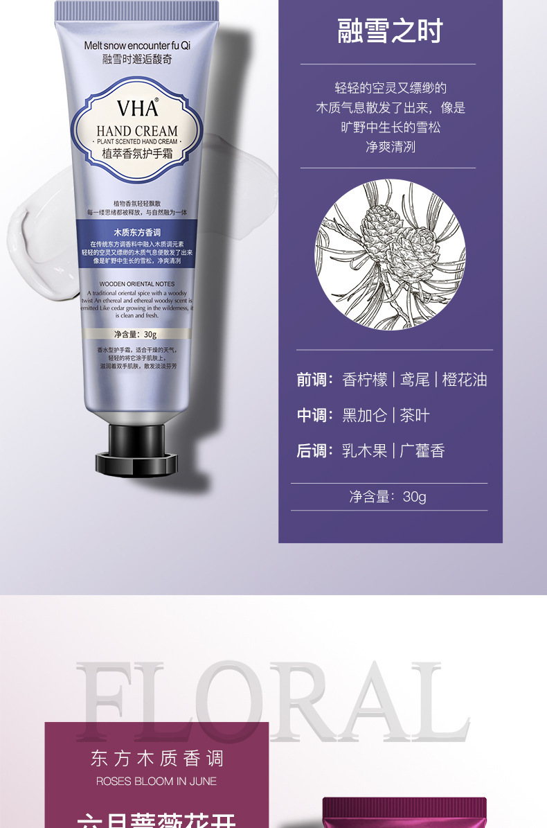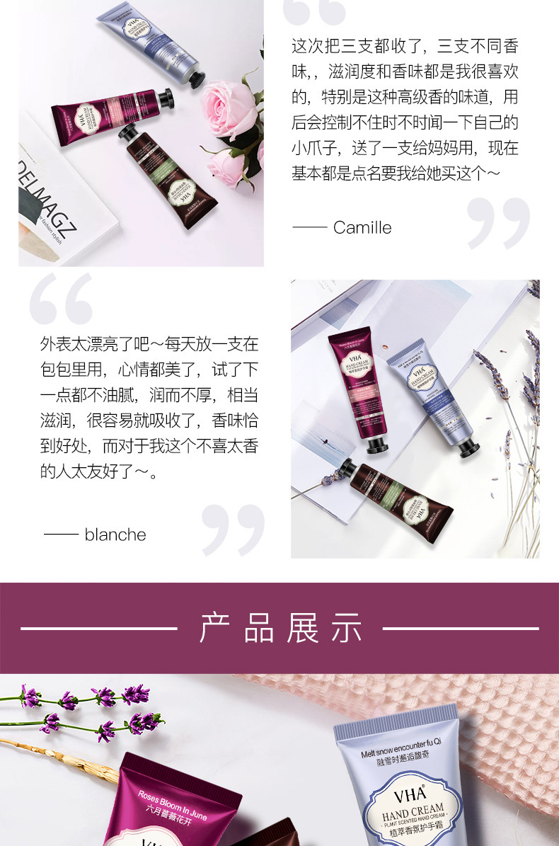VHA植物香氛护手霜补水呵护滋润保湿改善暗沉细腻柔滑护手霜批发