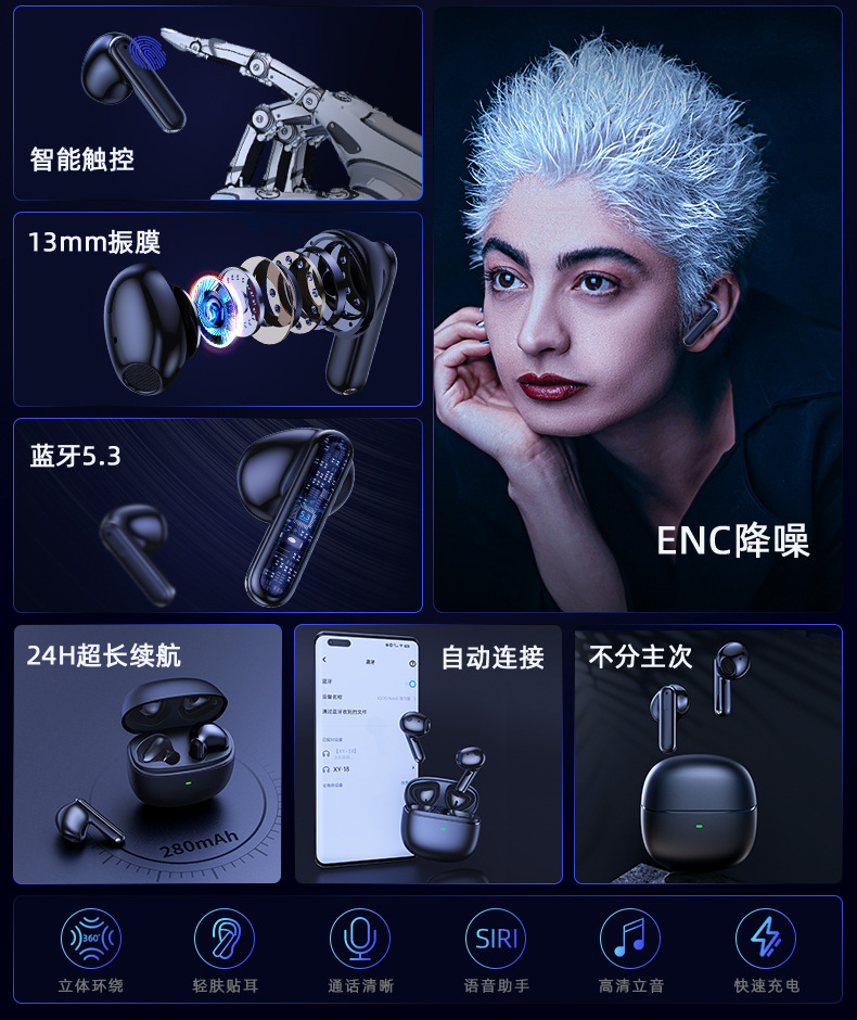 跨境新款私模ENC降噪无线蓝牙耳机TWS高音质长续航入耳式耳机