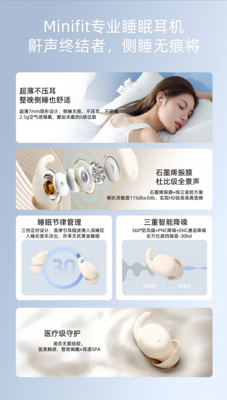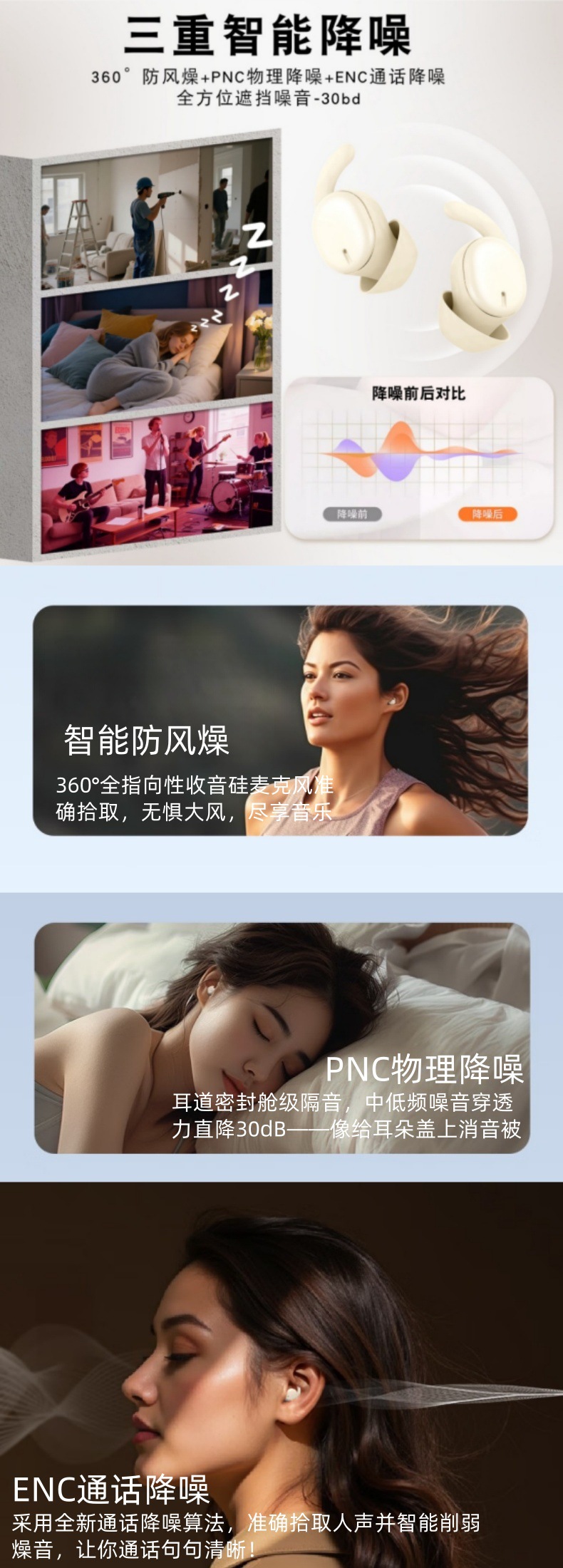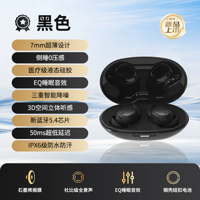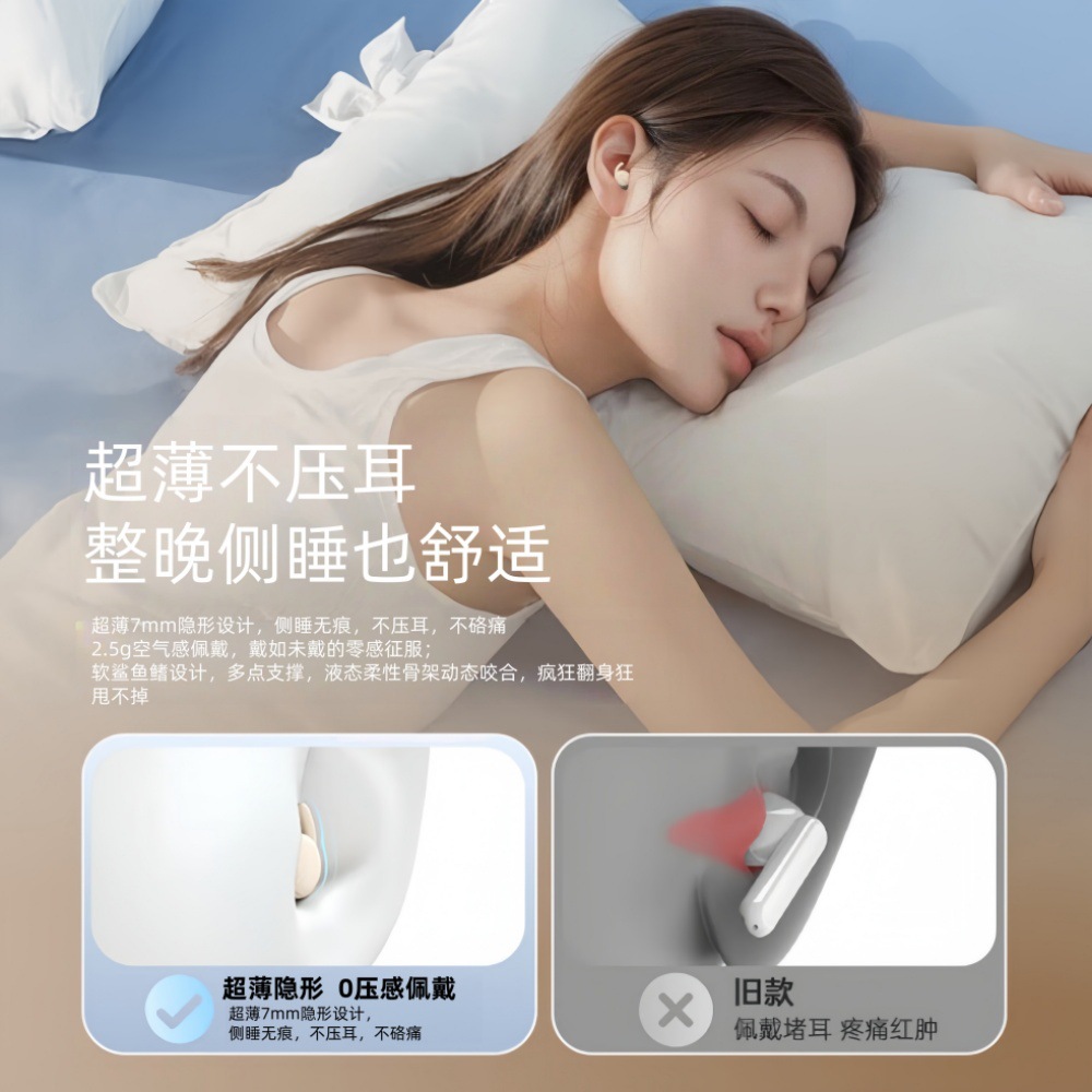 超薄无线睡眠耳机侧睡不压耳华强北防水运动耳机降噪蓝牙睡眠耳机