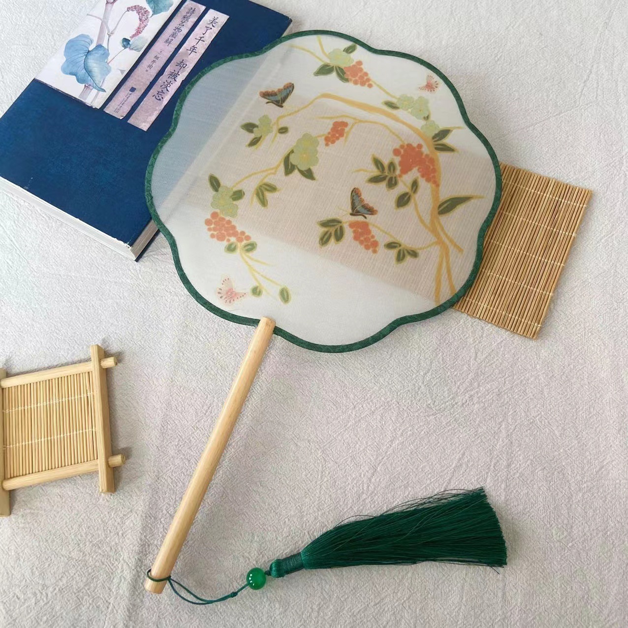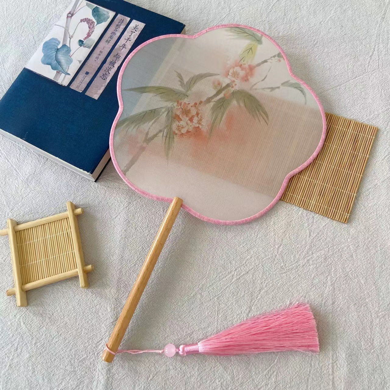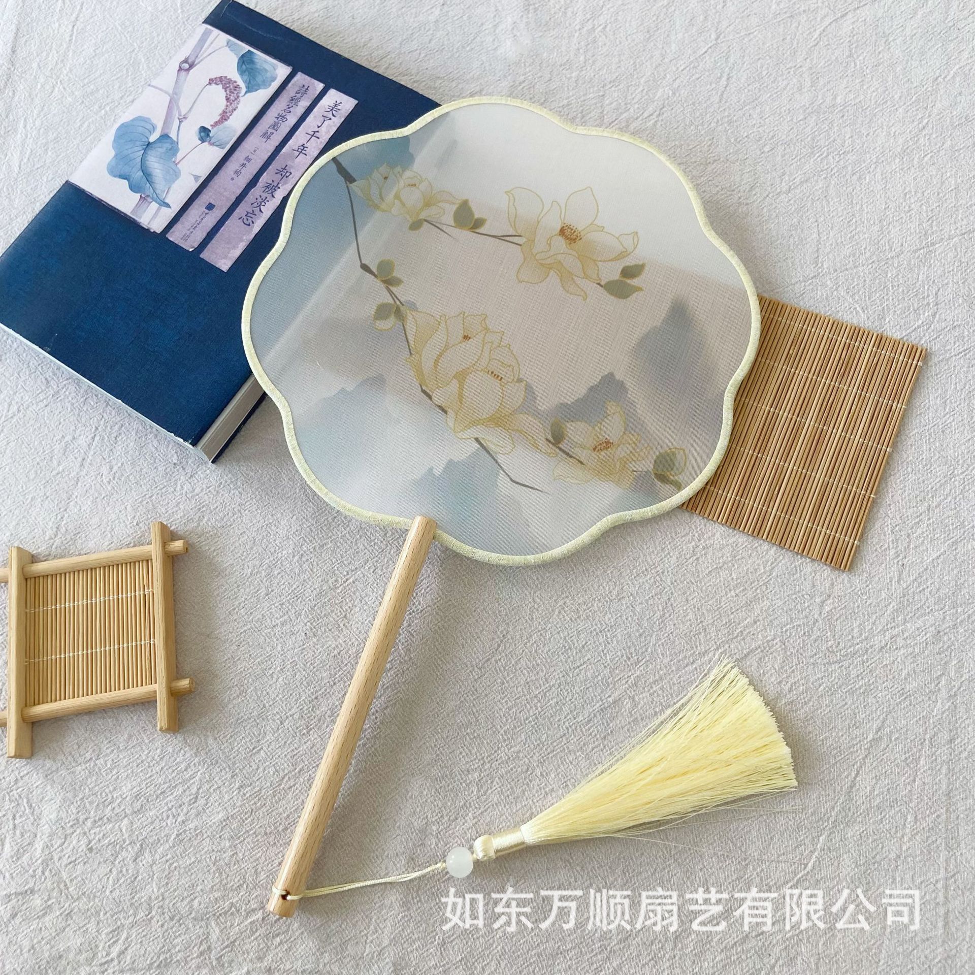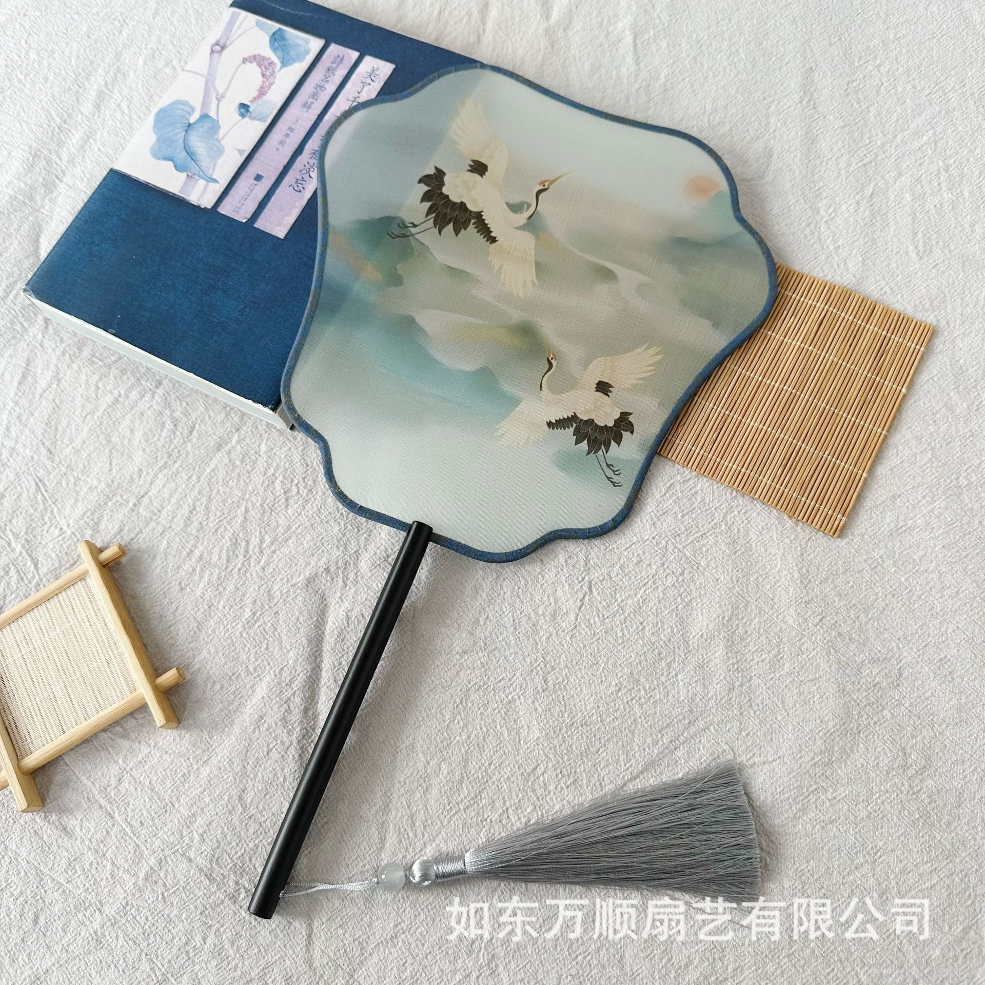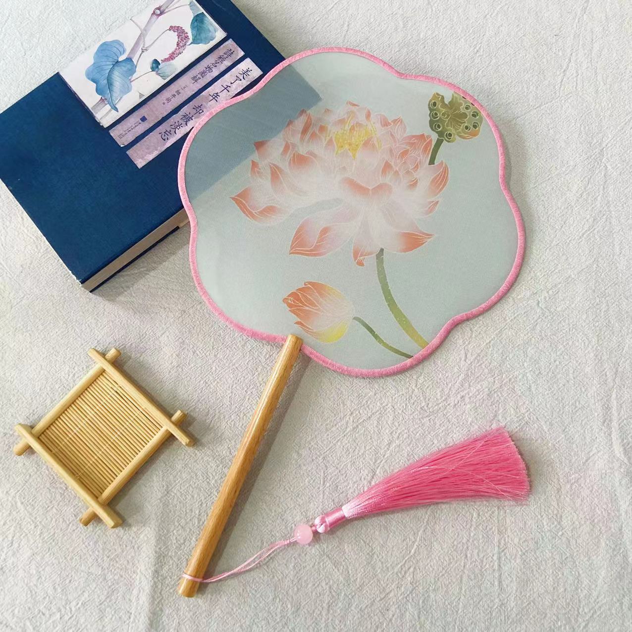 扇子古风半透明长柄团扇汉服古装舞蹈扇超仙中国风礼品异形广告扇