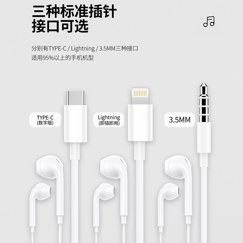1.2m适用3.5mm 苹果type-c口即插即用有线音乐耳机听歌通话重低音