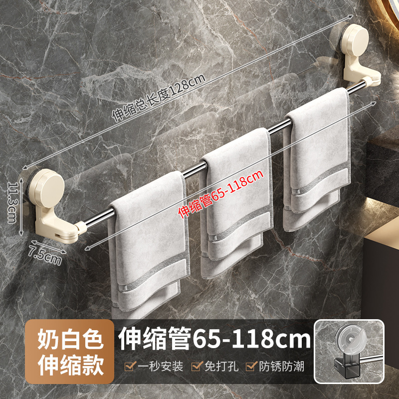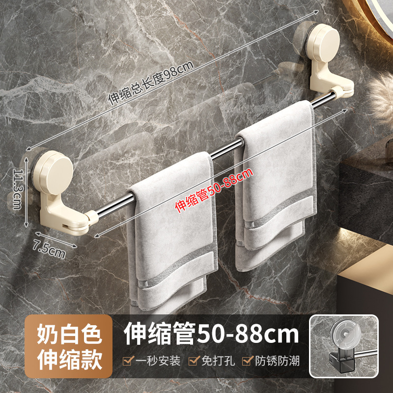 吸盘可伸缩毛巾杆可旋转转角毛巾架鞋架免打孔浴室收纳架吸盘式