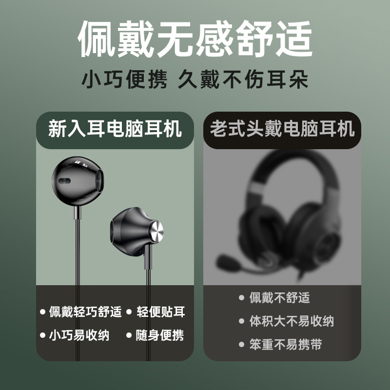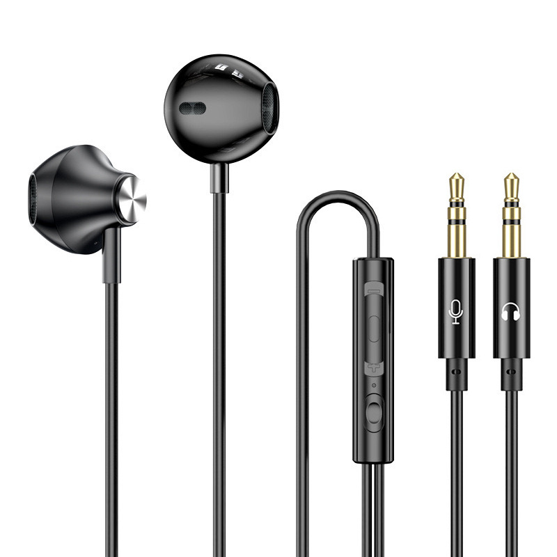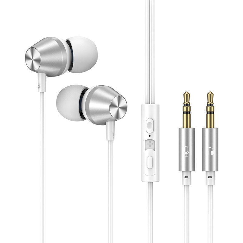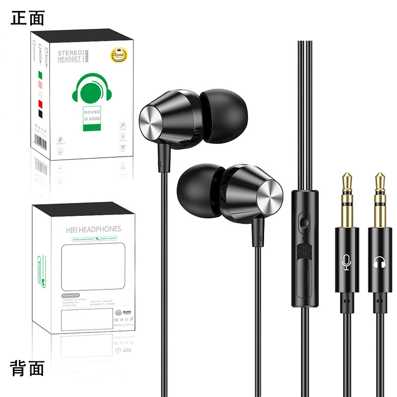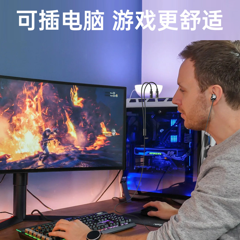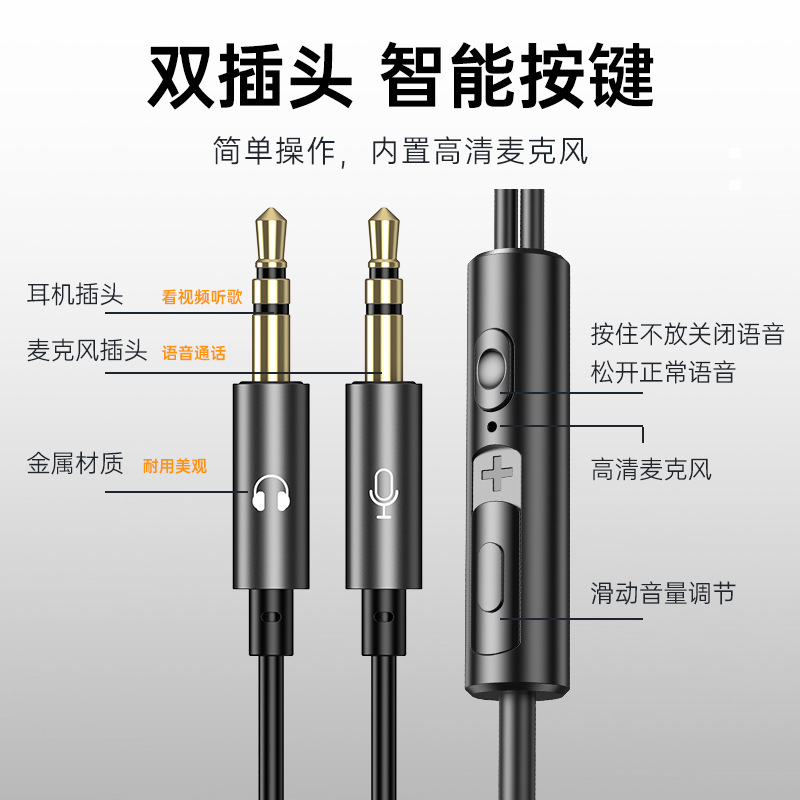 2米长线PC台式电脑专用双插头有线耳机金属半入耳式重低音耳塞耳
