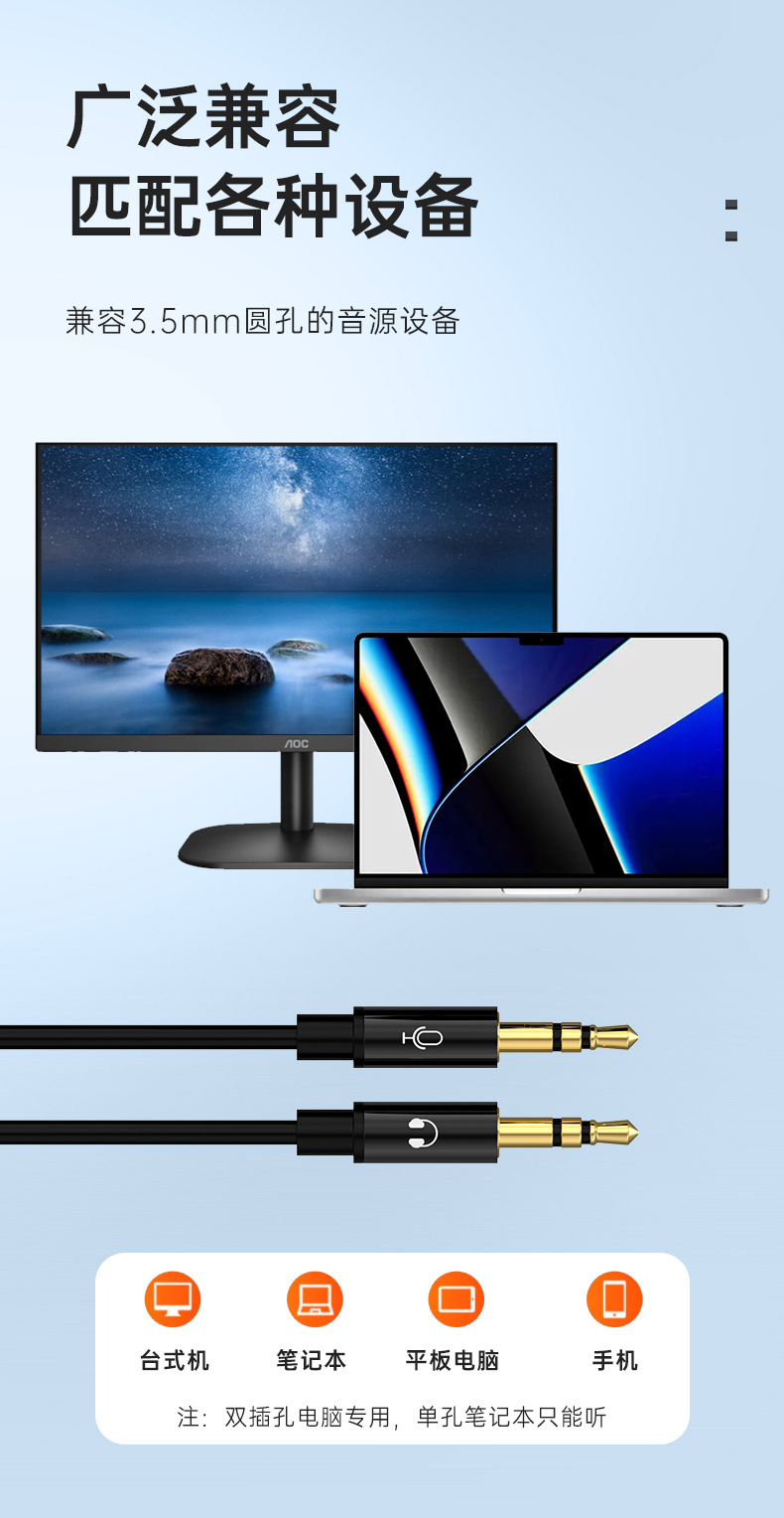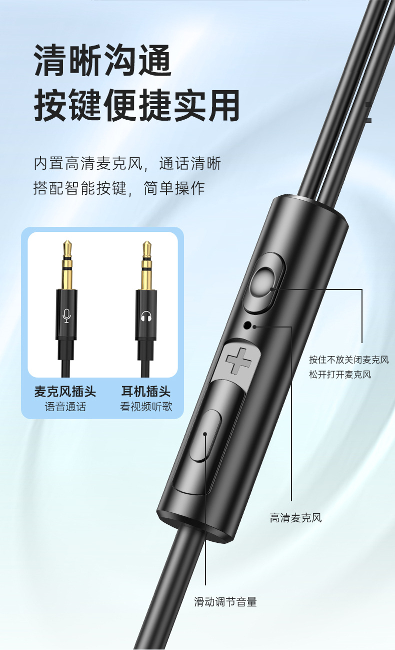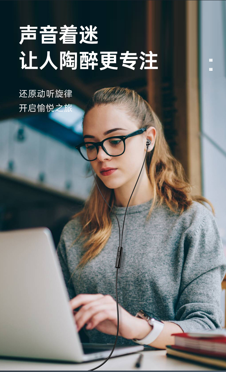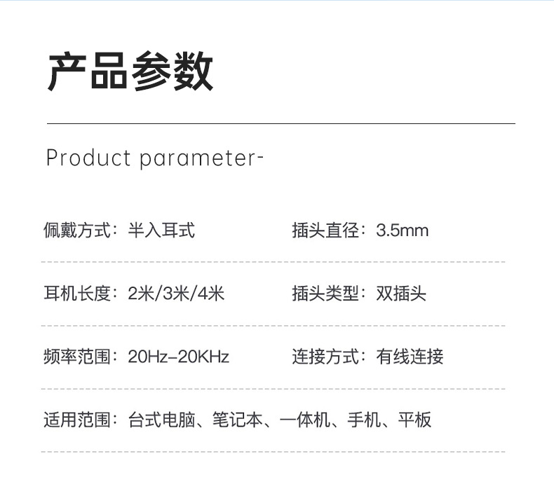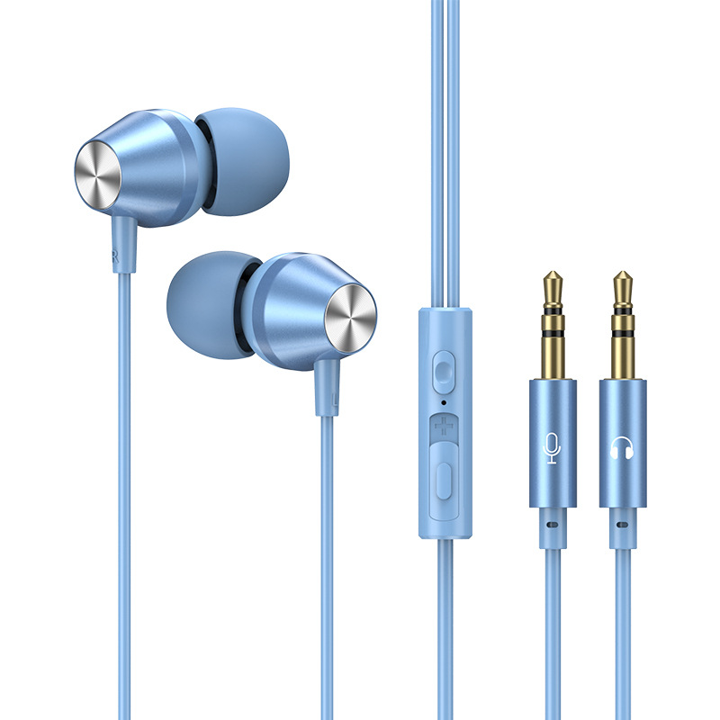 2米长线PC台式电脑专用双插头有线耳机金属半入耳式重低音耳塞耳