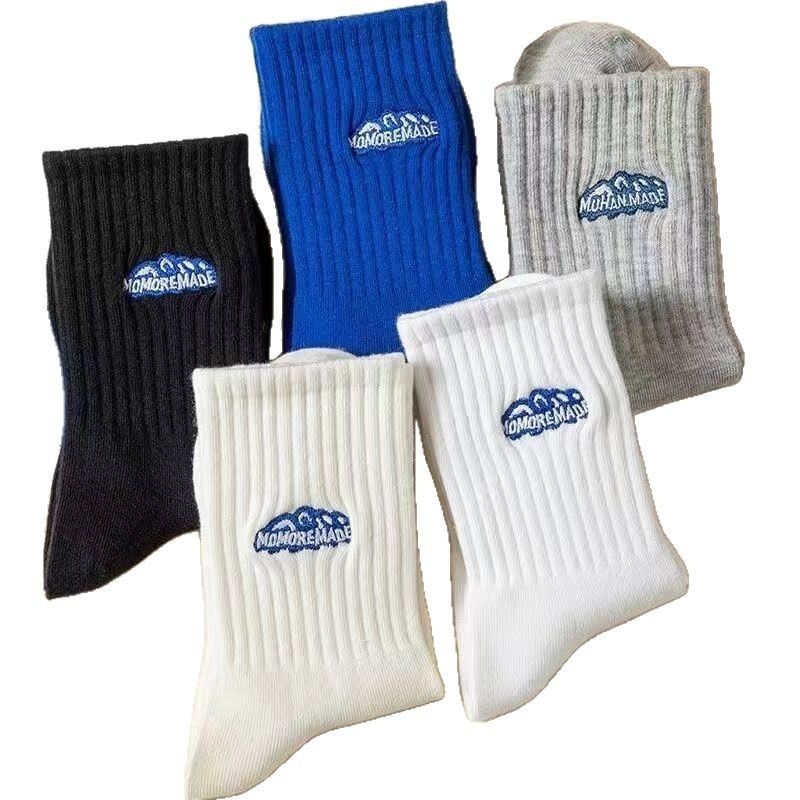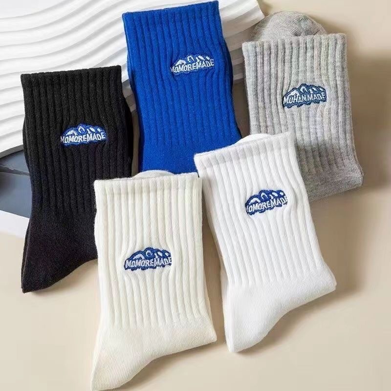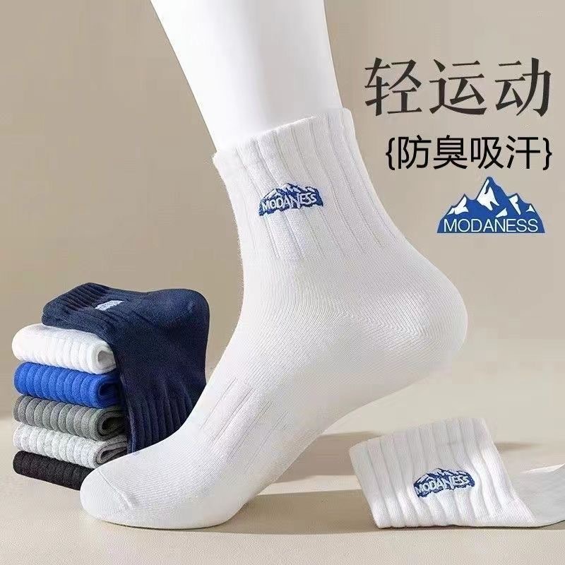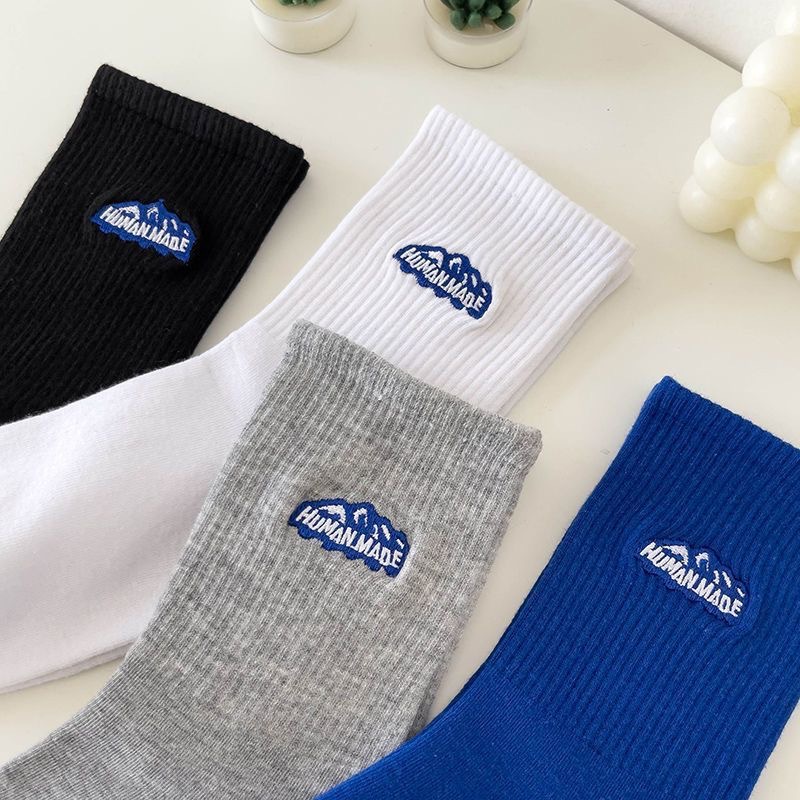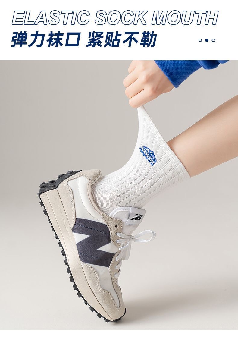 大雪山袜子吸汗男女同款中筒袜百搭提花纯色运动女士袜子批发男袜