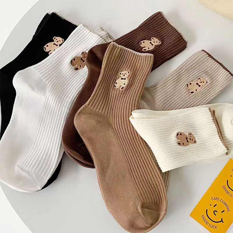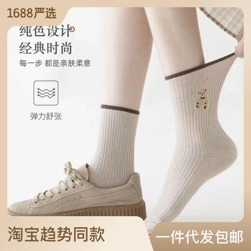 泰迪小熊袜子女韩版秋冬中筒袜女士秋冬袜学生袜女批发休闲女长袜