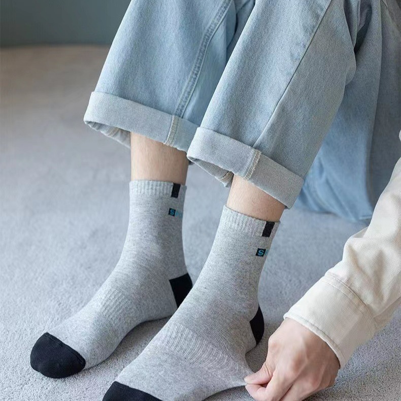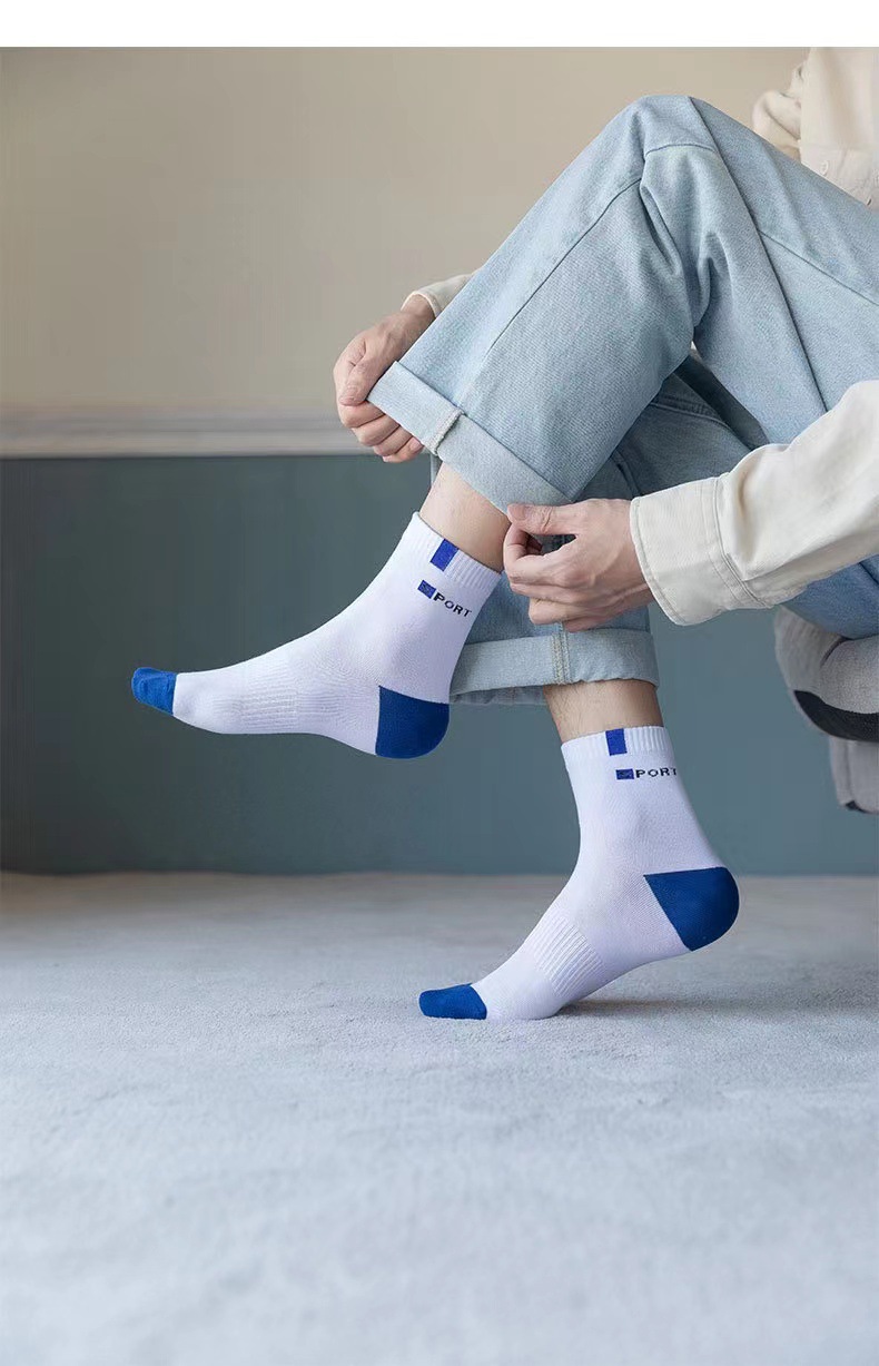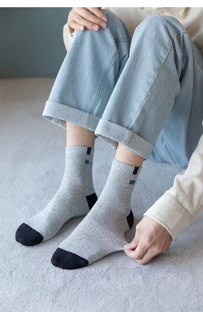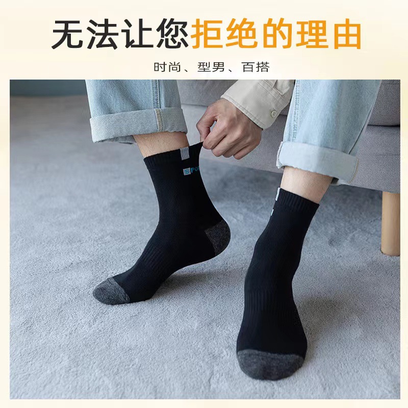 秋冬男士袜子中筒吸汗防臭韩版字母诸暨袜子批发潮流运动男袜跑步