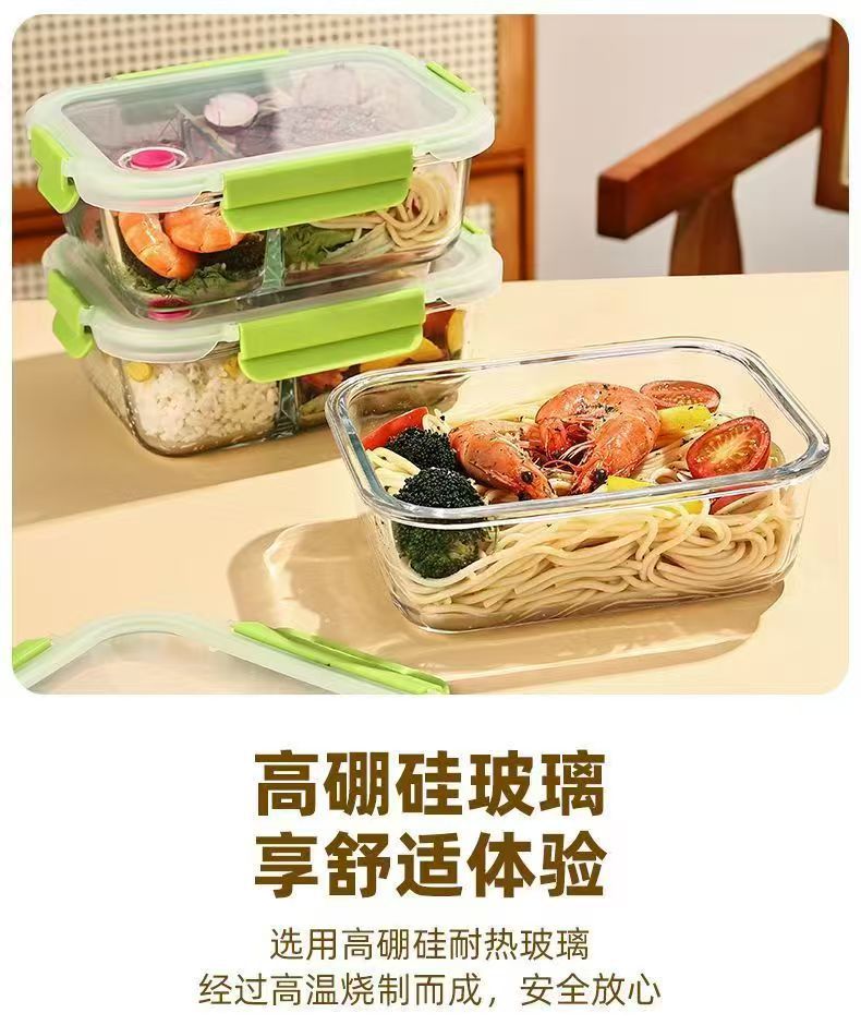玻璃饭盒可进微波炉学生餐盒上班族保鲜盒饭盒可加热带盖便当盒
