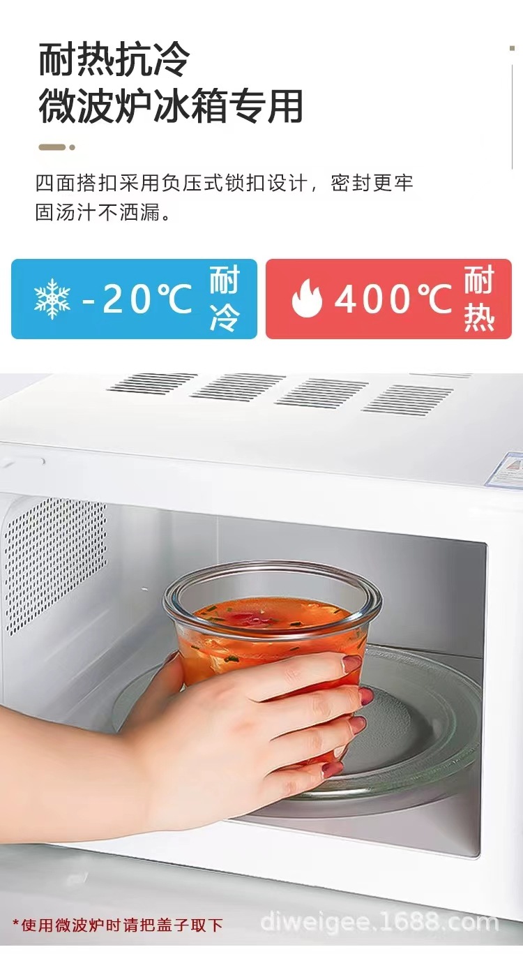上班族饭盒微波炉加热专用的玻璃碗带盖便当盒大容量汤碗保温餐盒