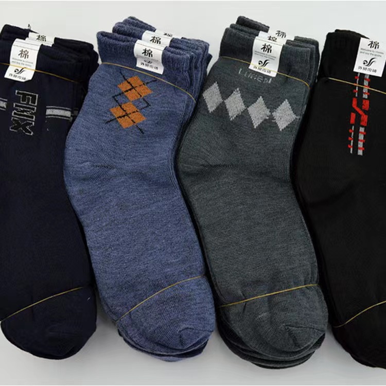 男士袜中老年人袜棉高帮老头袜劳保袜休闲地摊袜子中筒男袜子批发