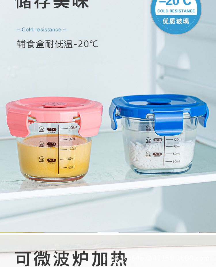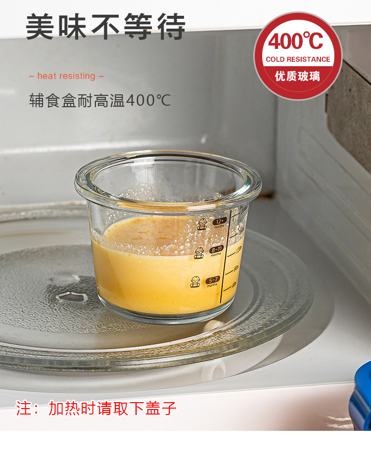 儿童辅食盒婴儿辅食碗储存盒保鲜冷冻可蒸煮玻璃碗硅胶盖便携密封